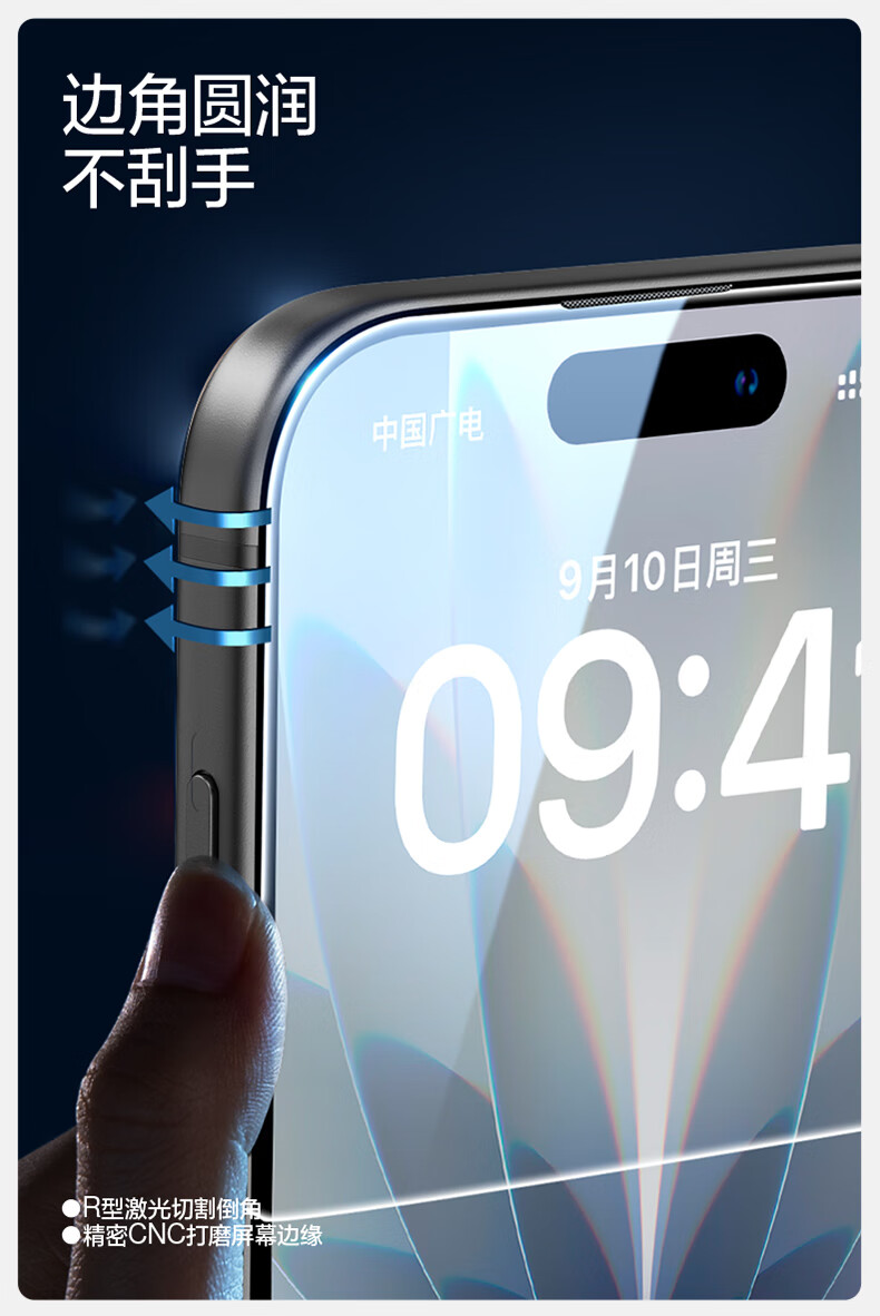 【严选好物】适用 苹果13 pro max mini 61 67 全屏钢化膜 八强膜 黑色边(1片装) 苹果13pro6.1寸