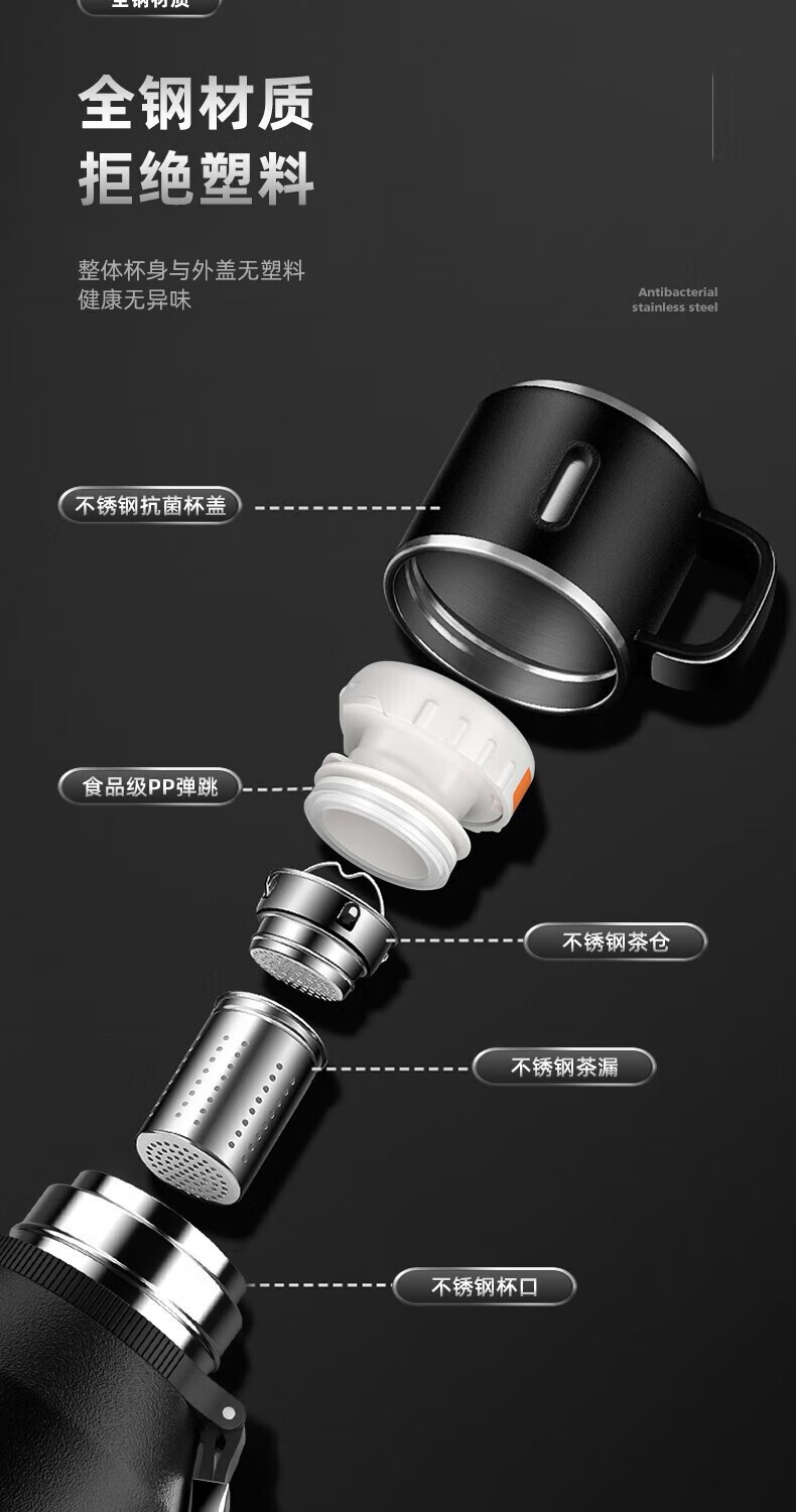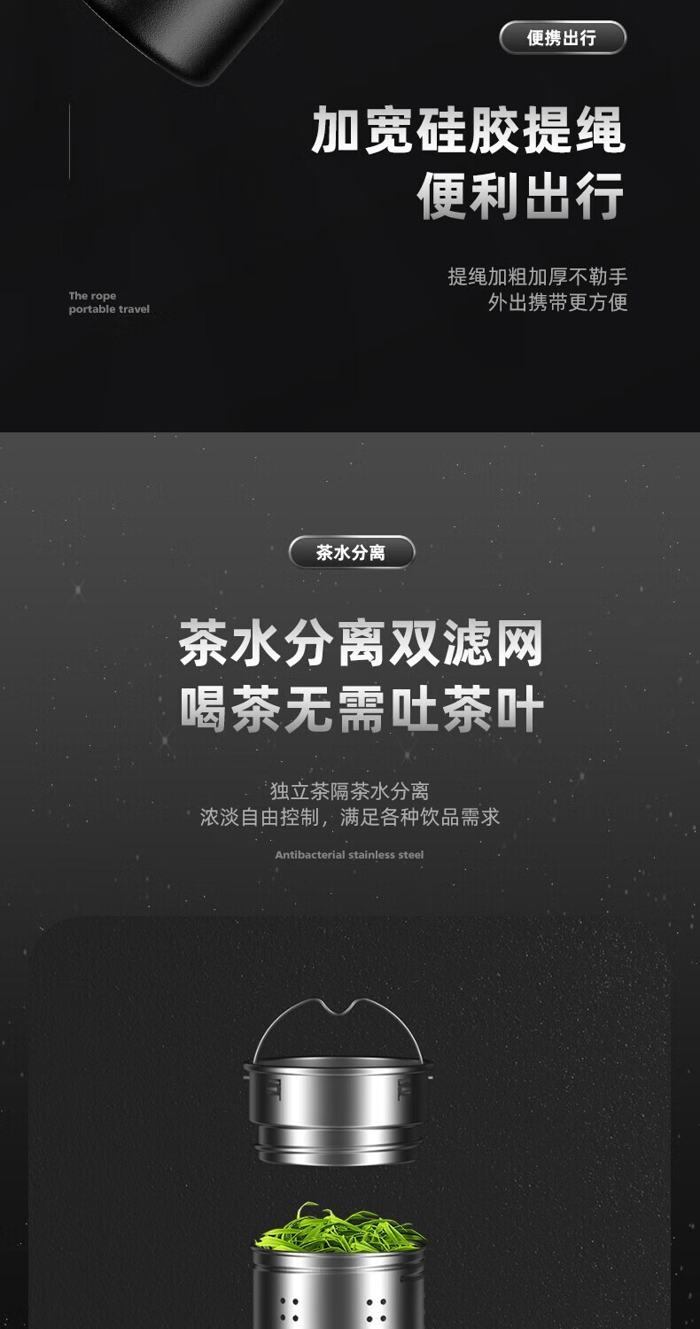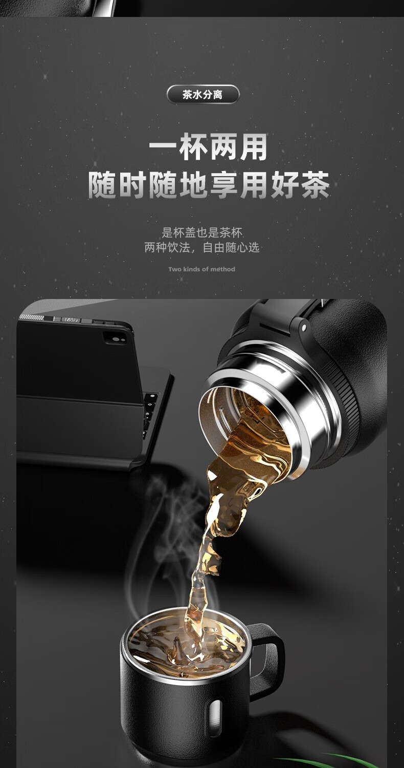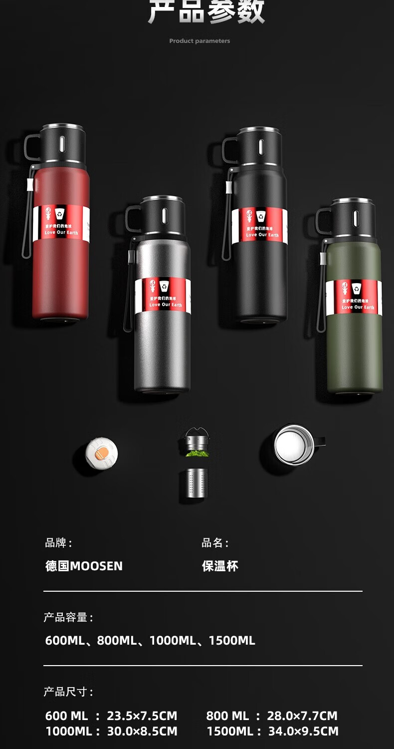 慕馨(moosen)保温杯男士大容量316不锈钢学生保冷水杯茶水分离泡茶杯子便携壶 黑600ml-保温保冷+杯套杯刷