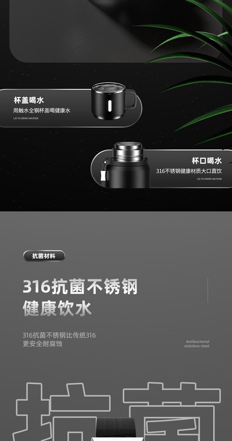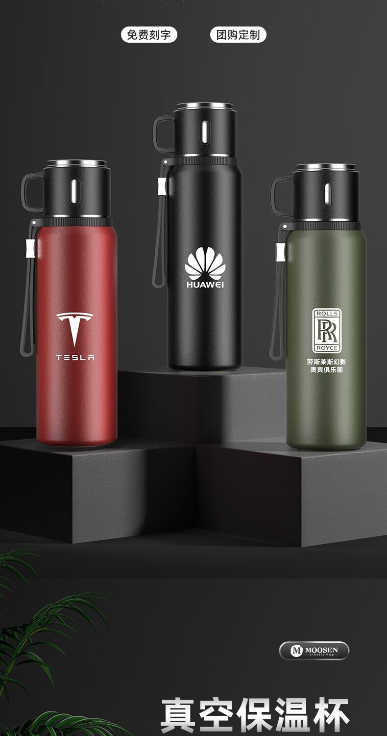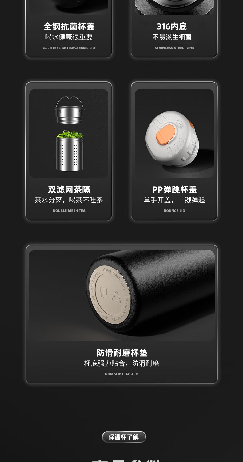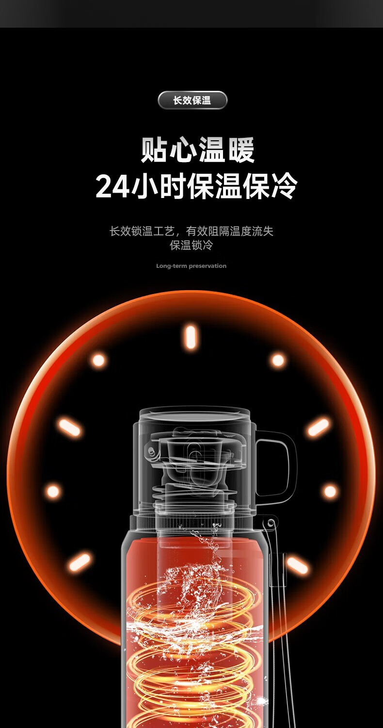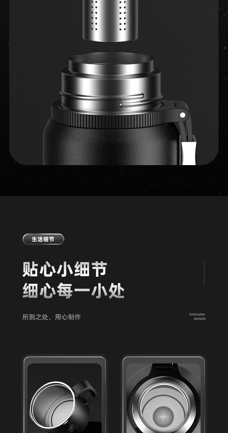 慕馨(moosen)保温杯男士大容量316不锈钢学生保冷水杯茶水分离泡茶杯子便携壶 黑600ml-保温保冷+杯套杯刷