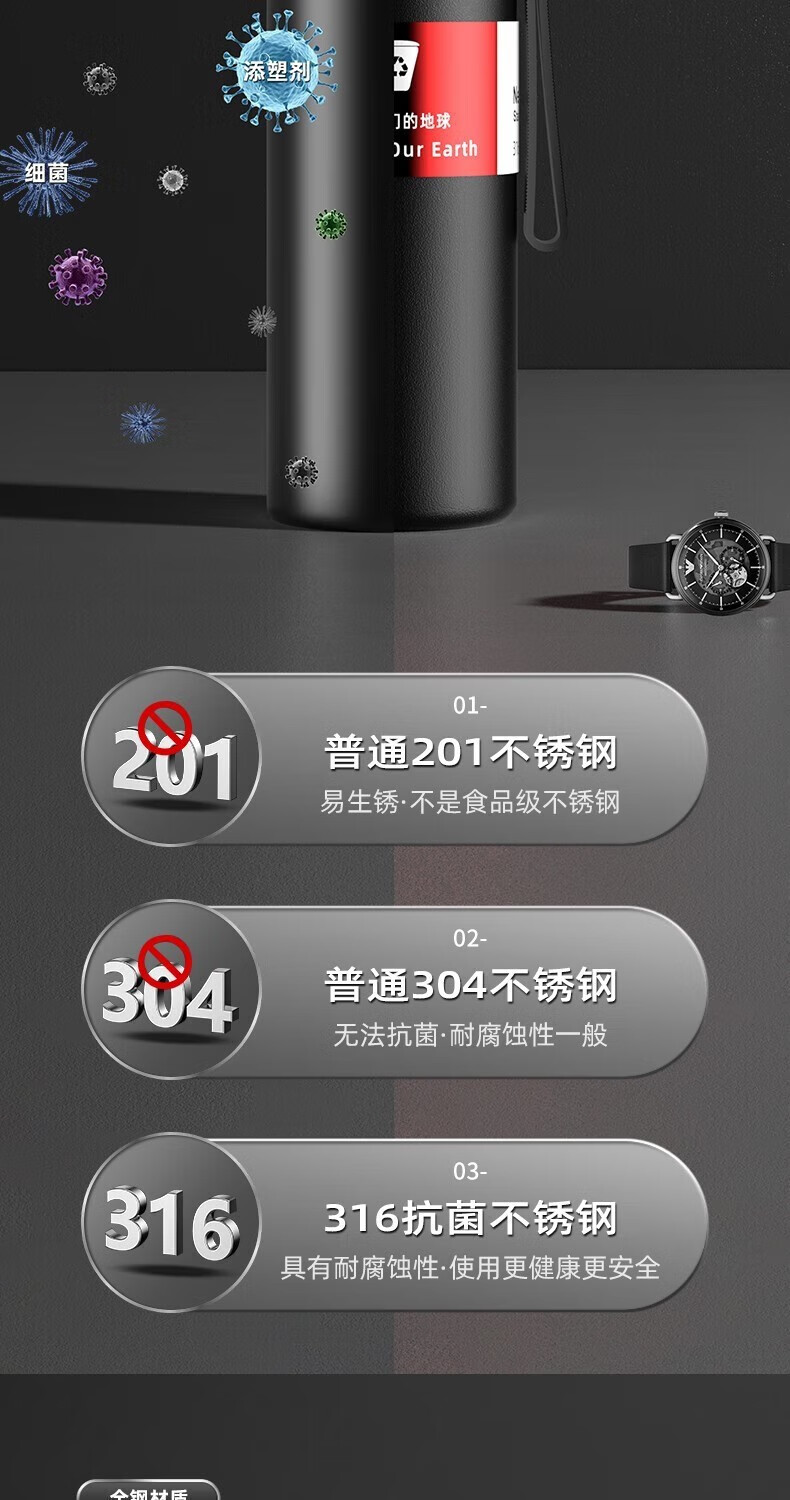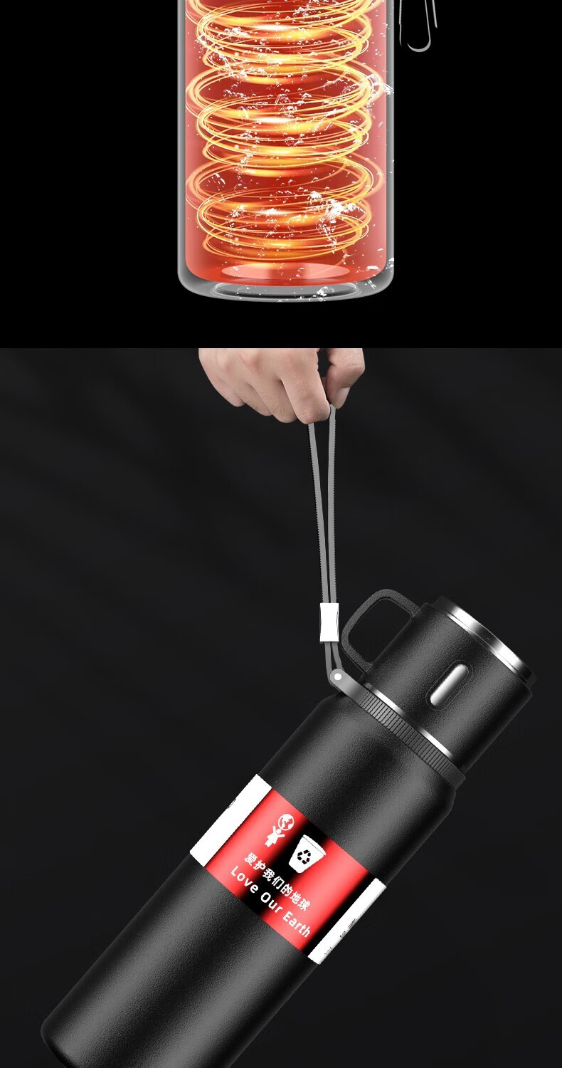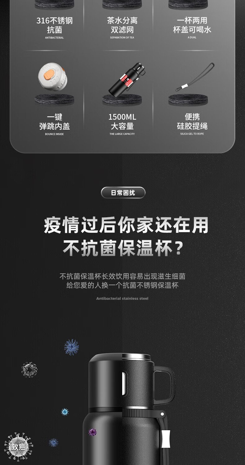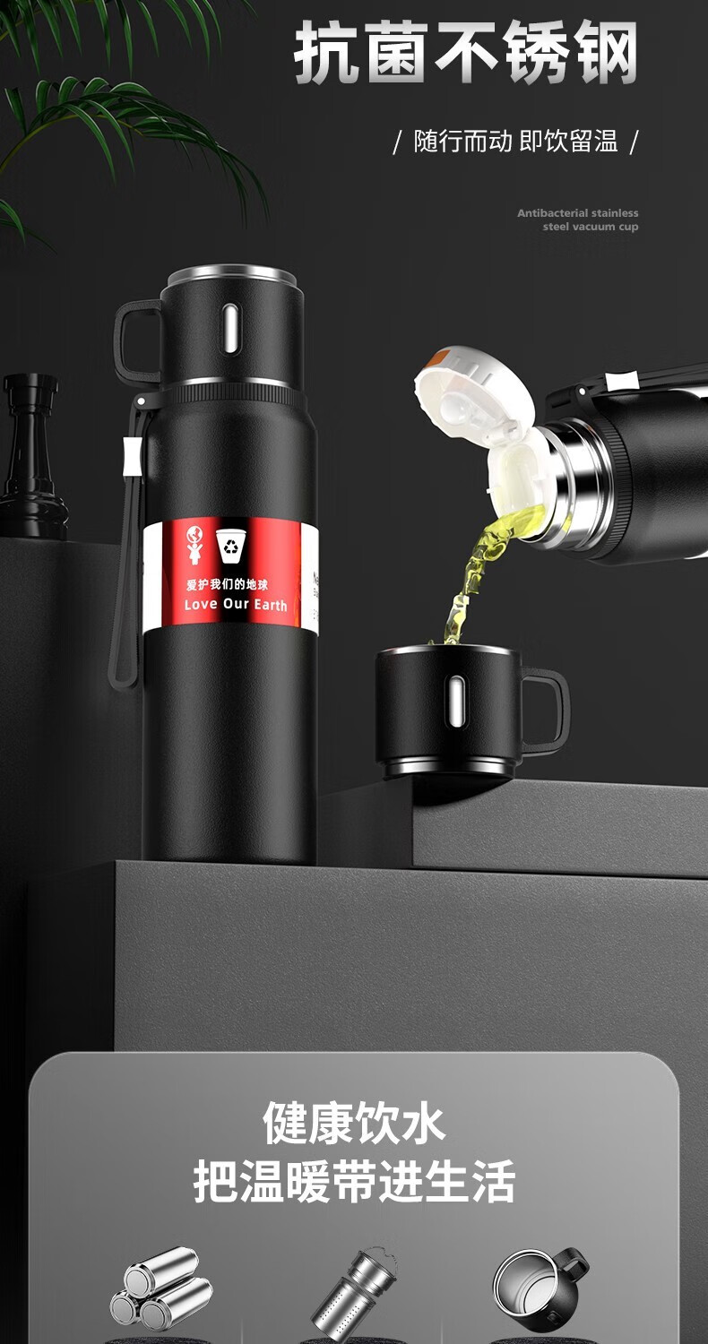 慕馨(moosen)保温杯男士大容量316不锈钢学生保冷水杯茶水分离泡茶杯子便携壶 黑600ml-保温保冷+杯套杯刷