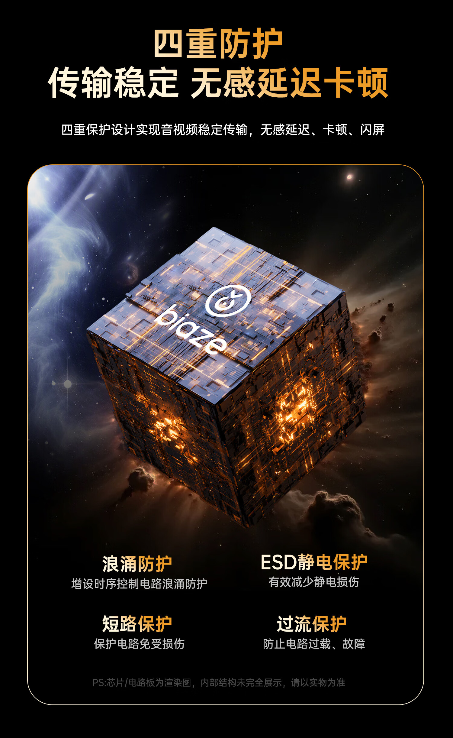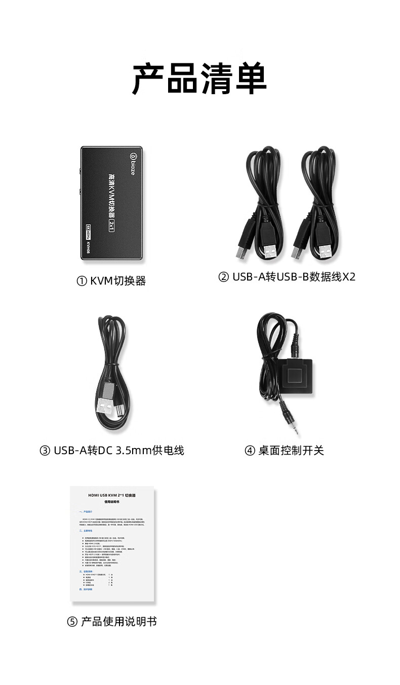 毕亚兹 HDMI2.0 KVM切换器二进一出共享鼠标键盘显示器4K60Hz高清一拖二电脑屏幕视频USB打印机电脑主机