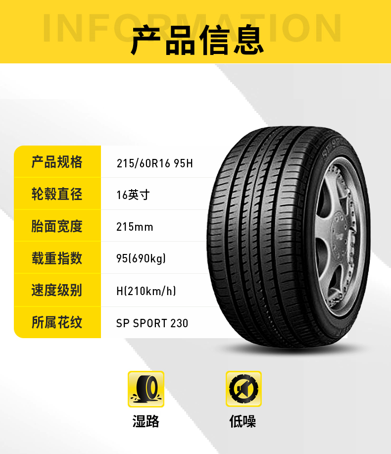 邓禄普(DUNLOP)轮胎/汽车轮胎 215/60R16 95H SP SPORT 230 原厂配套XRV/缤智