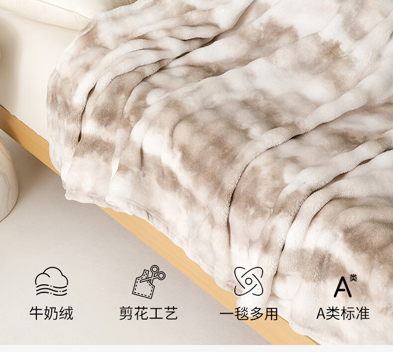一默毛毯子牛奶绒居家沙发盖毯A类亲肤办公室午睡空调毯保暖加厚毛毯 浅咖 100*150cm