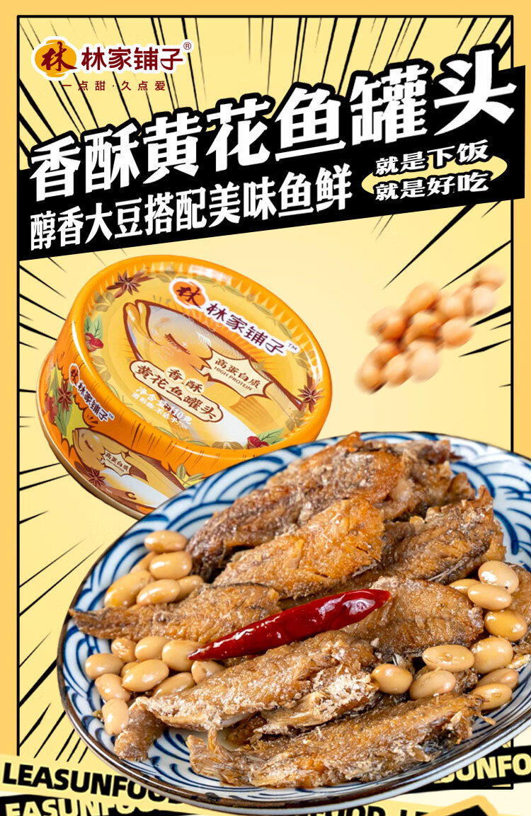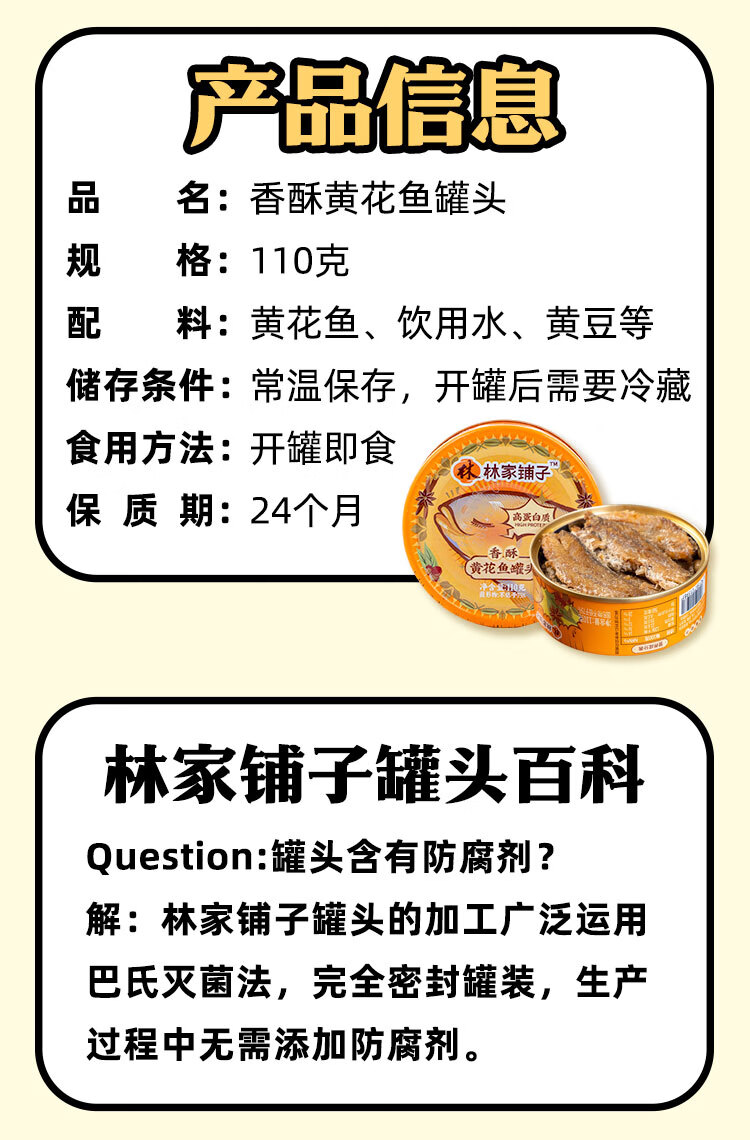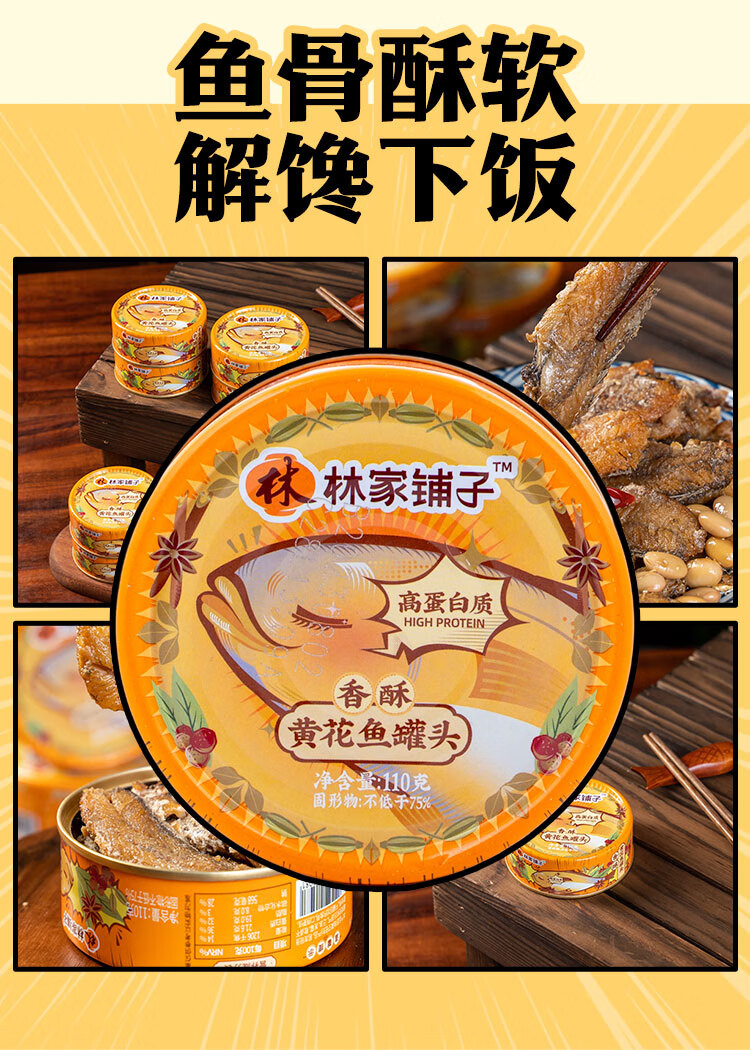 林家铺子黄花鱼罐头带鱼罐头110g海鲜罐头送礼礼品休闲零食佐餐 【香酥味】黄花鱼110g*4罐