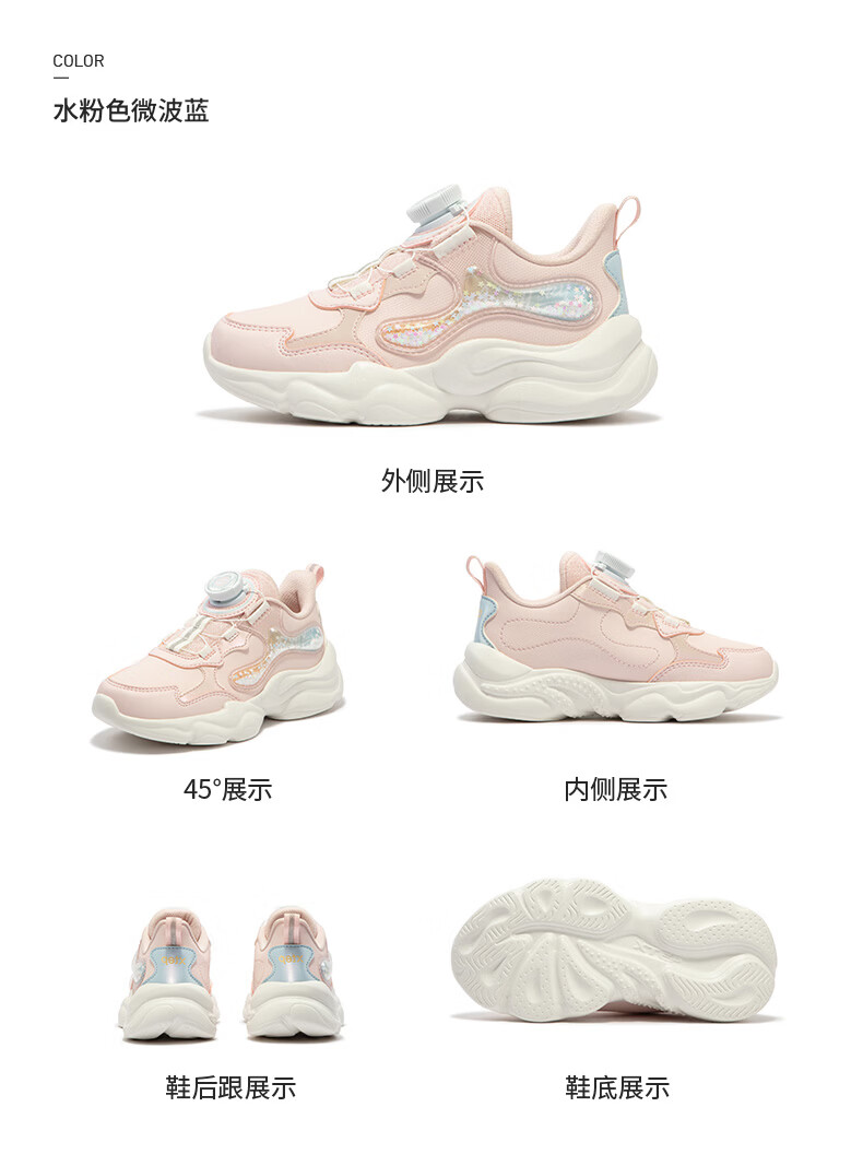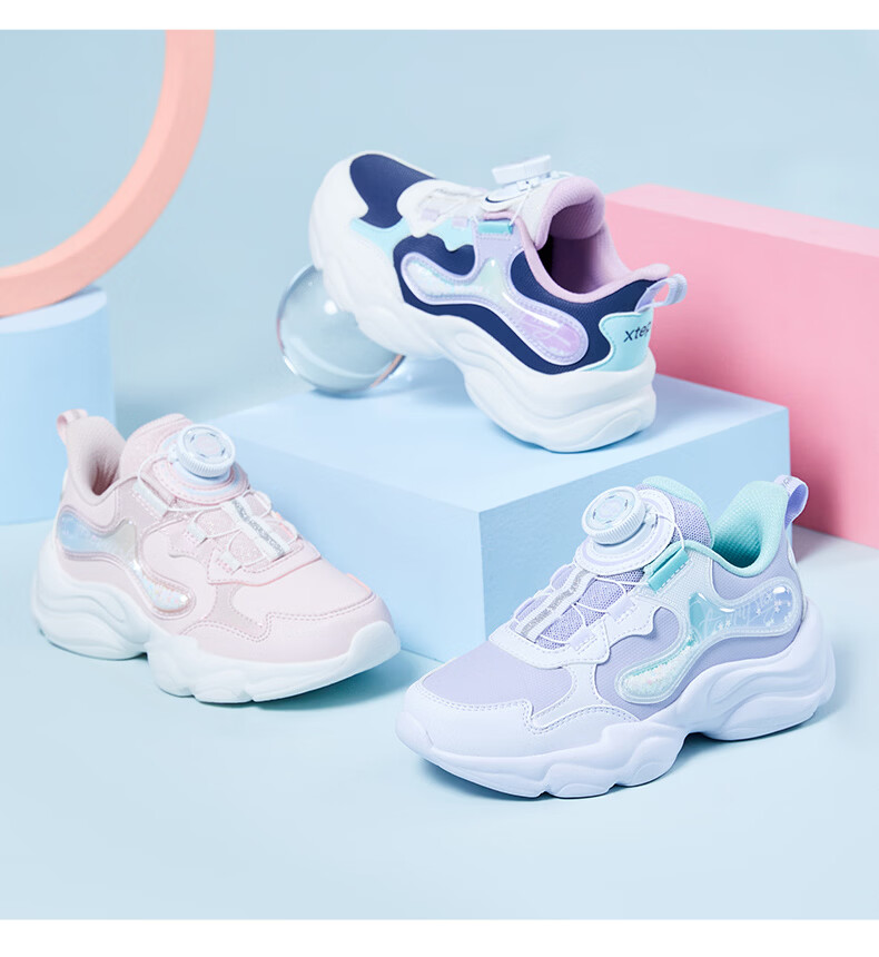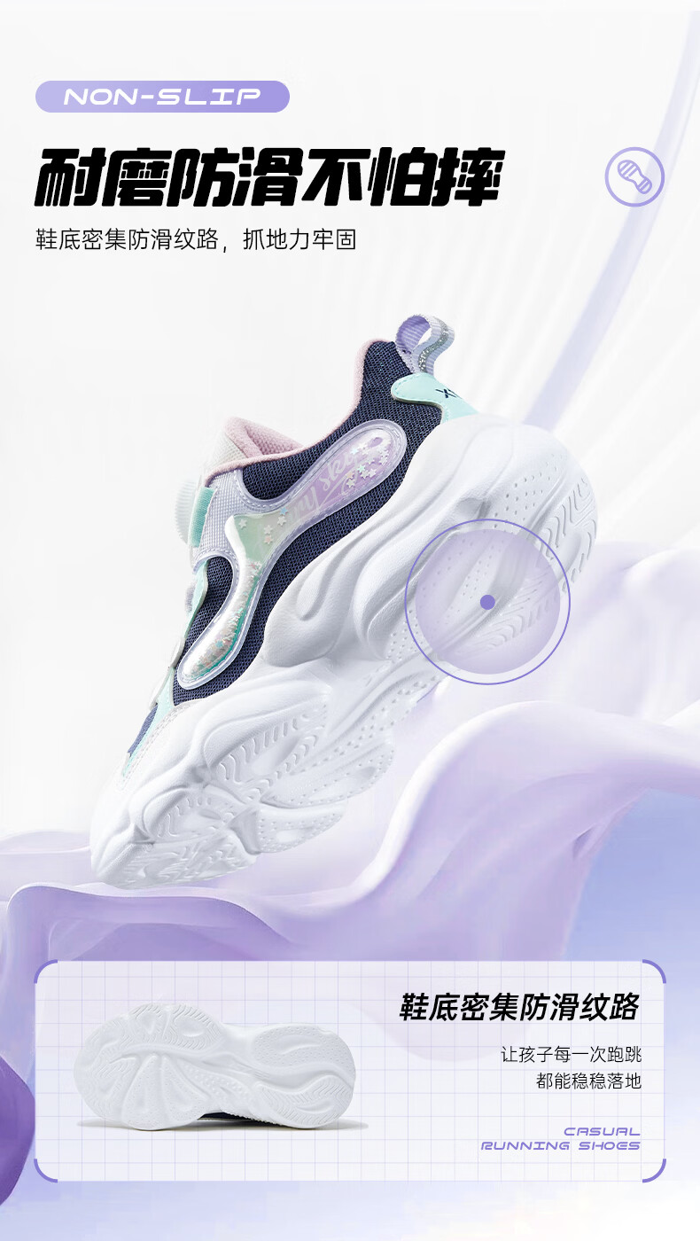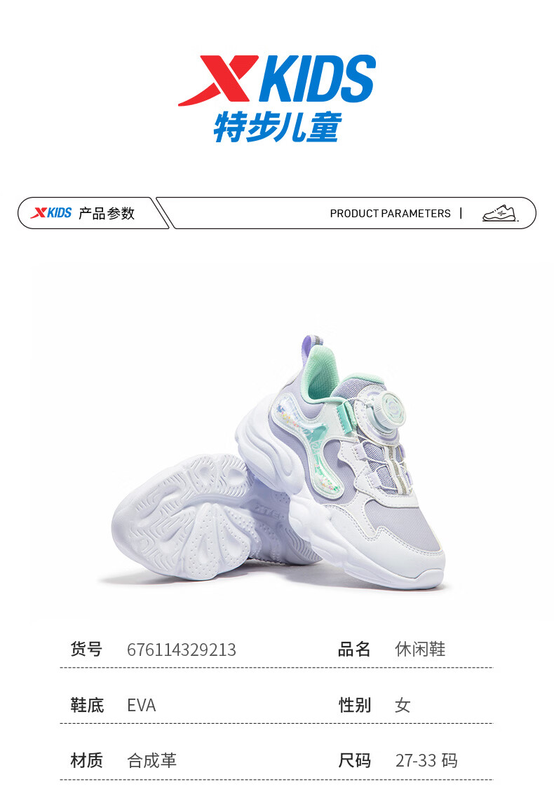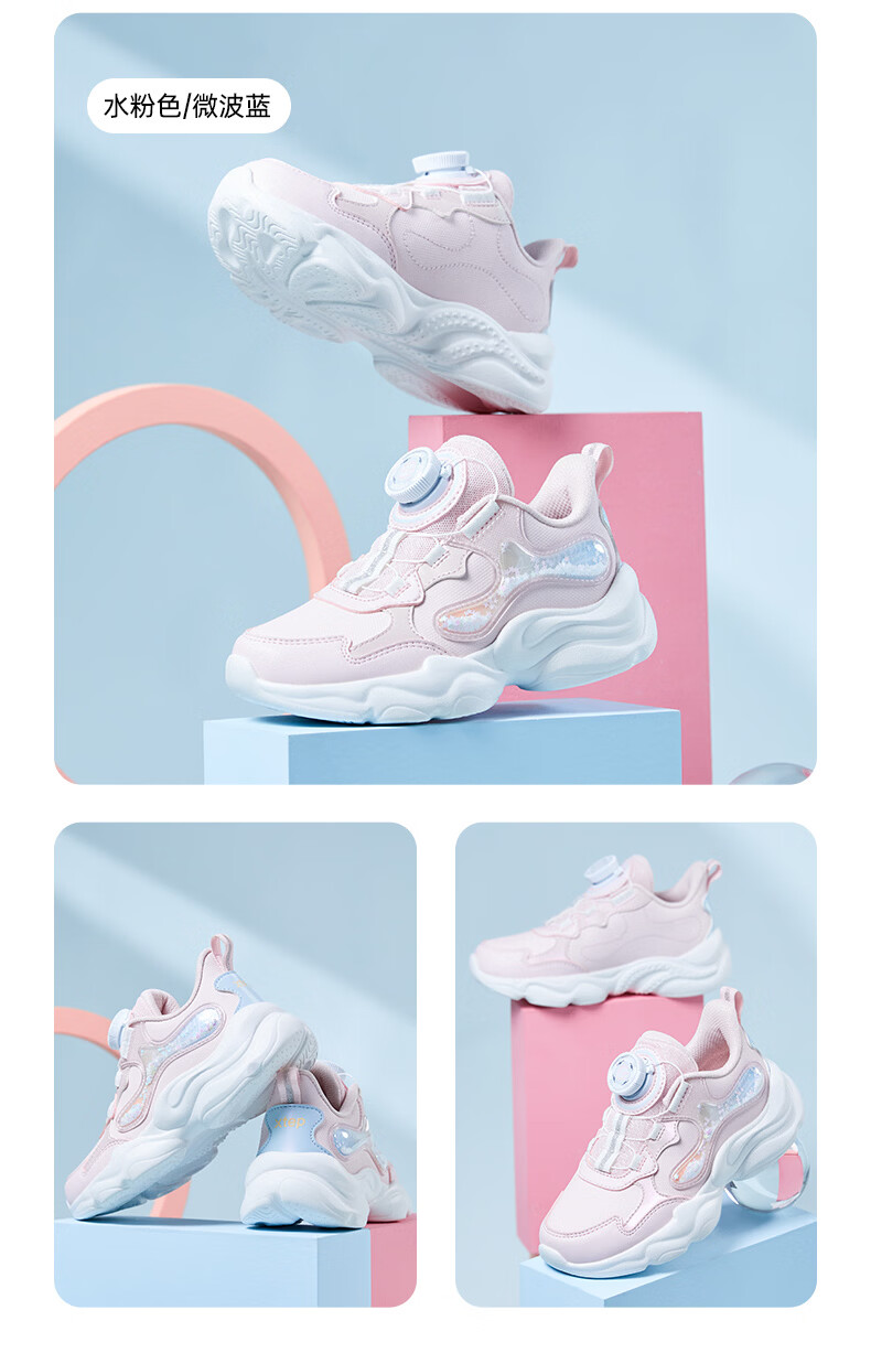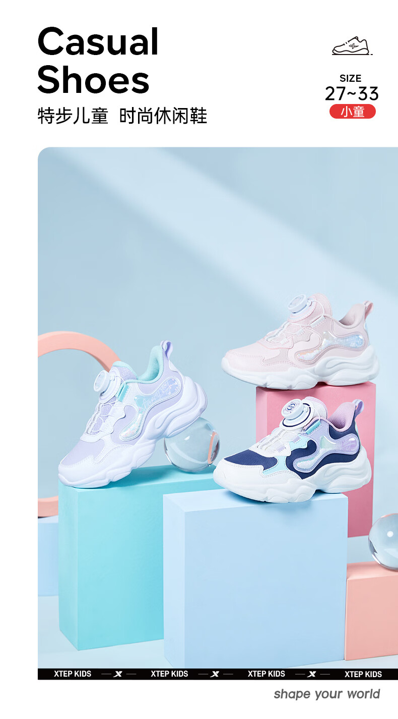 特步(XTEP)儿童童鞋女童小童百搭拼接旋钮扣休闲鞋 水粉色/微波蓝 31