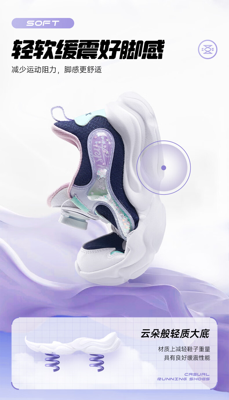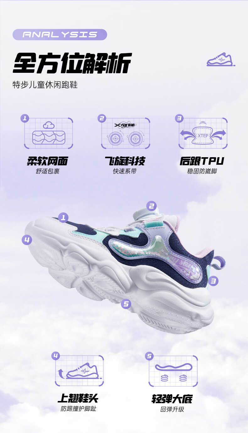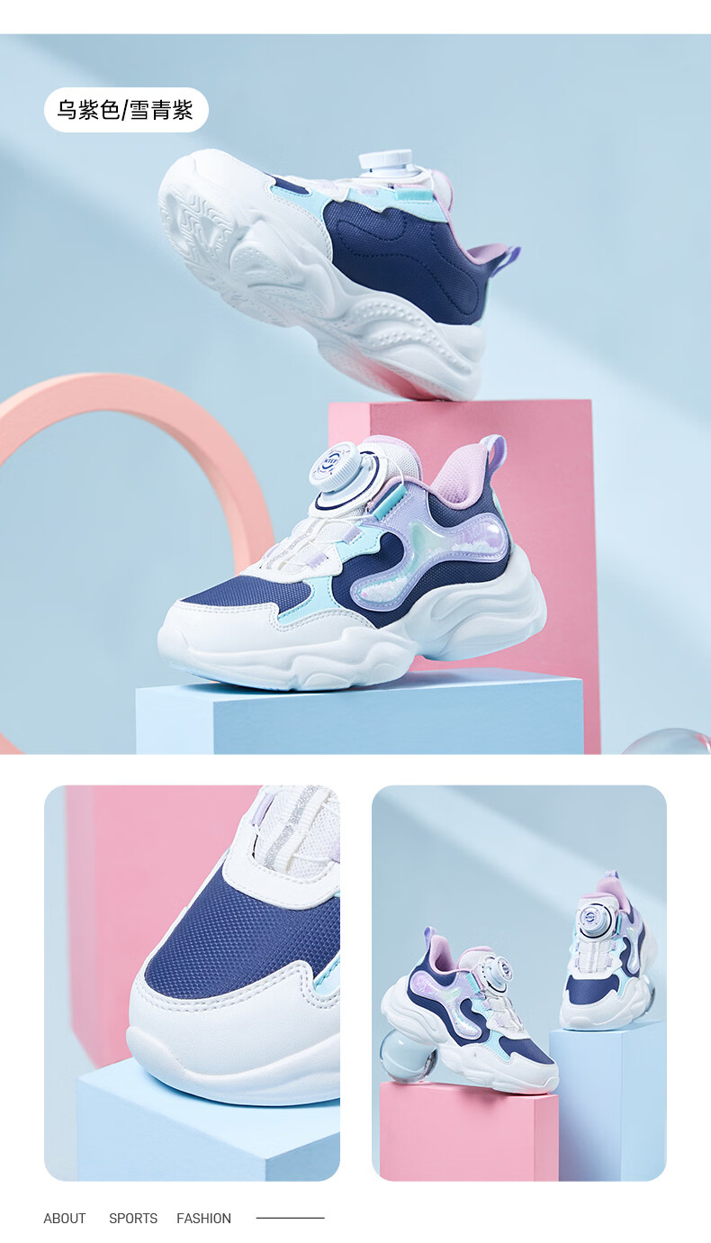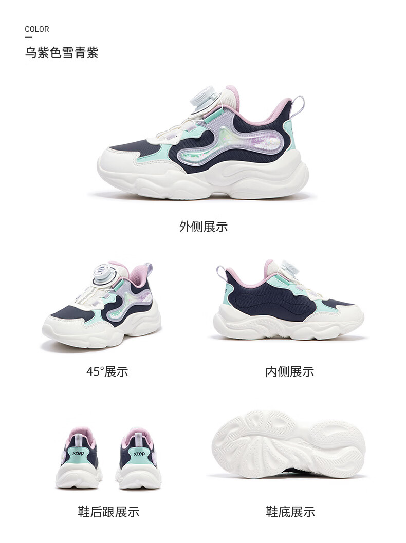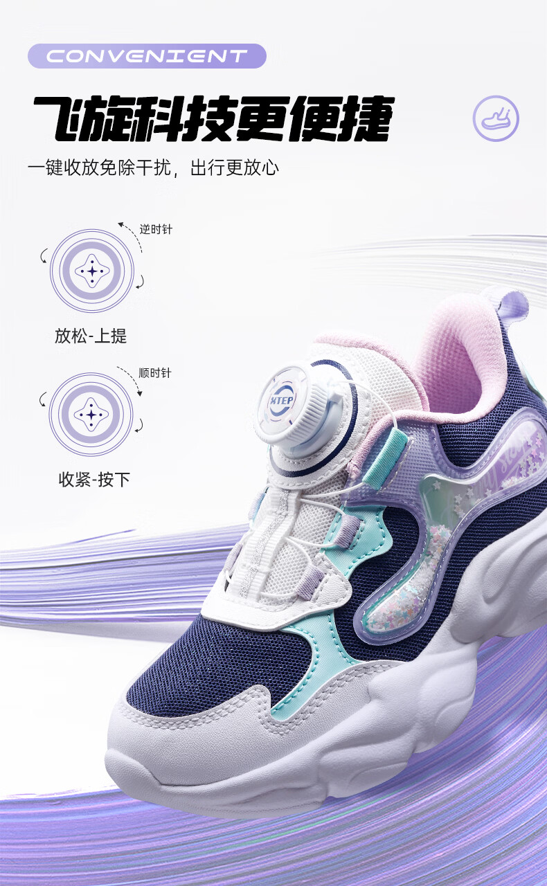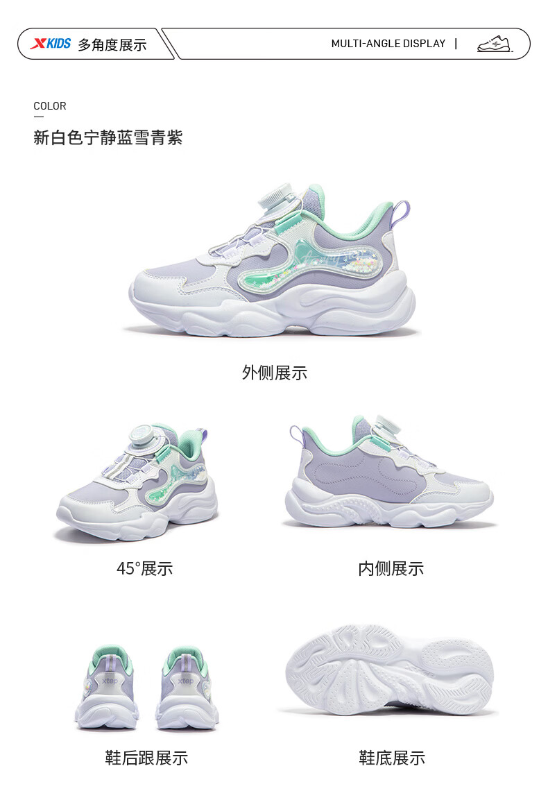 特步(XTEP)儿童童鞋女童小童百搭拼接旋钮扣休闲鞋 水粉色/微波蓝 31