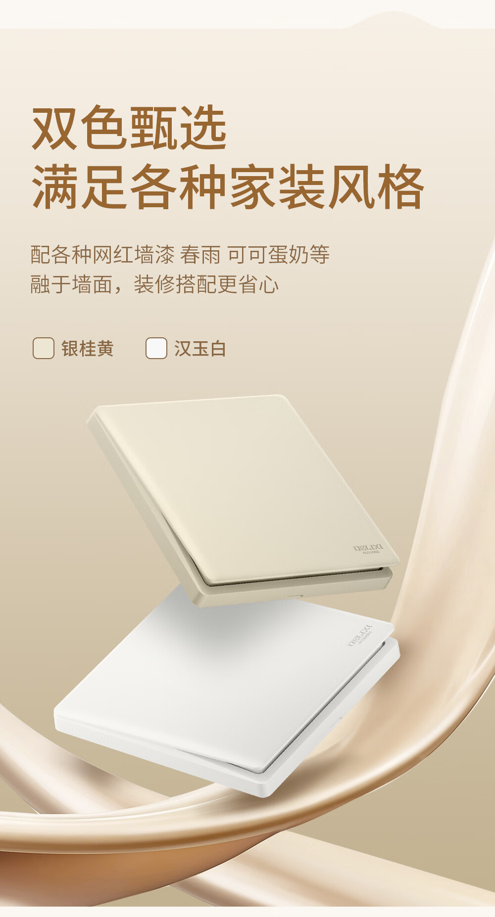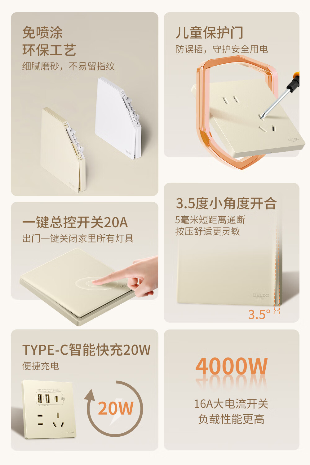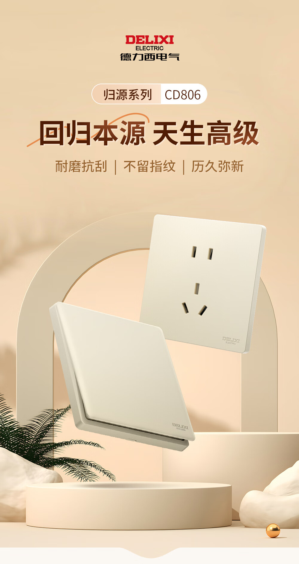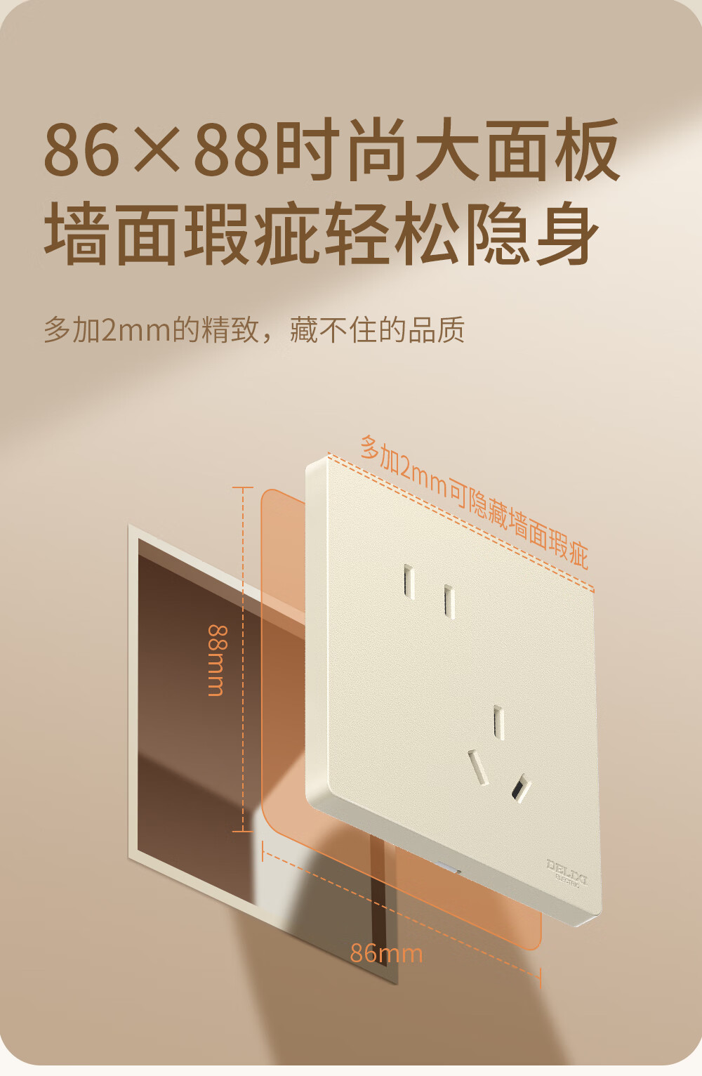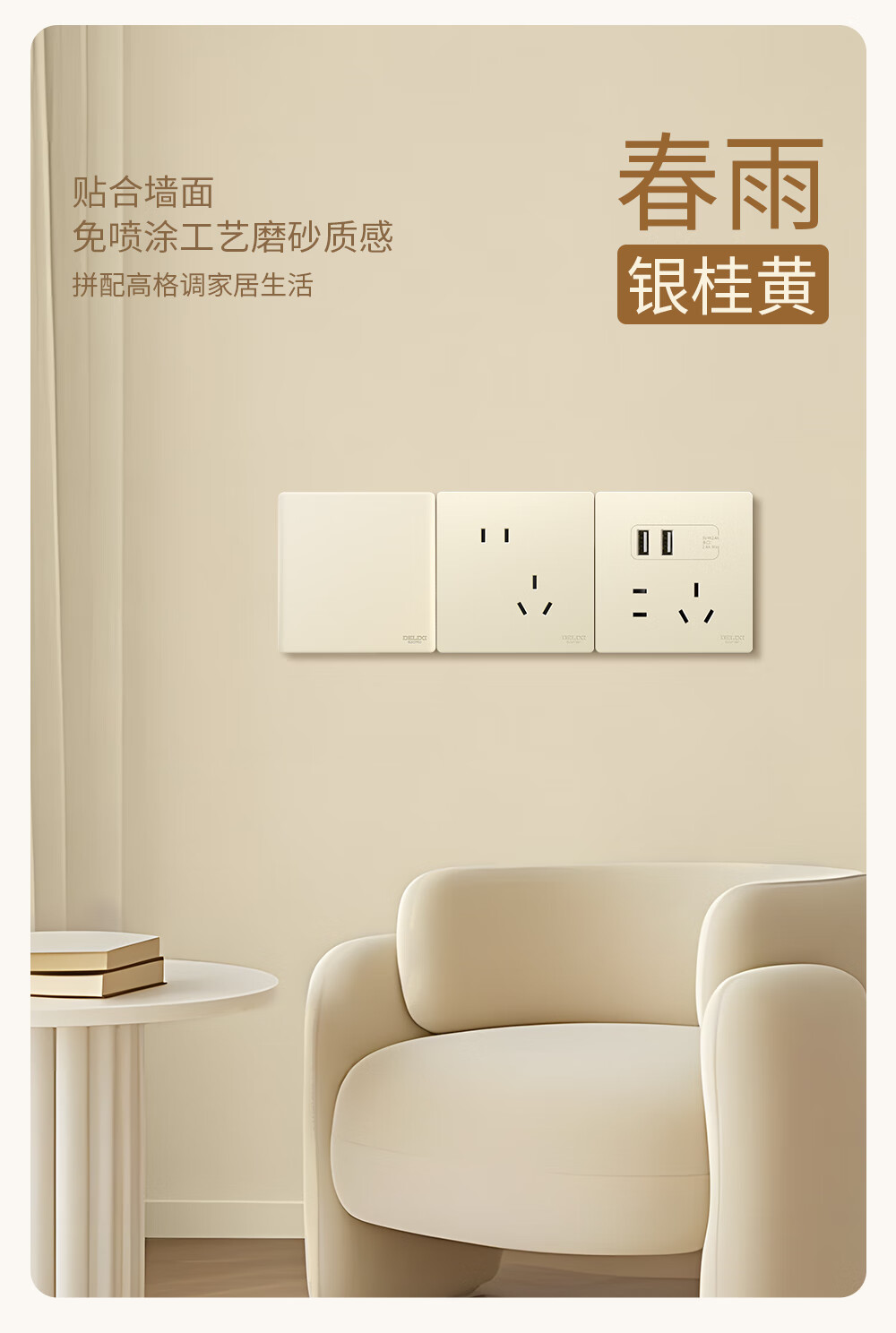 德力西(DELIXI)开关插座面板 CD806银桂黄 哑光磨砂奶油风大板 86型墙壁电源插座 斜五孔10A插座 10只装