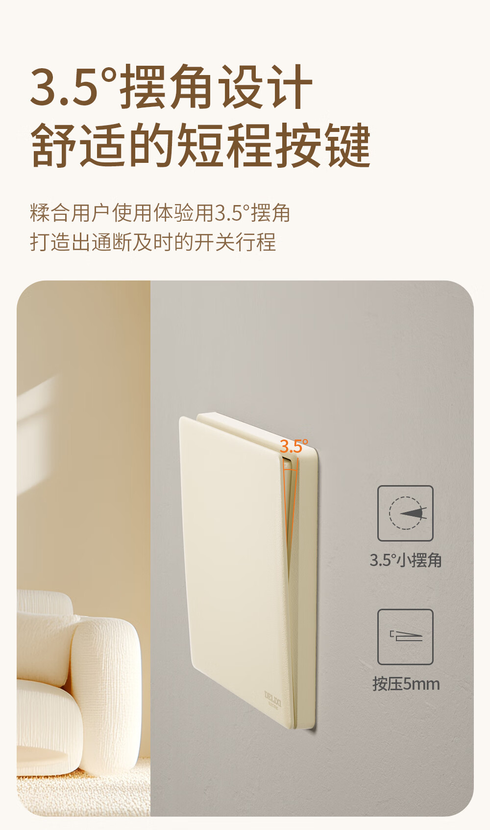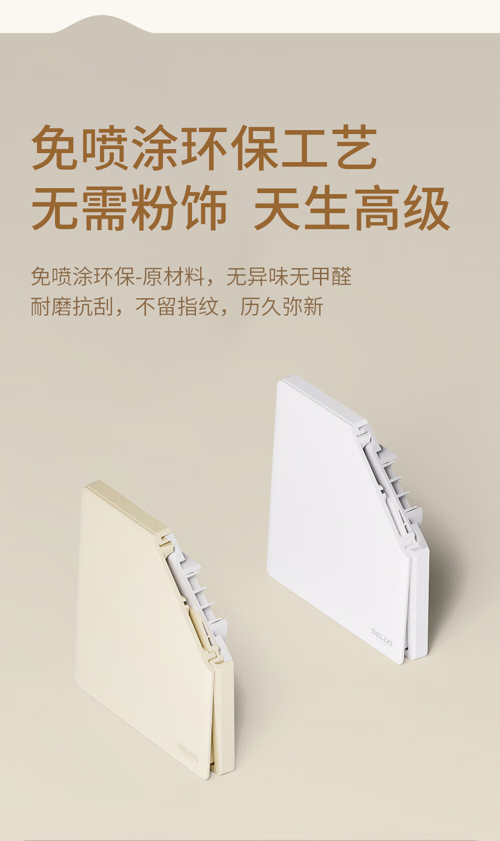 ABB开关插座面板 德典系列皓月灰 磨砂哑光奶油风 无边框 86型电源 斜五孔插座
