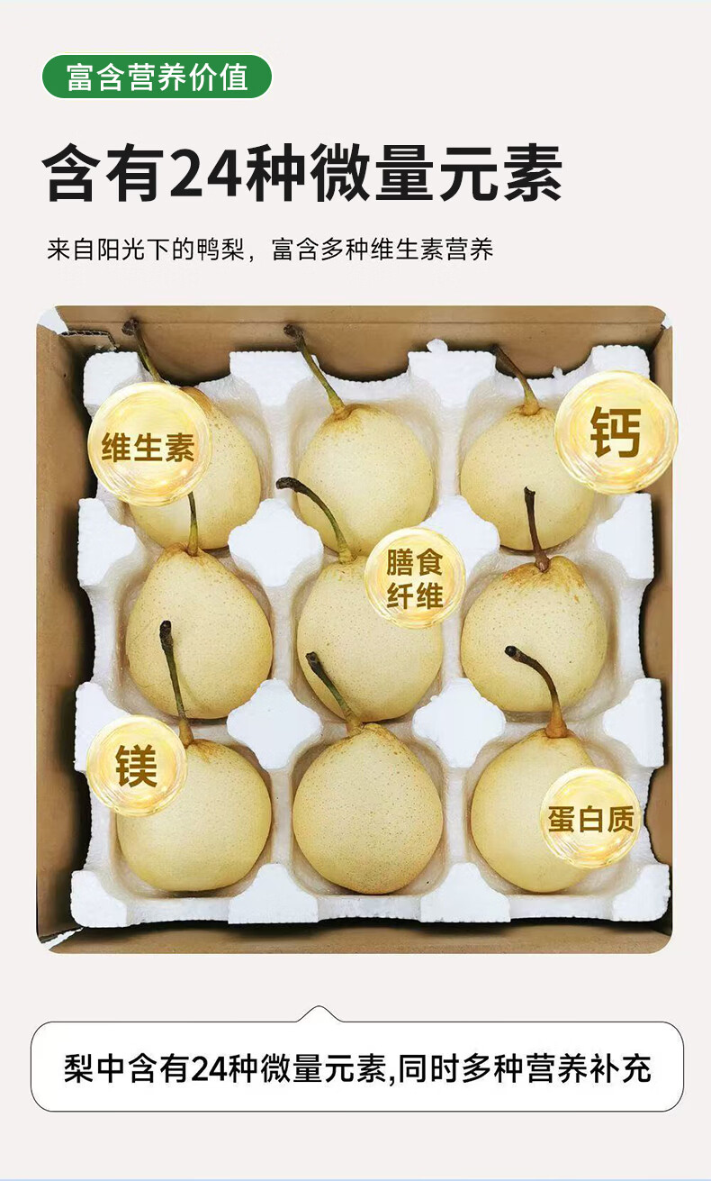 京喜加鸭梨河北泊头新鲜鸭梨脆甜多汁个大饱满果园直供人工筛选 2斤【含箱重】