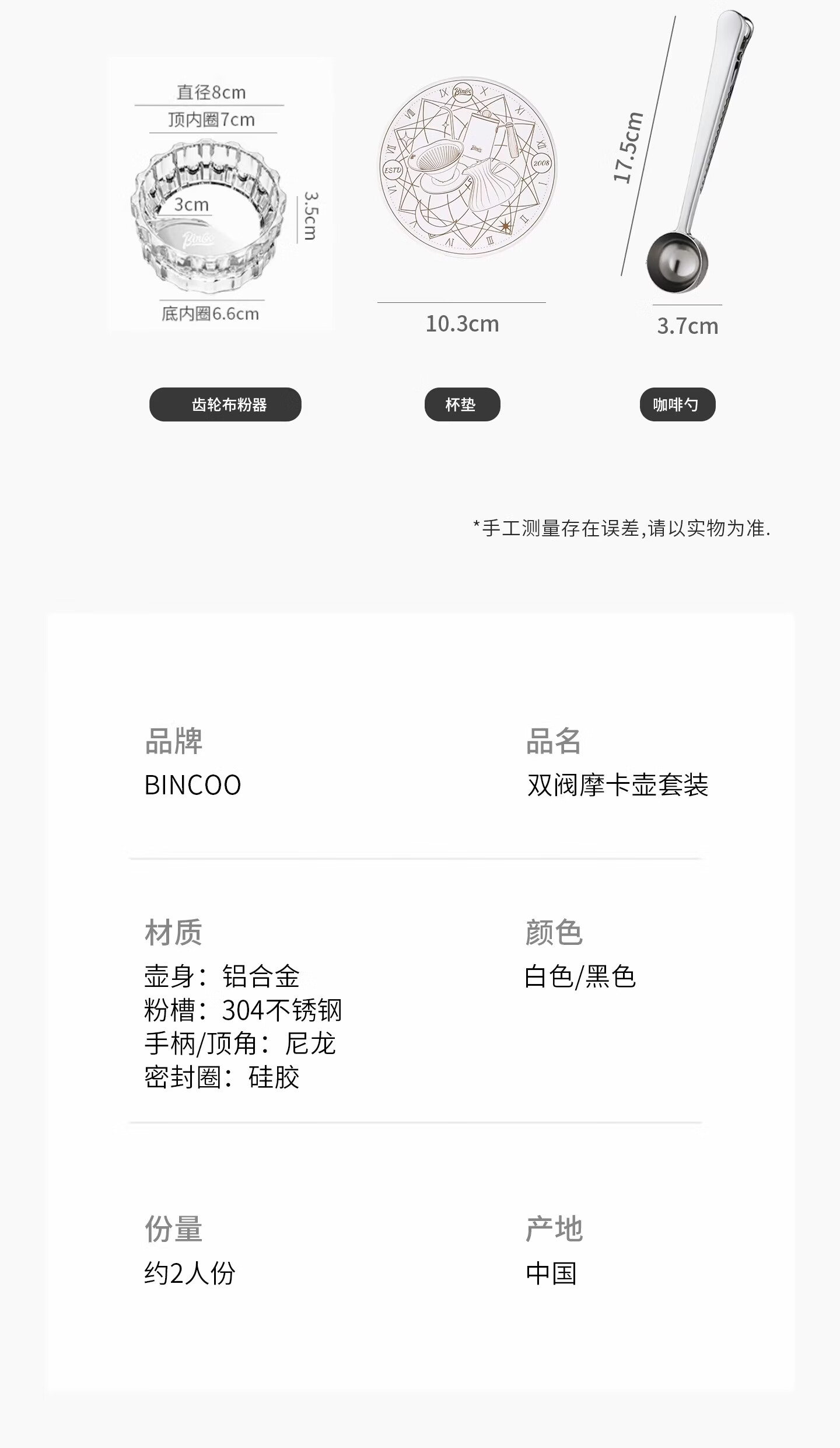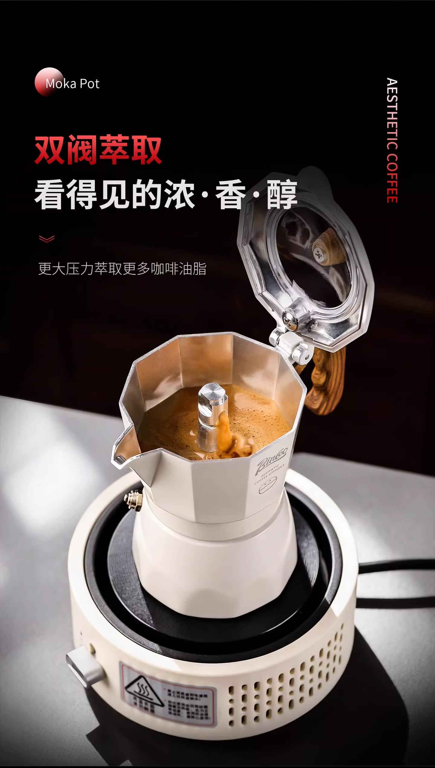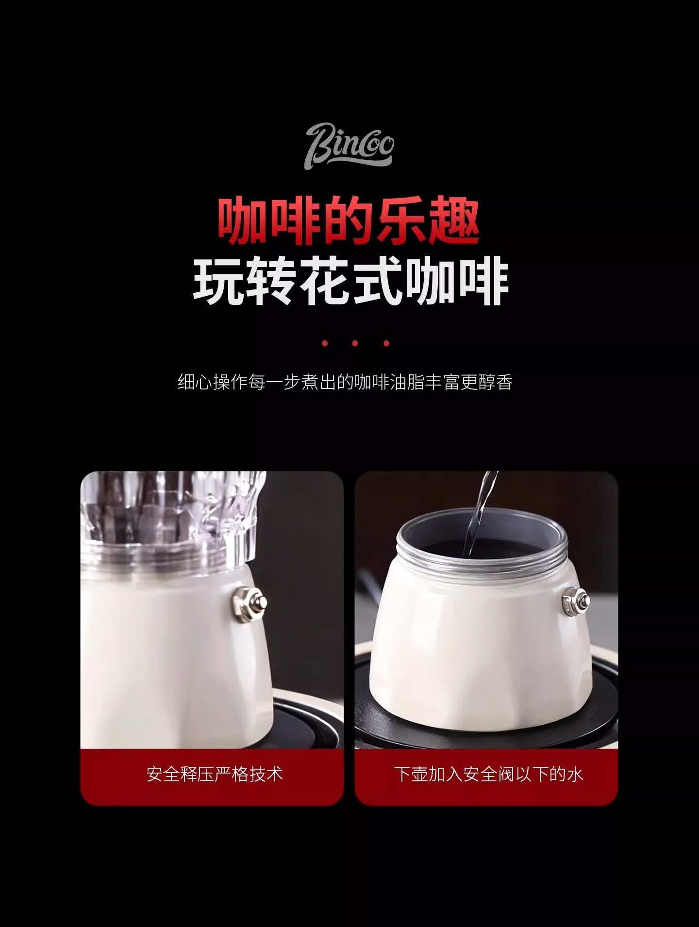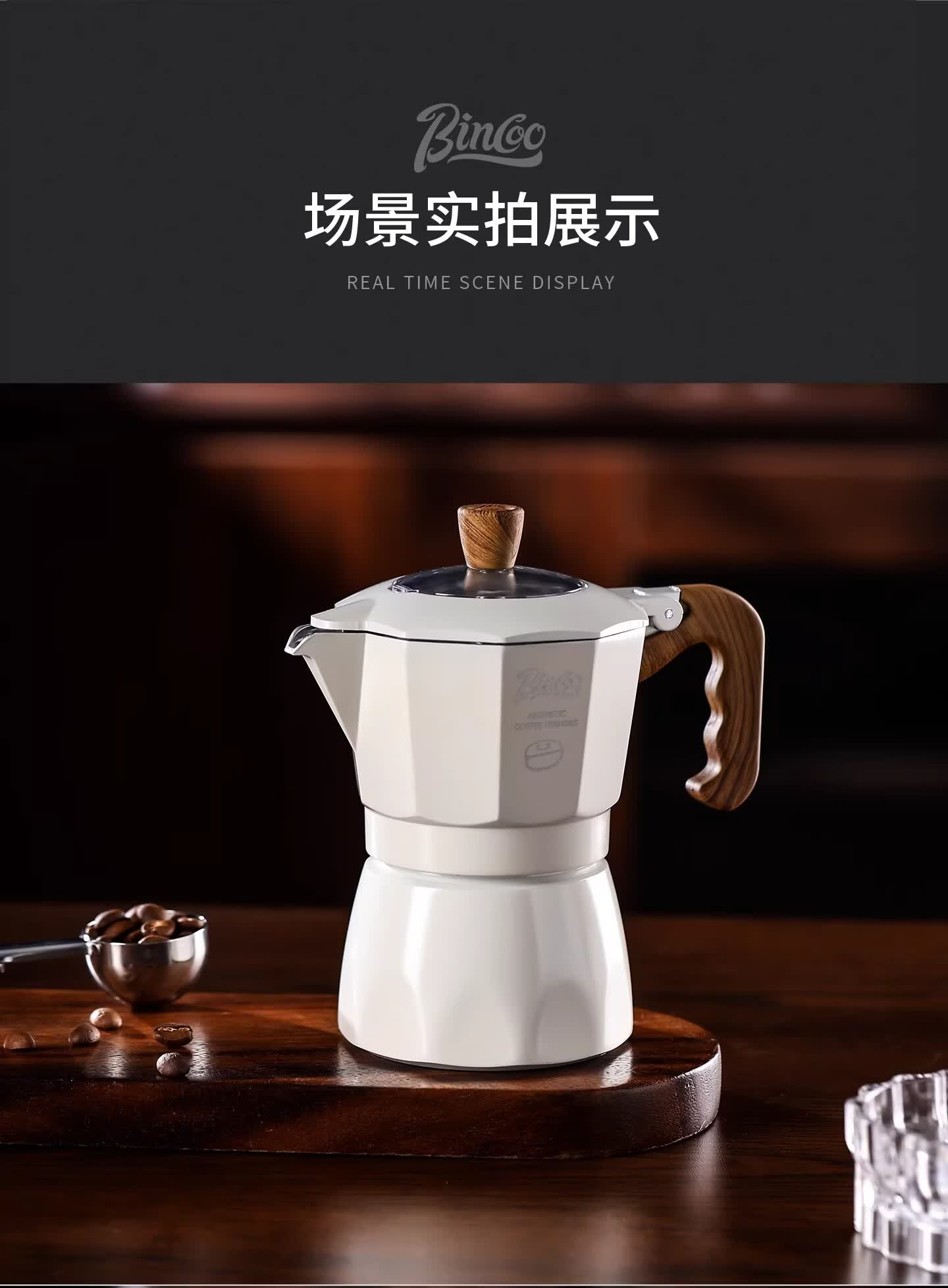 Bincoo双阀摩卡壶多人份家用小型浓缩煮咖啡壶意式咖啡机咖啡器具 【2人份】白色+滤纸 双阀