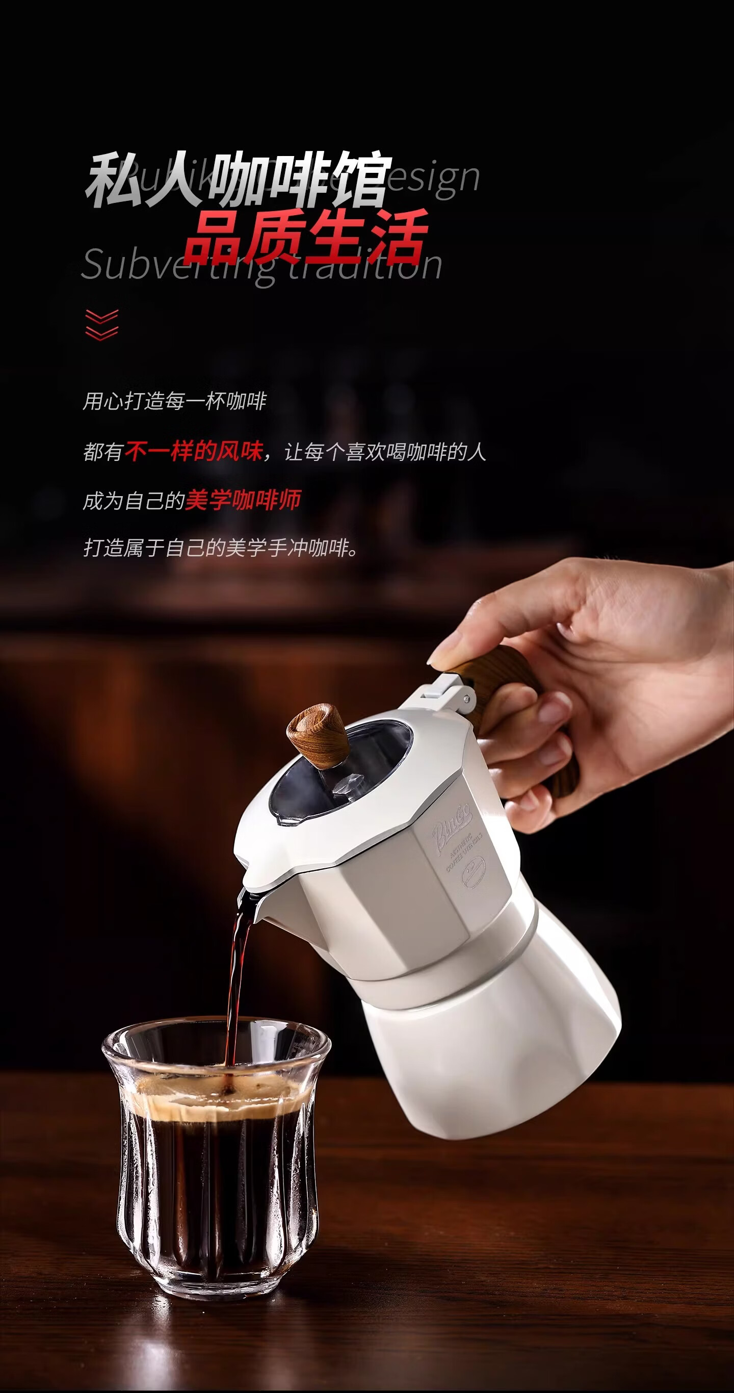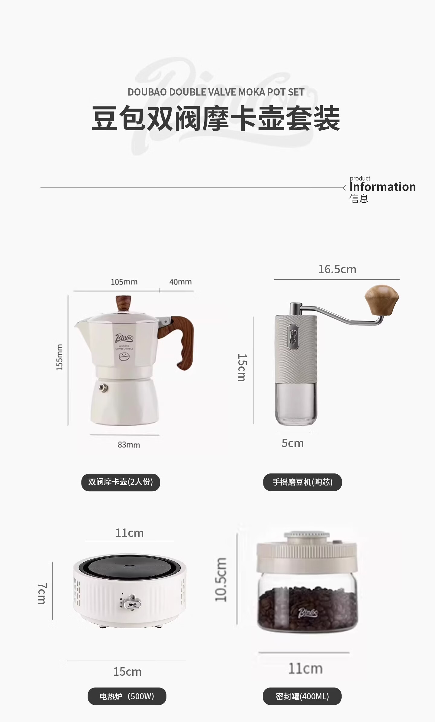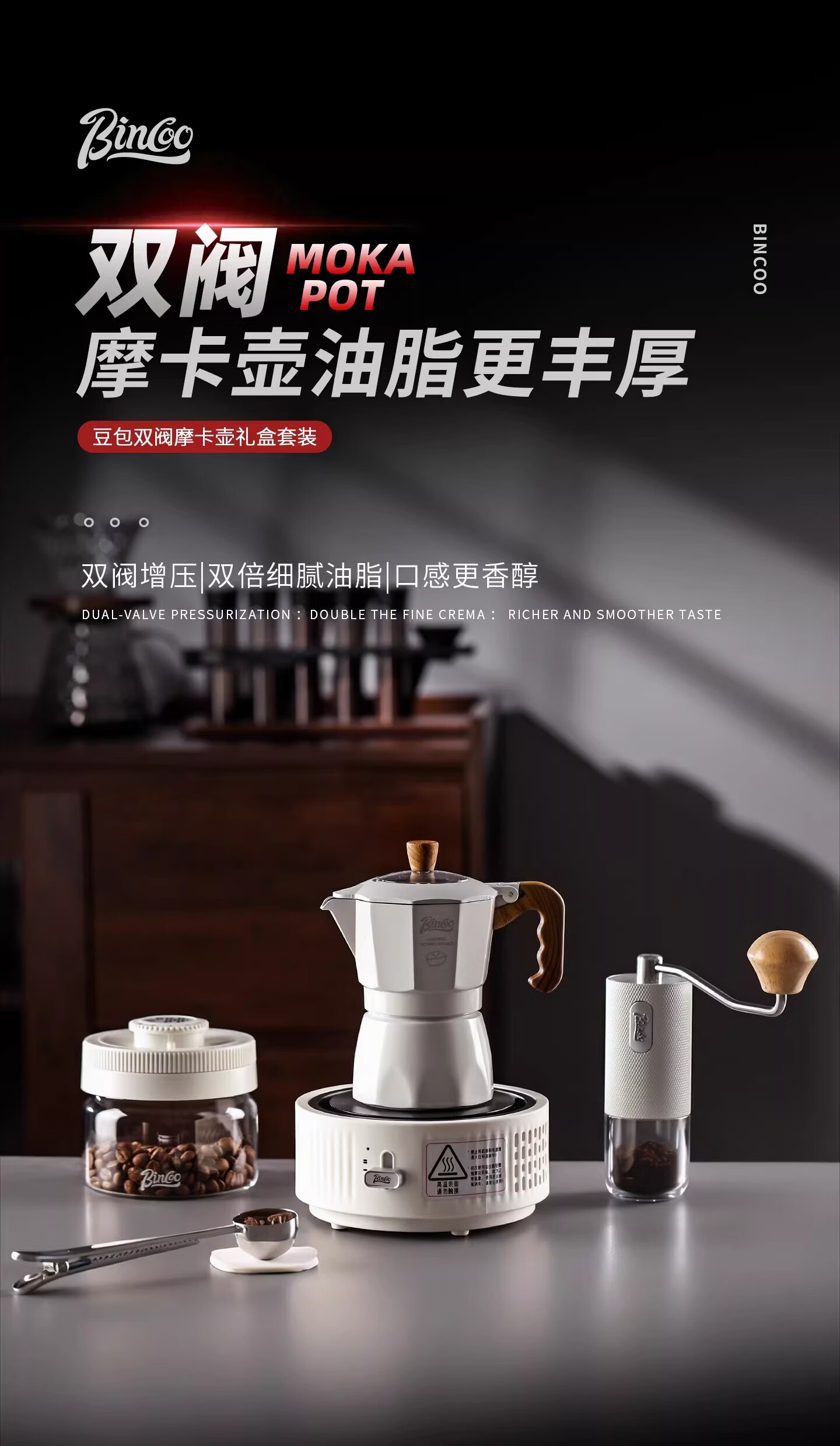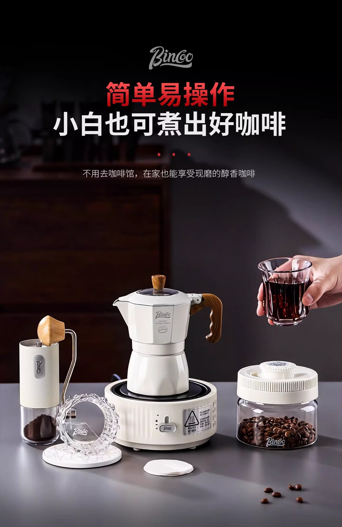 Bincoo双阀摩卡壶多人份家用小型浓缩煮咖啡壶意式咖啡机咖啡器具 【2人份】白色+滤纸 双阀