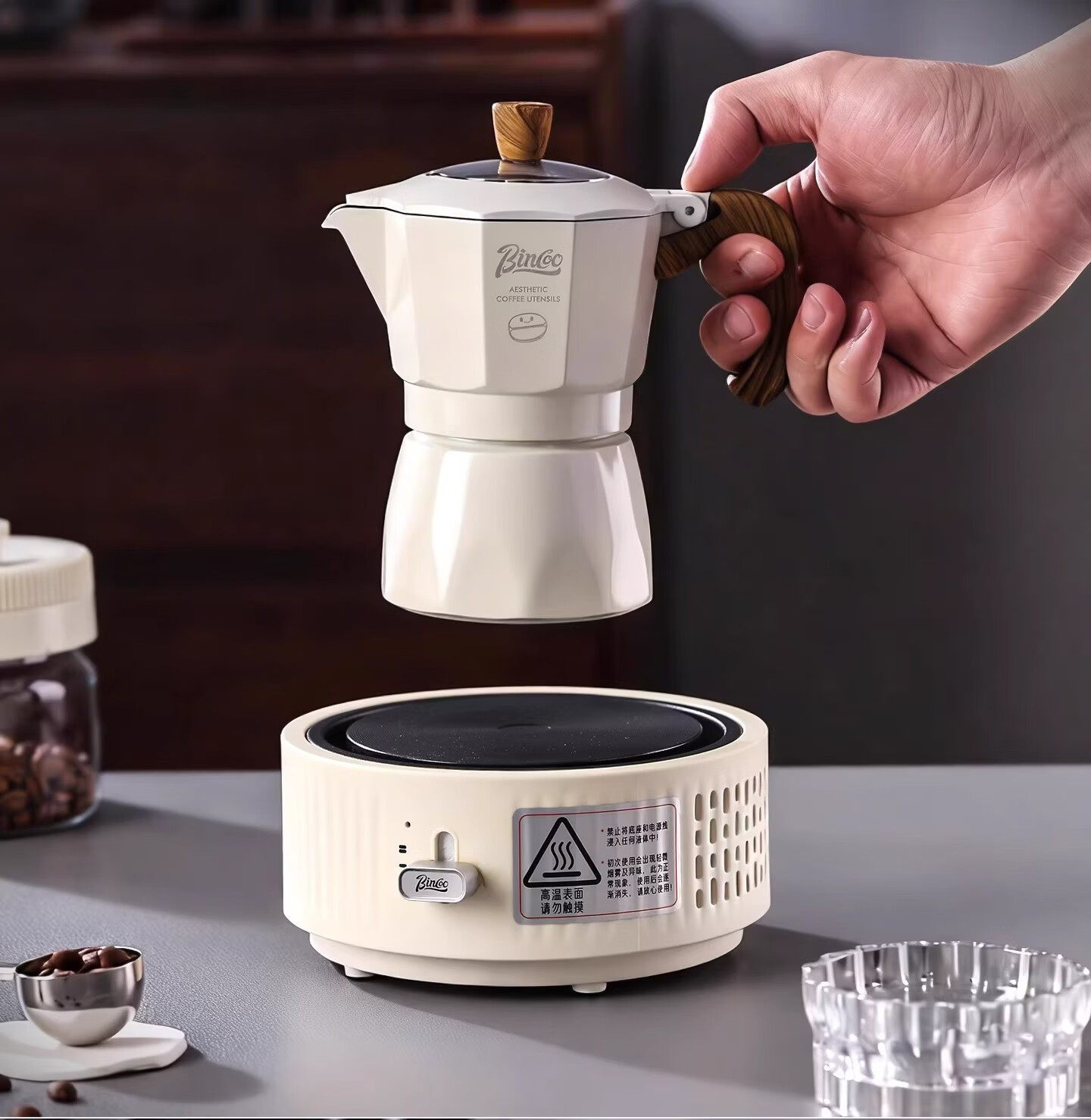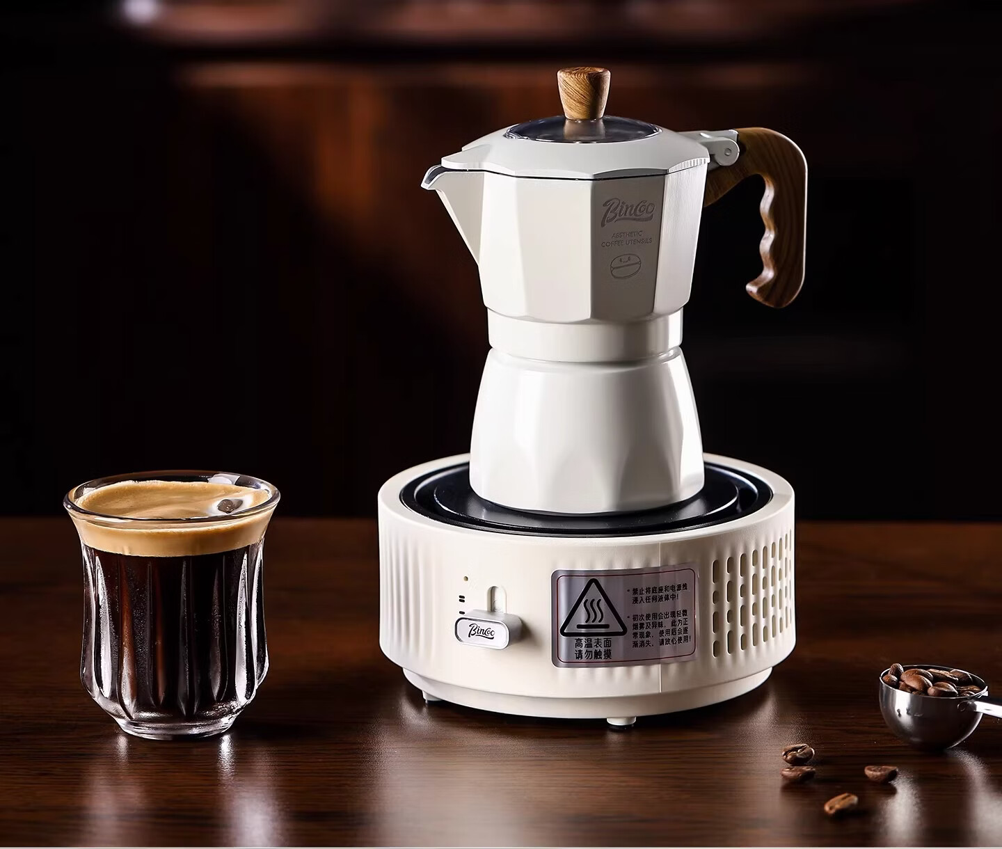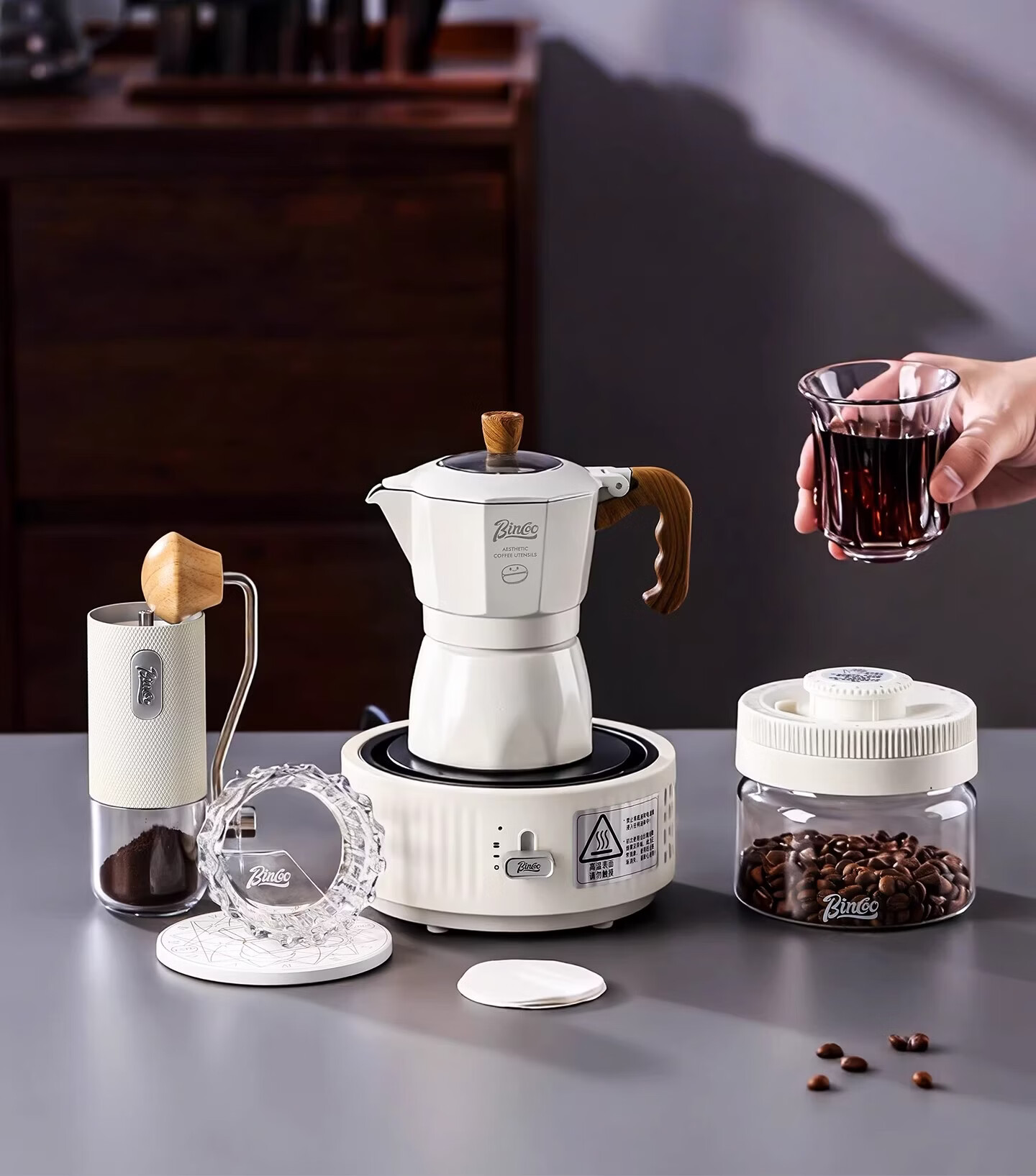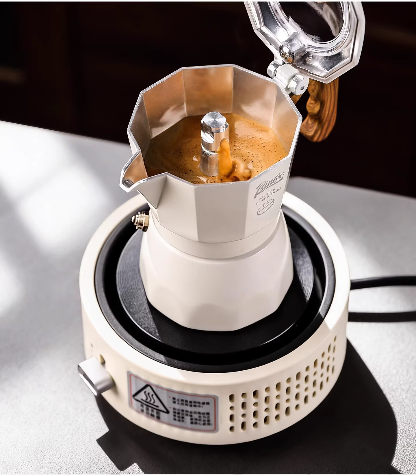 Bincoo双阀摩卡壶多人份家用小型浓缩煮咖啡壶意式咖啡机咖啡器具 【2人份】白色+滤纸 双阀