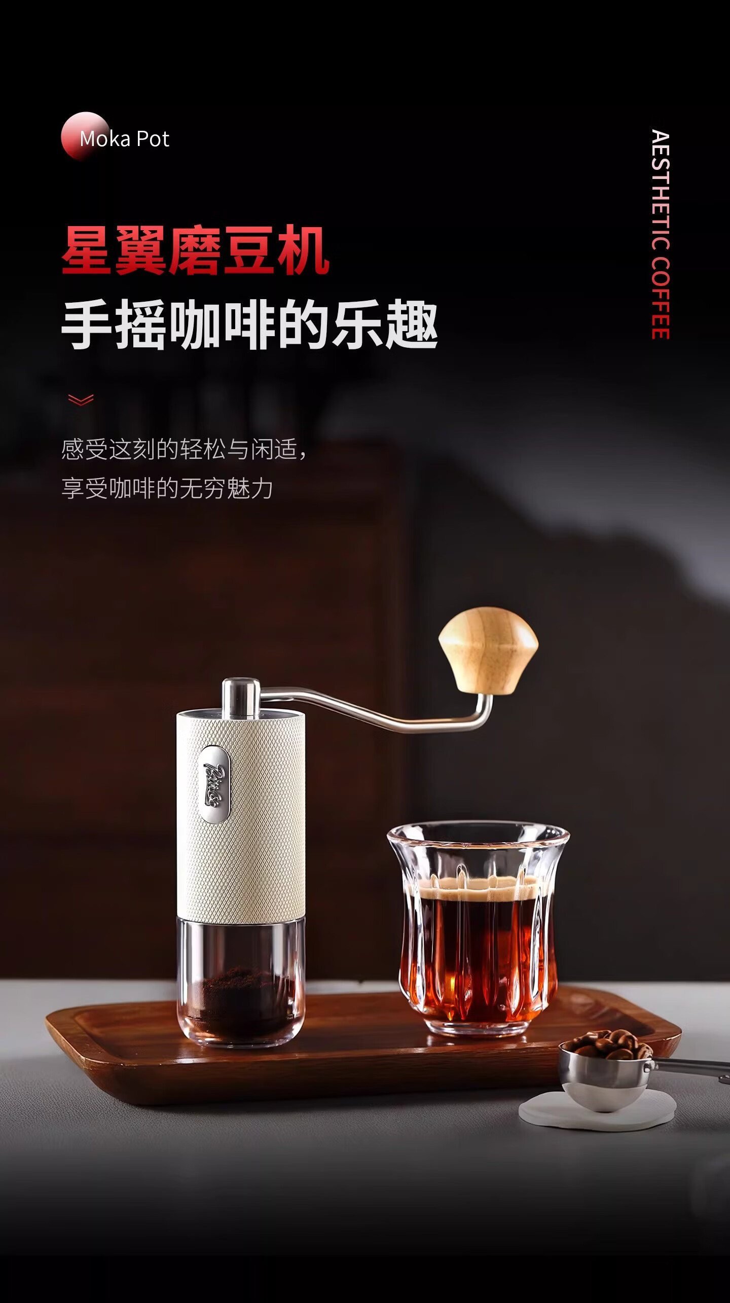 Bincoo手冲咖啡壶套装过滤分享壶陶瓷滤杯手磨咖啡磨豆机家用便携 渐变粉-两件套
