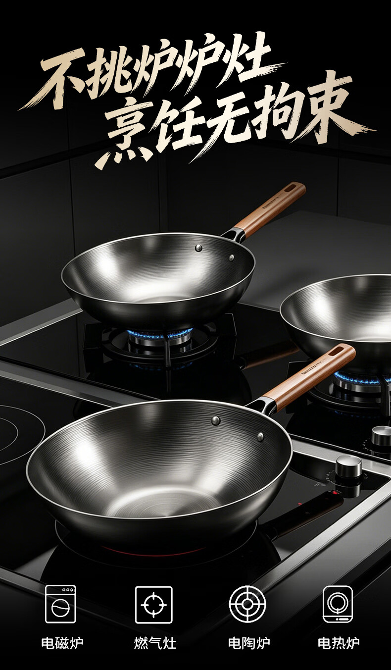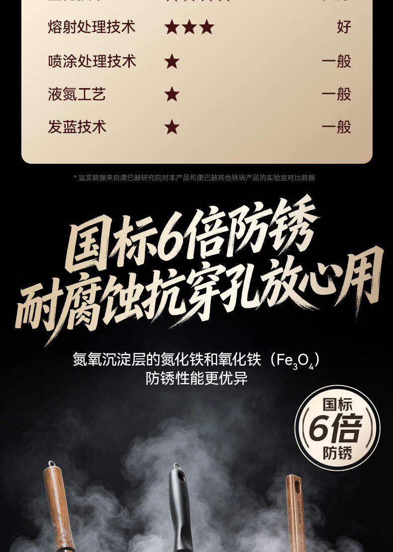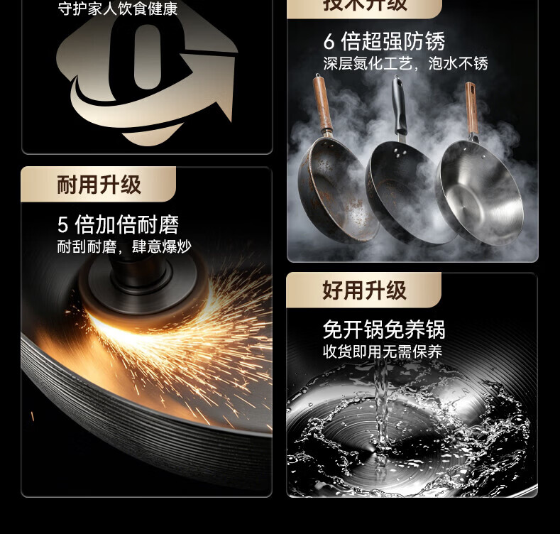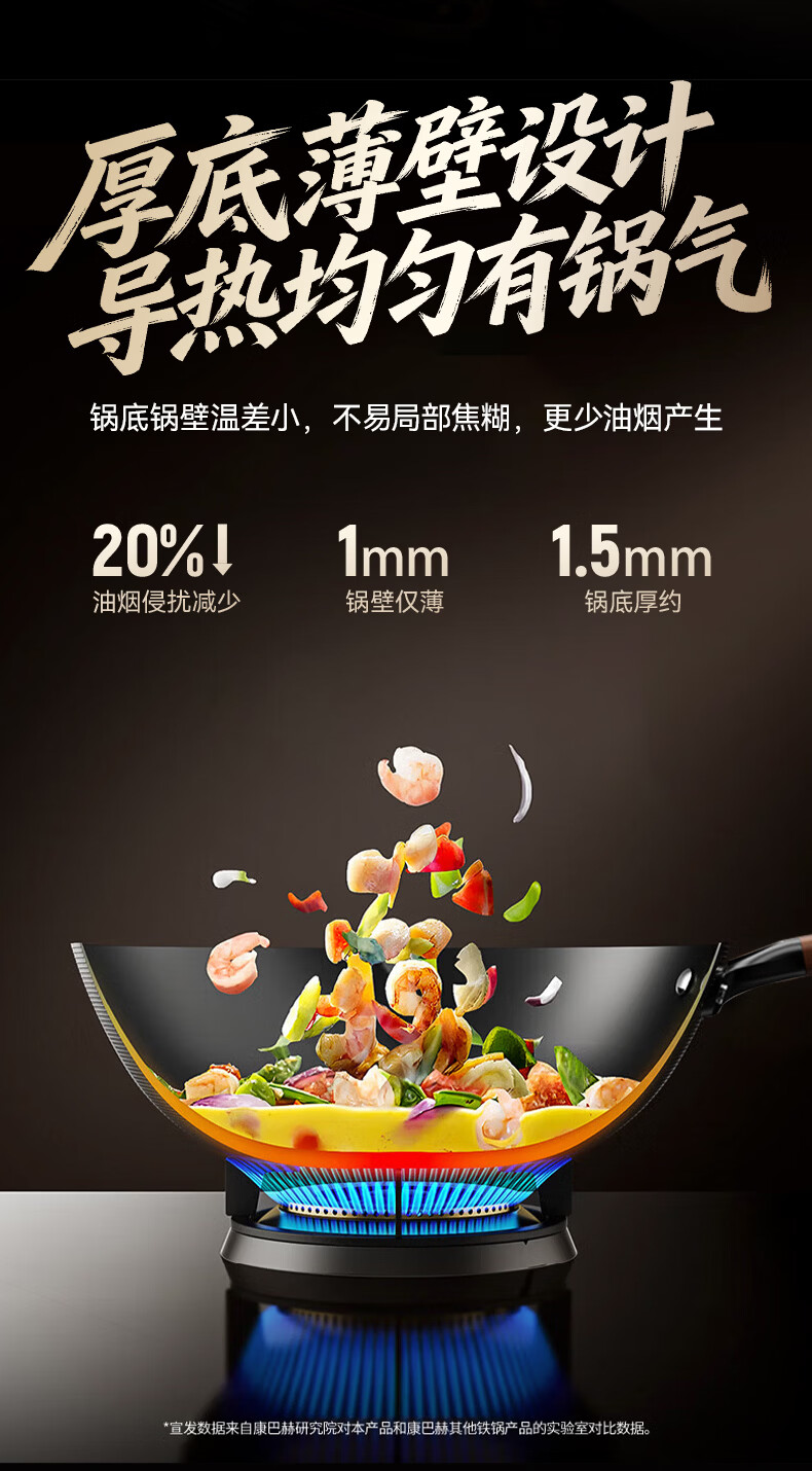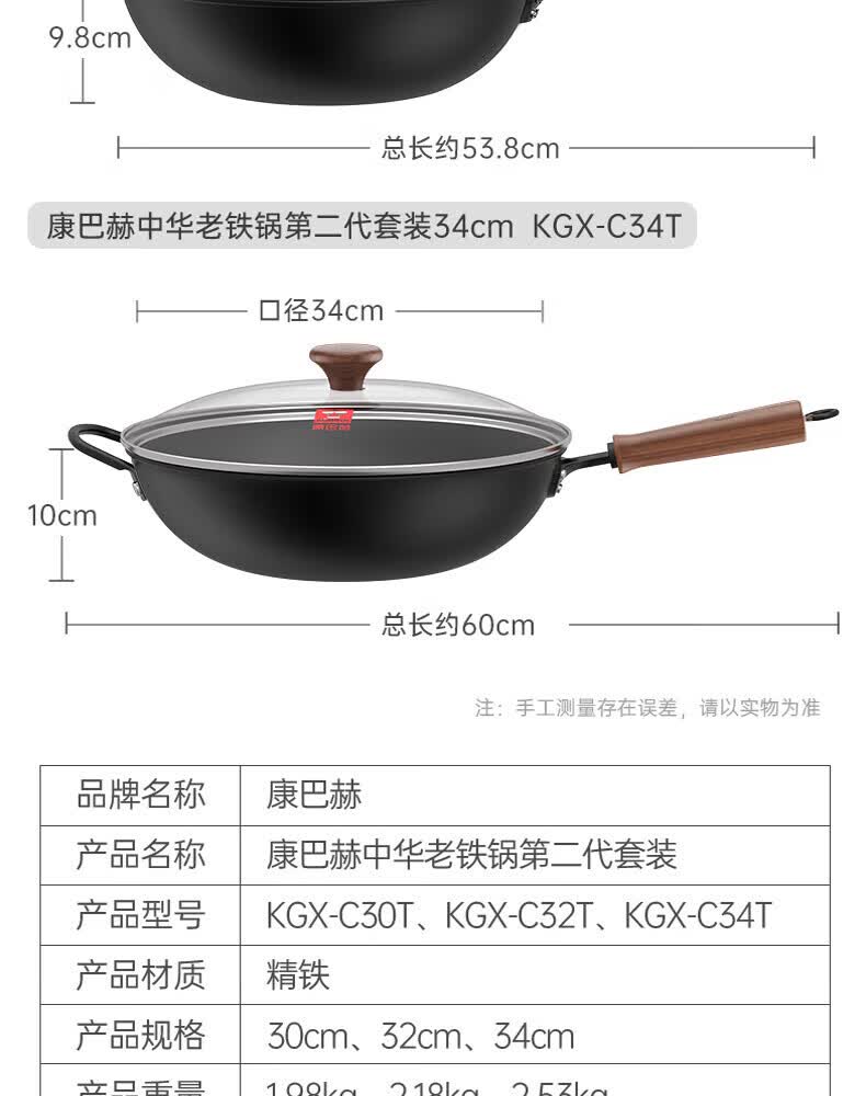 康巴赫(KOBACH)炒锅铁锅防锈0无涂层炒菜锅电磁炉燃气通用轻量化炒锅 高倍防锈轻量铁锅+锅盖 32cm