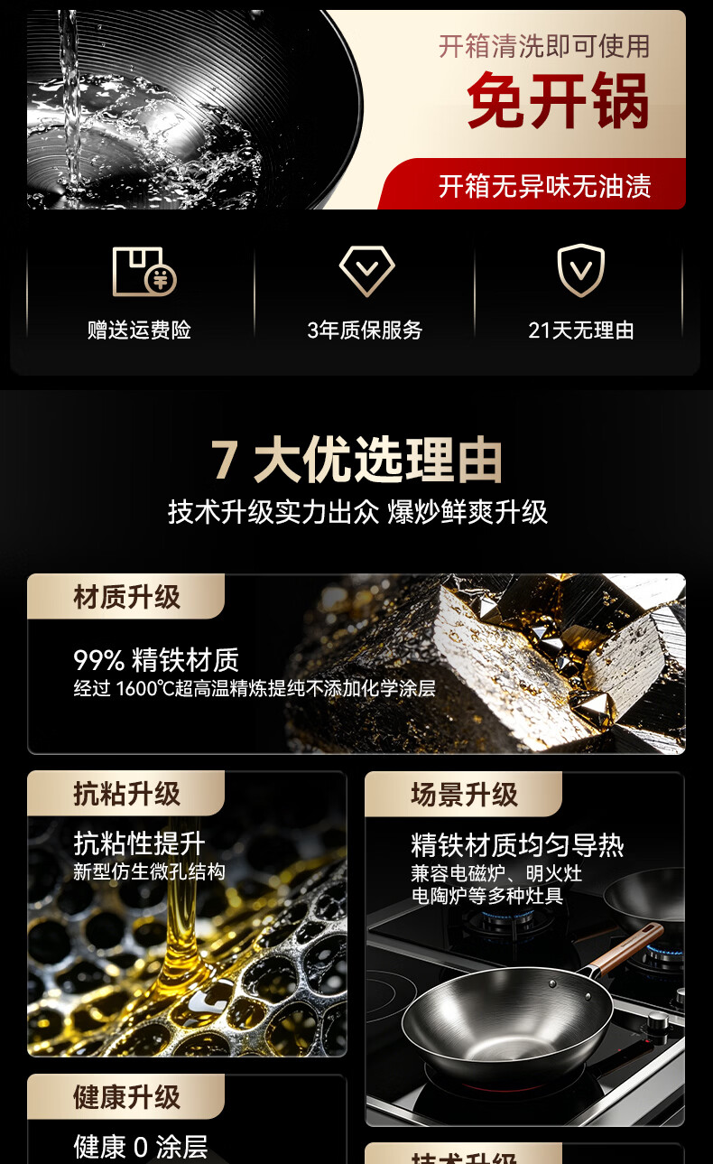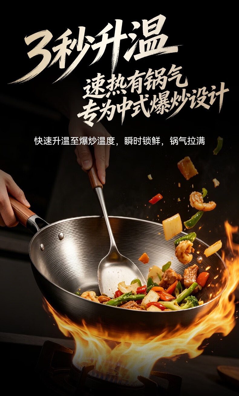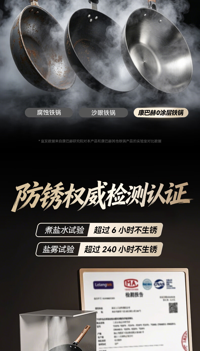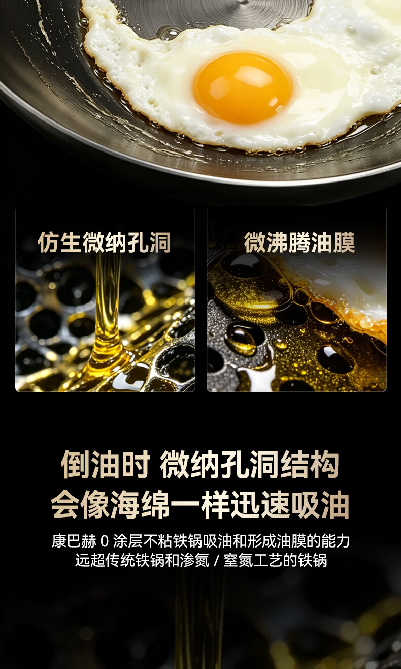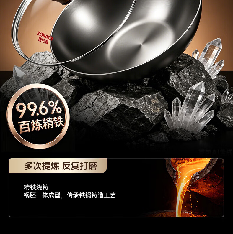 康巴赫(KOBACH)炒锅铁锅防锈0无涂层炒菜锅电磁炉燃气通用轻量化炒锅 高倍防锈轻量铁锅+锅盖 32cm