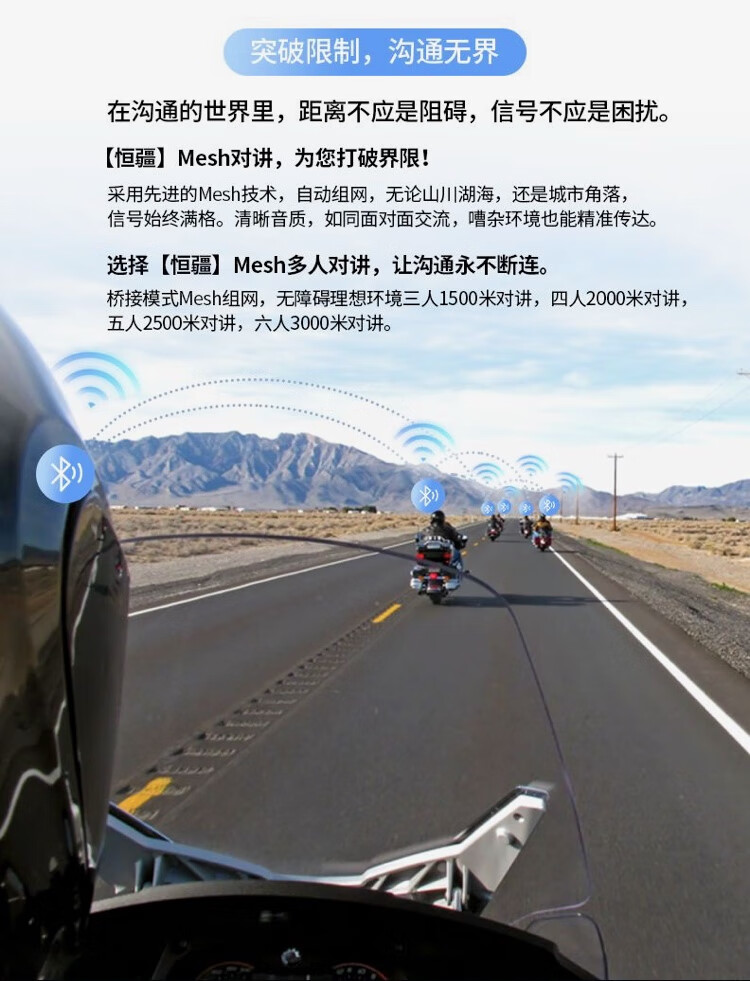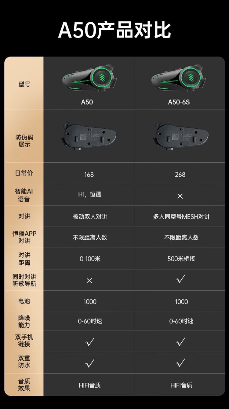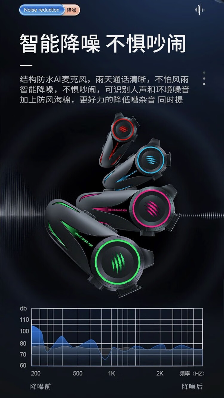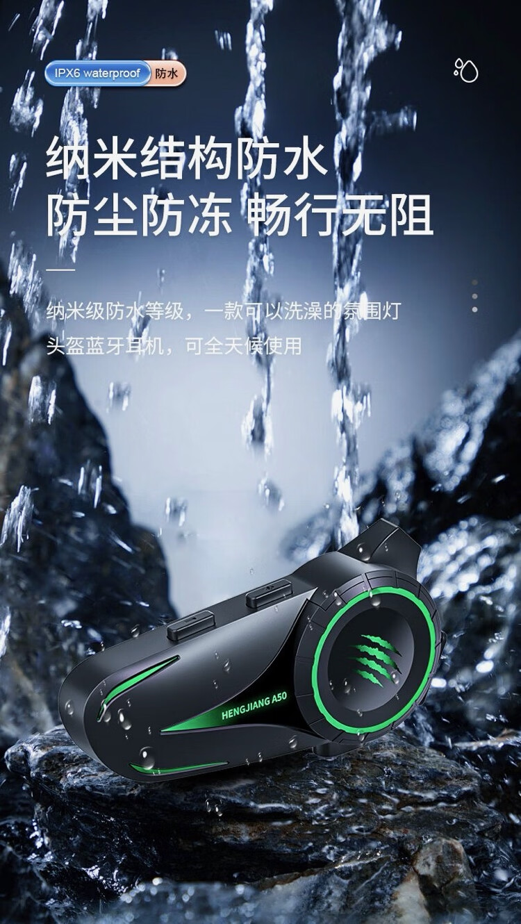 恒疆A50智能语音唤醒头盔蓝牙耳机mesh多人对讲防水降躁机车摩托车 A50(6s)软麦-多人mesh混音对讲