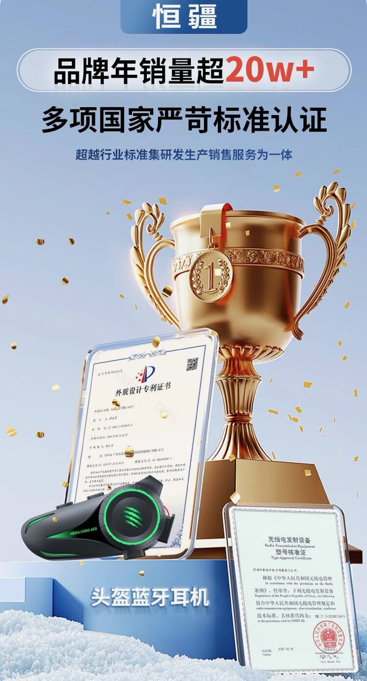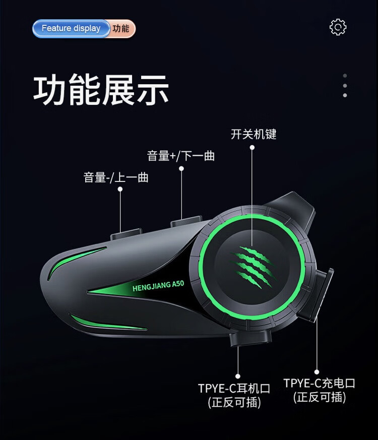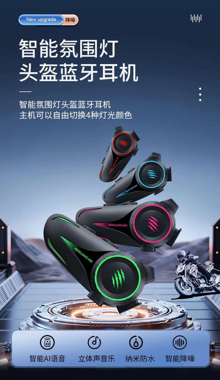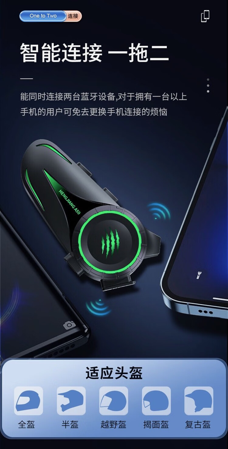恒疆A50智能语音唤醒头盔蓝牙耳机mesh多人对讲防水降躁机车摩托车 A50(6s)软麦-多人mesh混音对讲