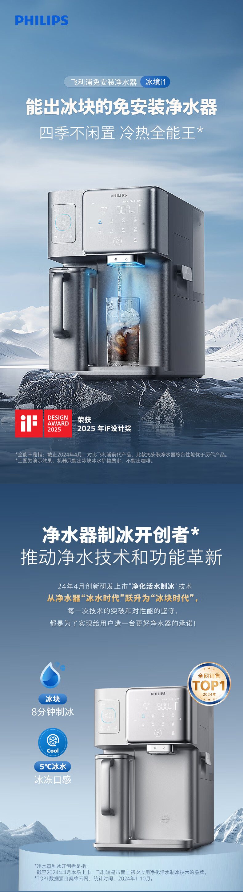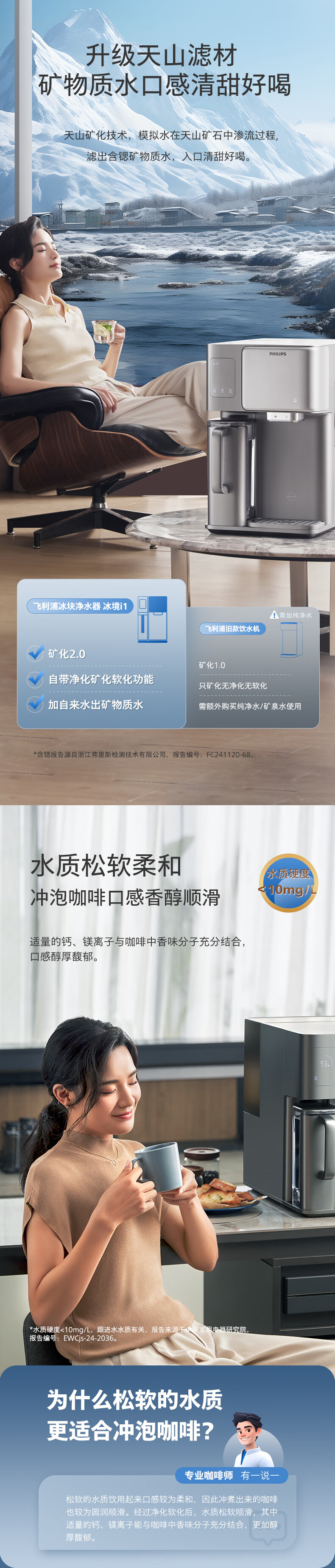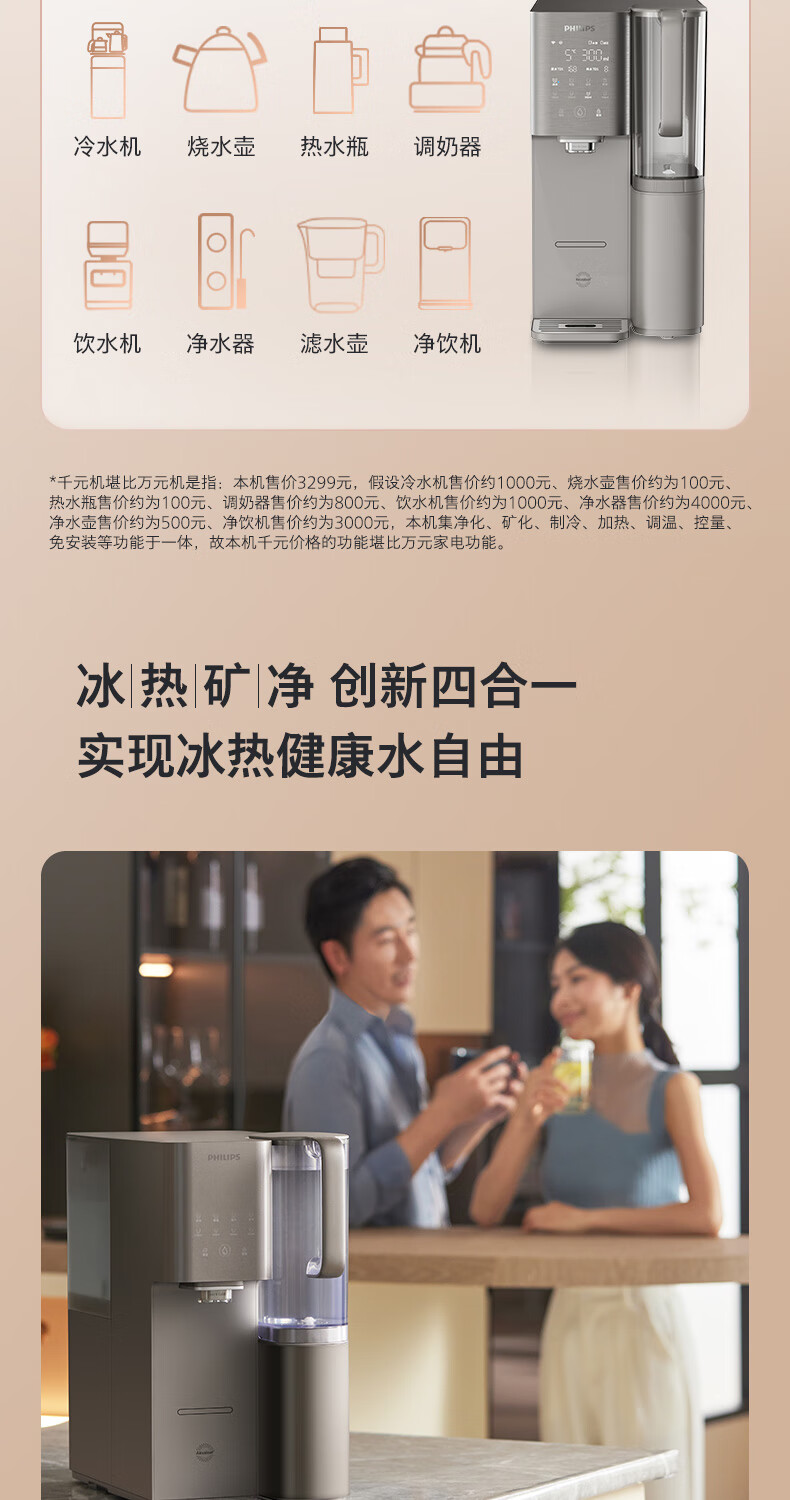 飞利浦(PHILIPS)净水器冰境i1 家用台式即热免安装净饮机饮水机矿泉加热直饮一体机 净水器 【冷热净矿四合一】ADD6876