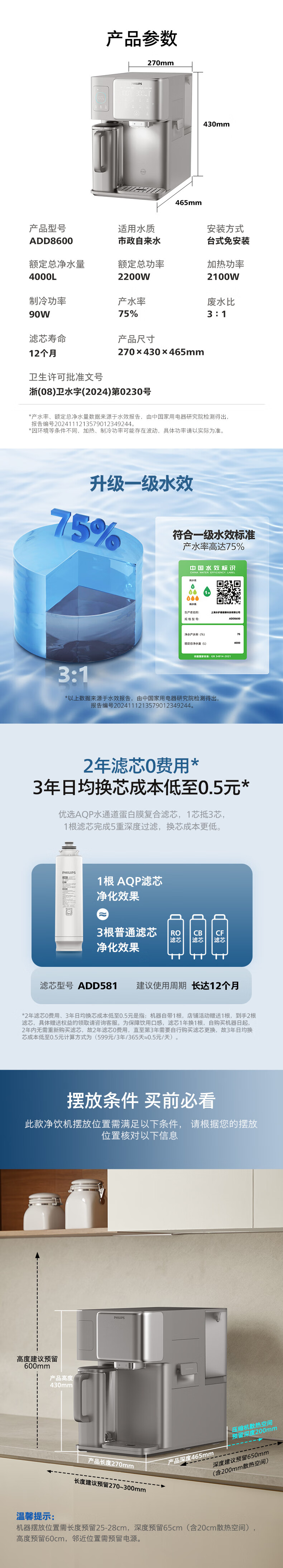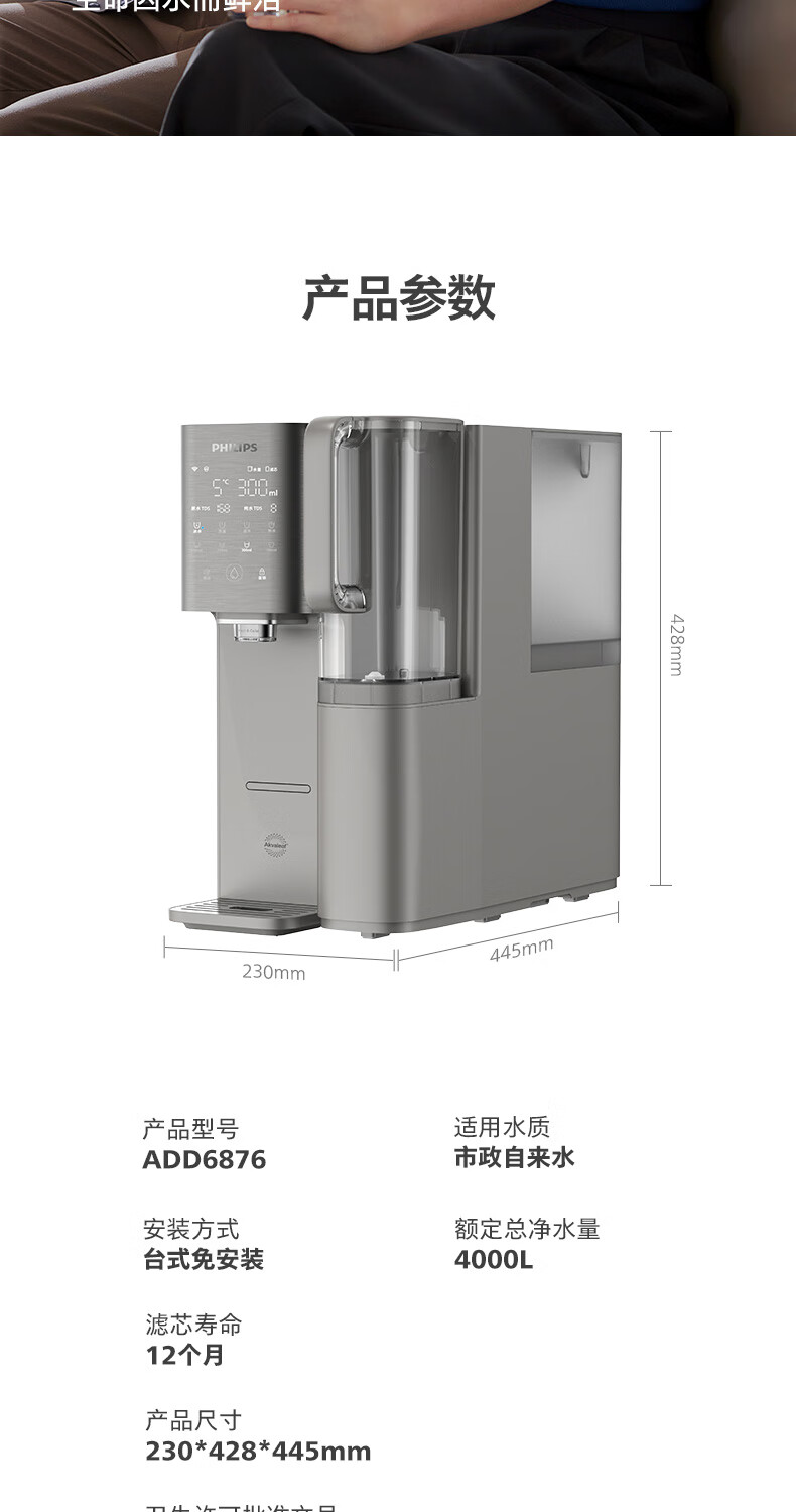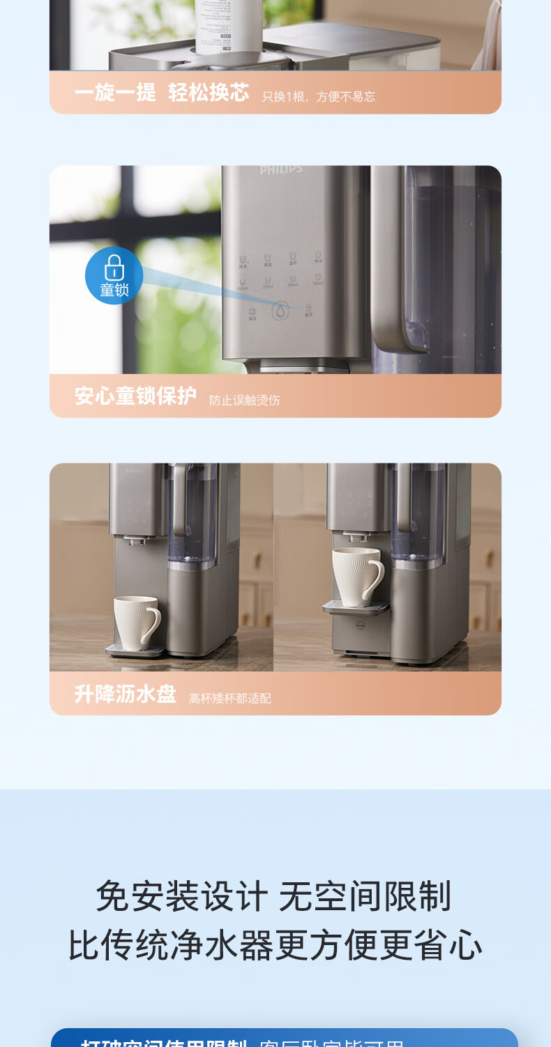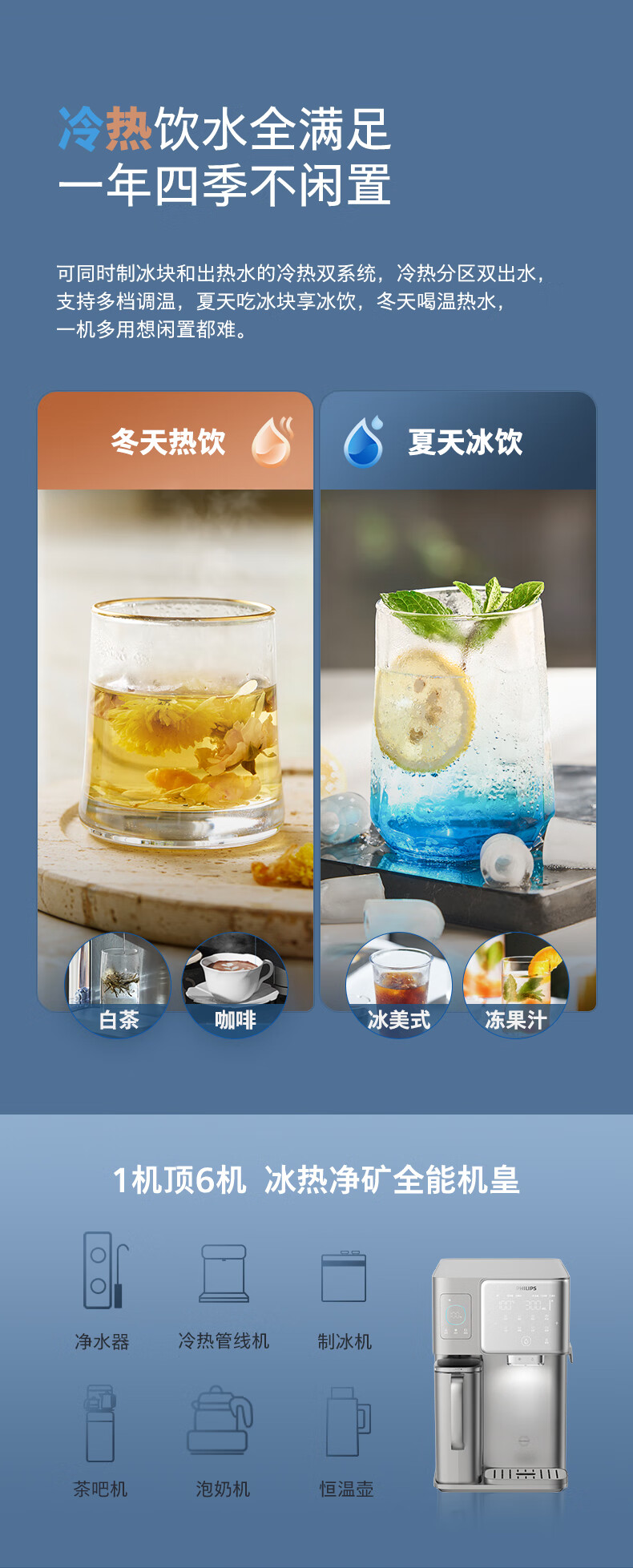 飞利浦(PHILIPS)净水器冰境i1 家用台式即热免安装净饮机饮水机矿泉加热直饮一体机 净水器 【冷热净矿四合一】ADD6876