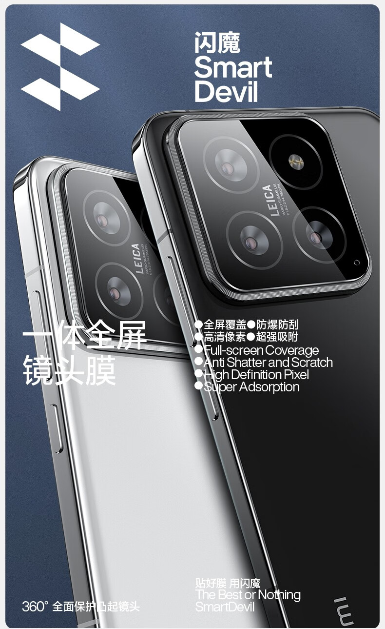 闪魔【甄选厂家】 小米14/14pro镜头膜钢化 高清防爆抗指纹无损像素防 小米14pro【钢化镜头膜】2片 贴坏包赔 真机开模