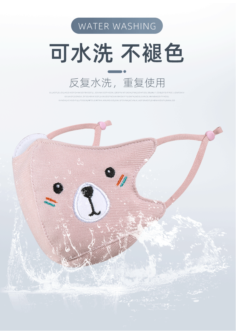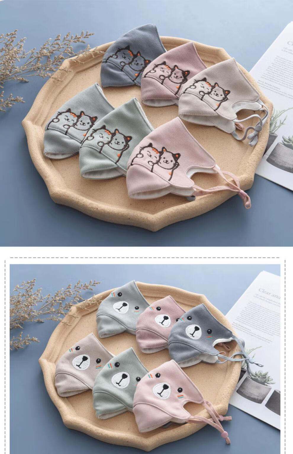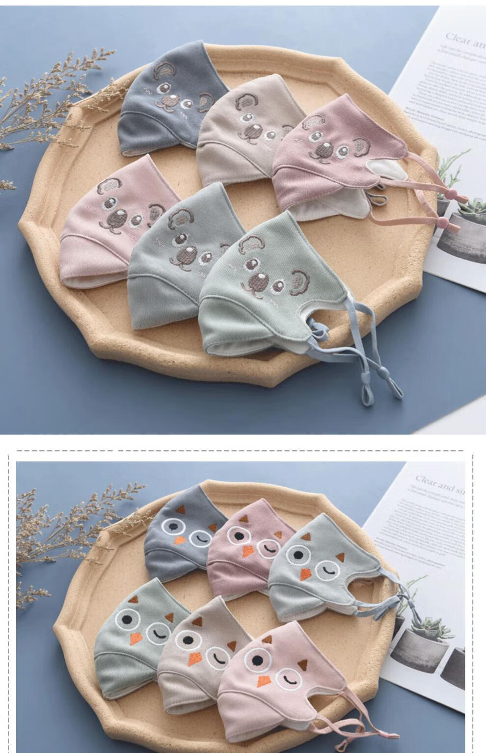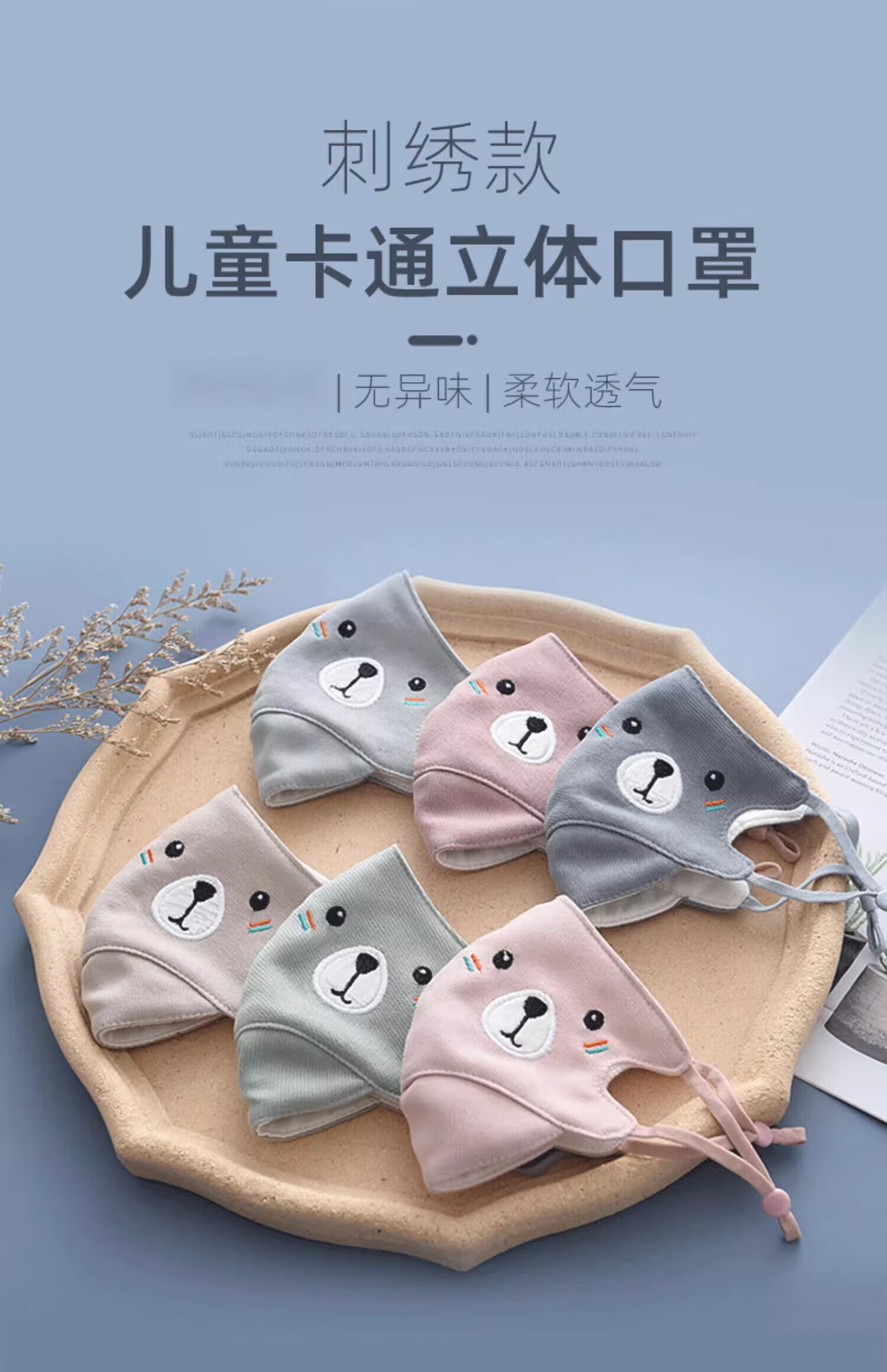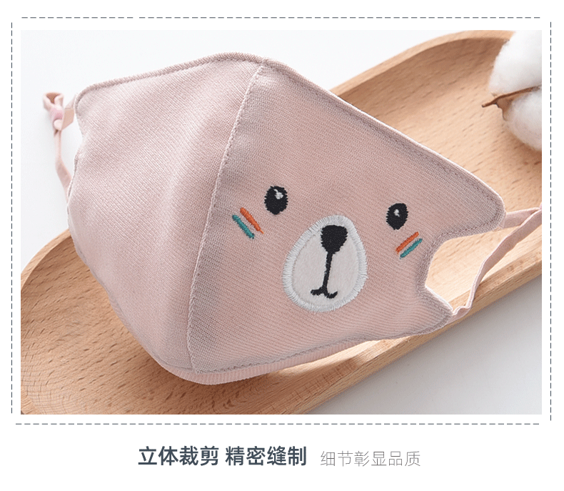 宝宝口罩0-3岁秋冬季卡通可爱婴儿儿童可水洗保暖防寒防风布纯棉 粉色小熊 S0-3岁