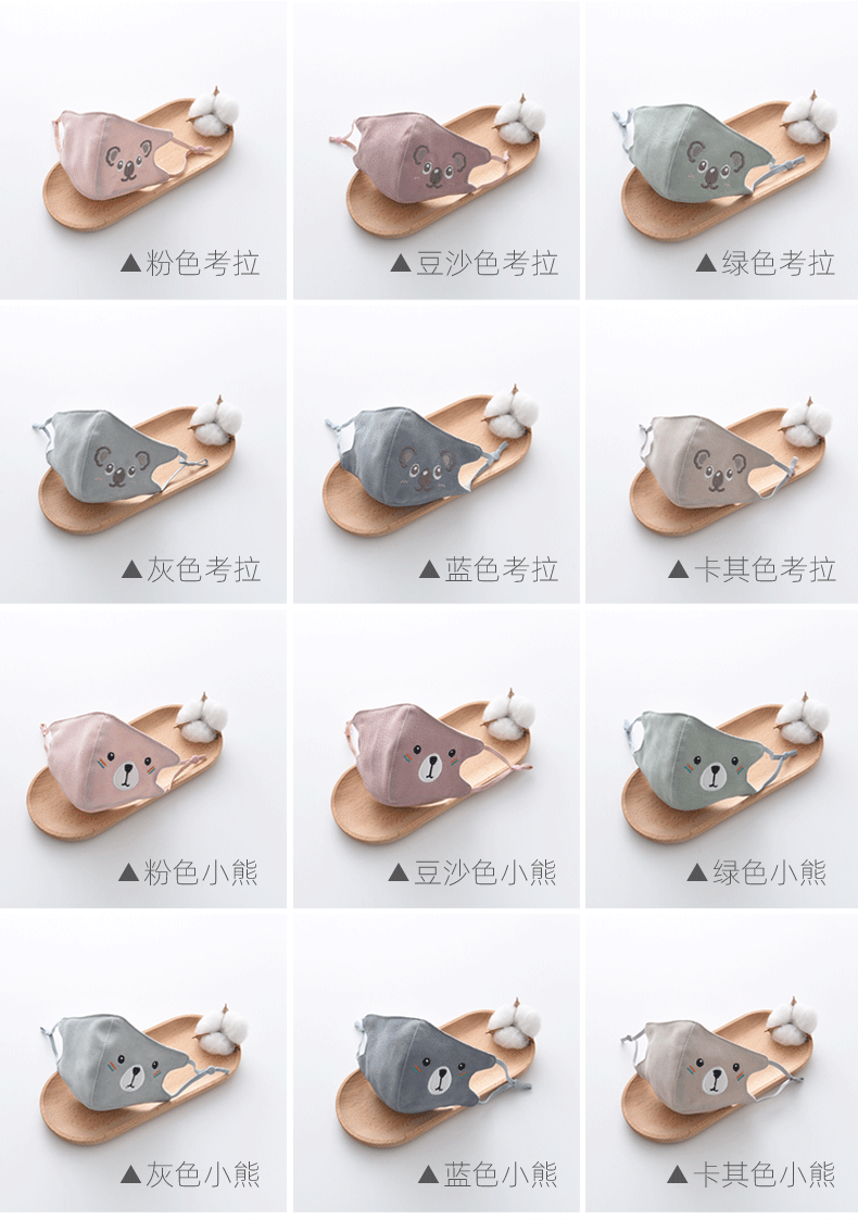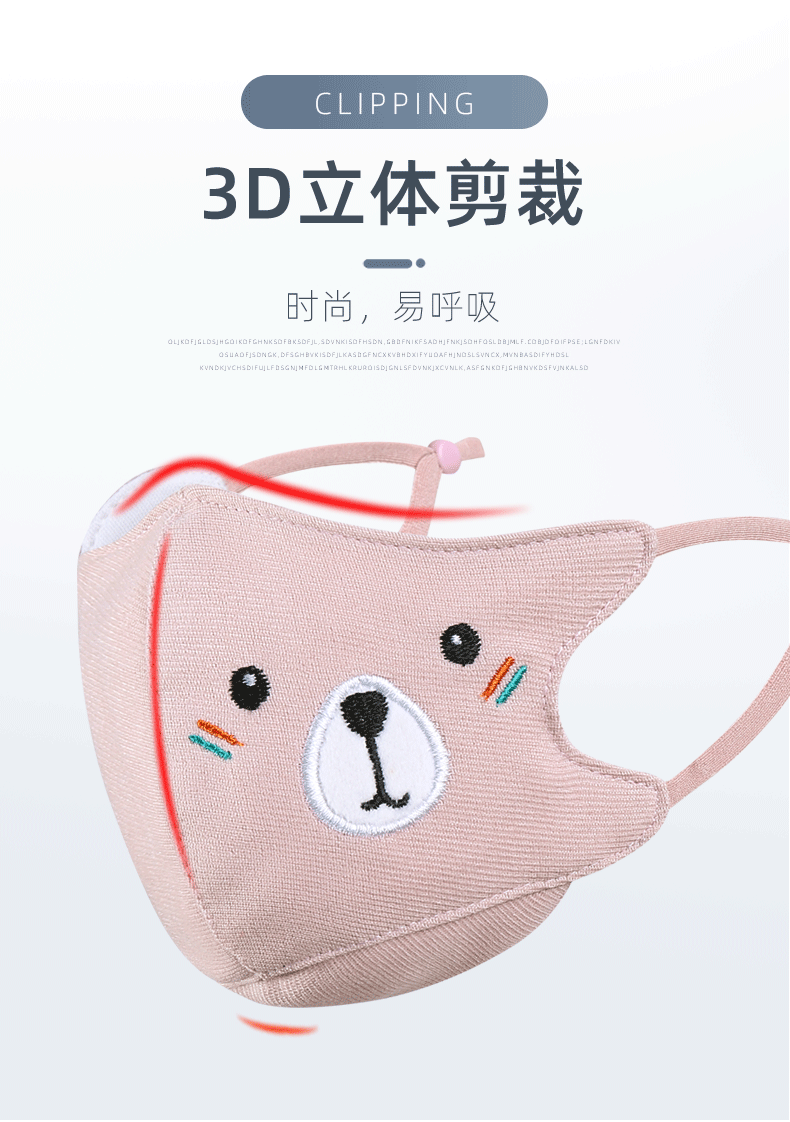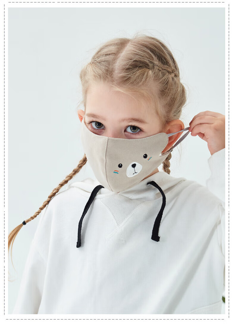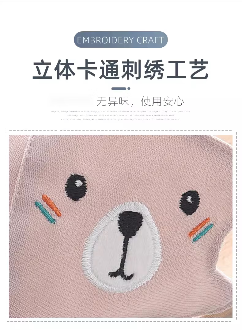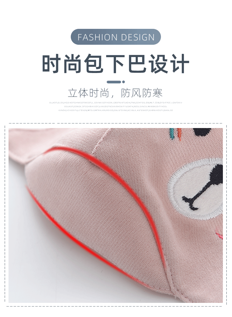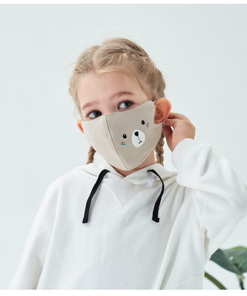 宝宝口罩0-3岁秋冬季卡通可爱婴儿儿童可水洗保暖防寒防风布纯棉 粉色小熊 S0-3岁