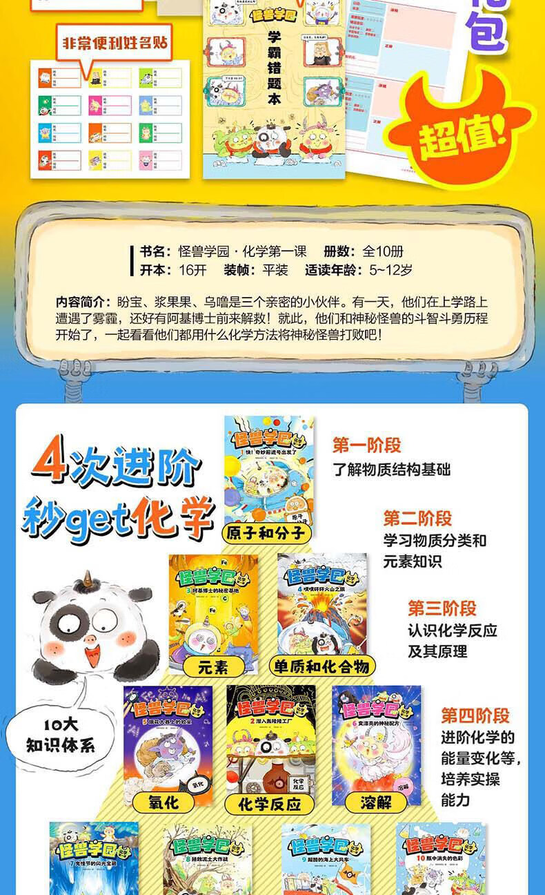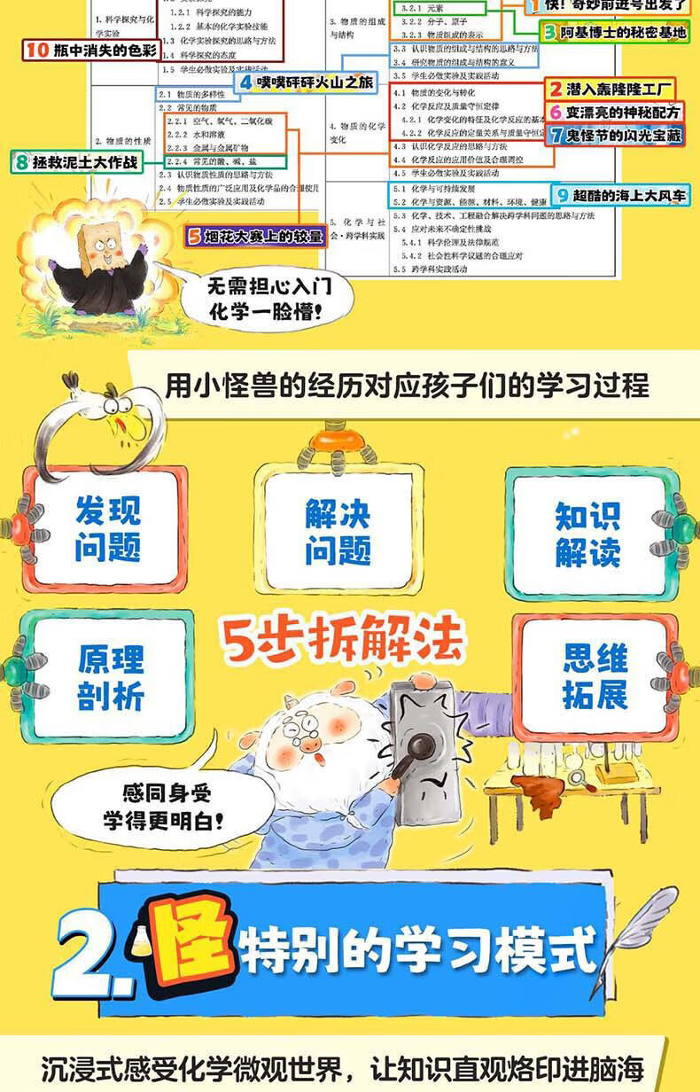新华书店直营正版 怪兽学园化学第一课全10册 漫画版趣味学化学元素周期表科学小实验三四五六年级小学生课外阅读书籍科普读物百科知识图书籍 北京科学技术出版社