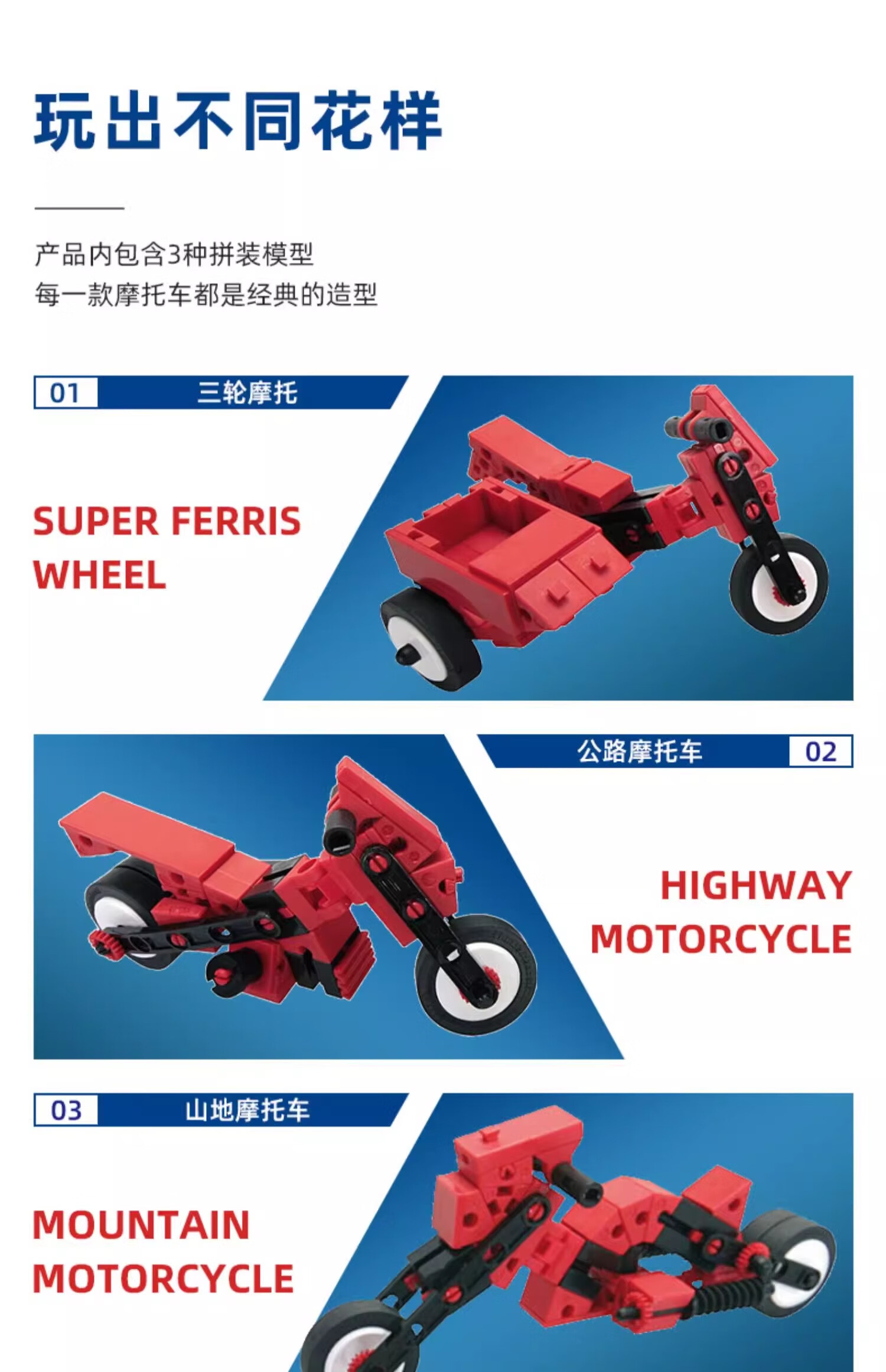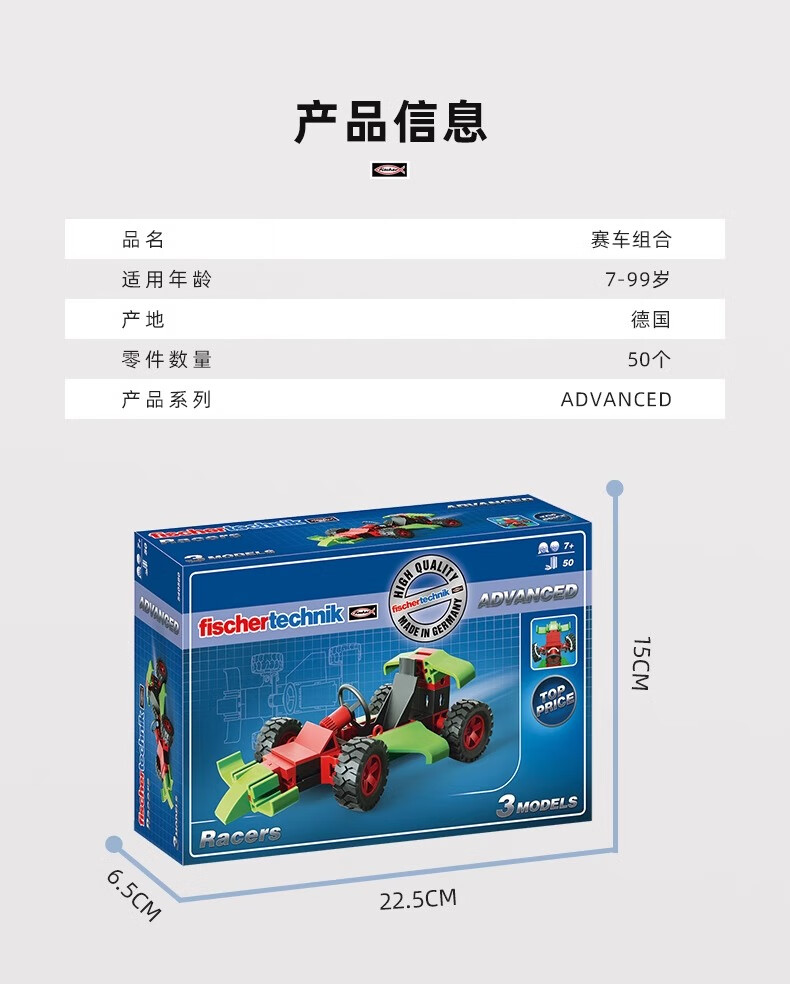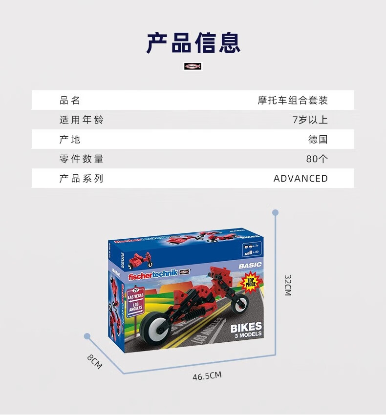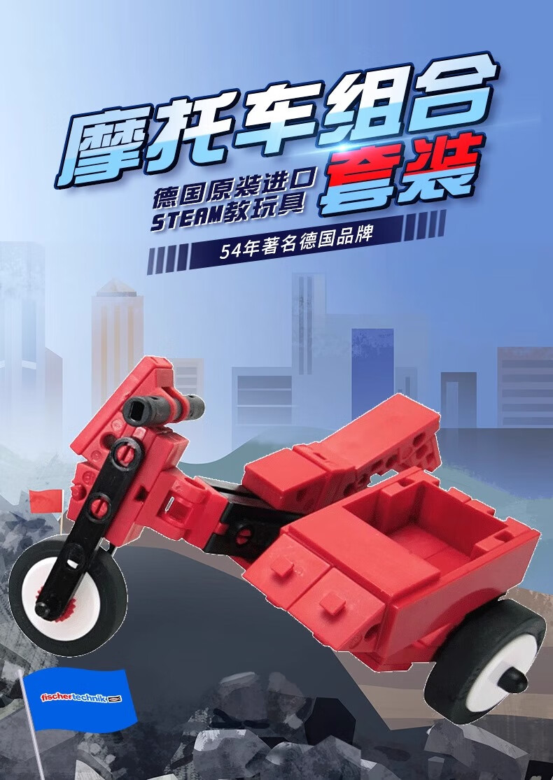 fischertechnik慧鱼德国进口儿童益智拼搭积木赛车滑翔机组合创意拼插玩具礼物 摩托车【505278】