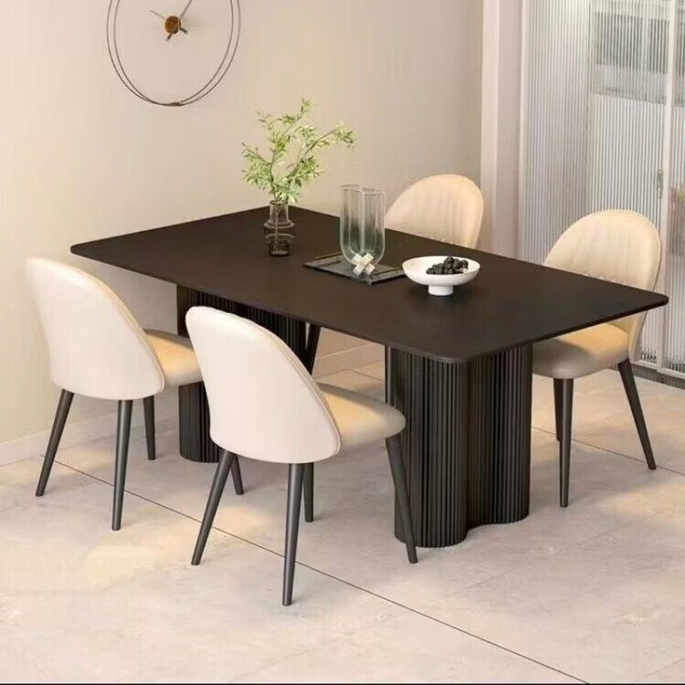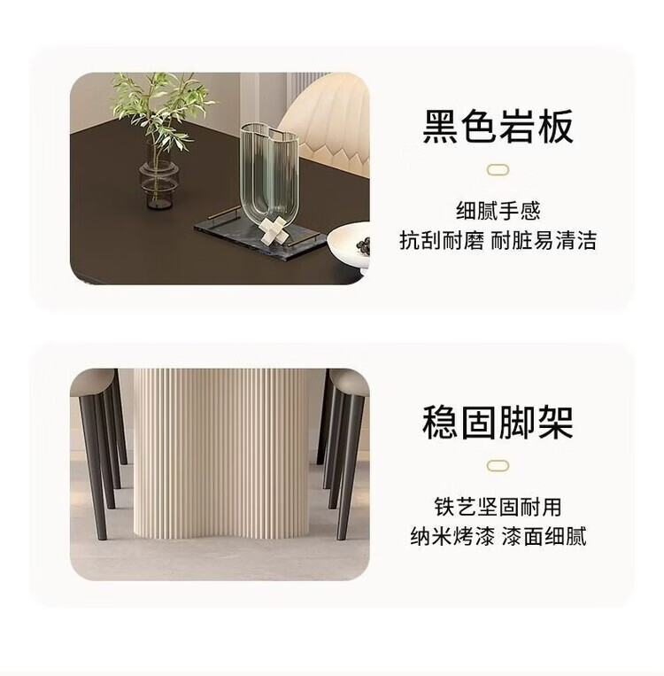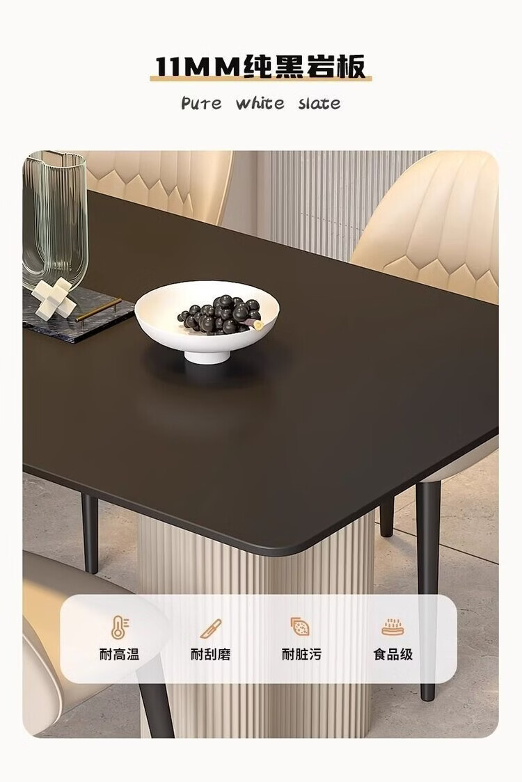 欣慕雅黑色岩板长方形餐桌餐桌椅新款意式组合小户型现代简约家用饭桌 通体纯黑岩板+黑色碳钢底座 120*60cm单桌【赠送底板】