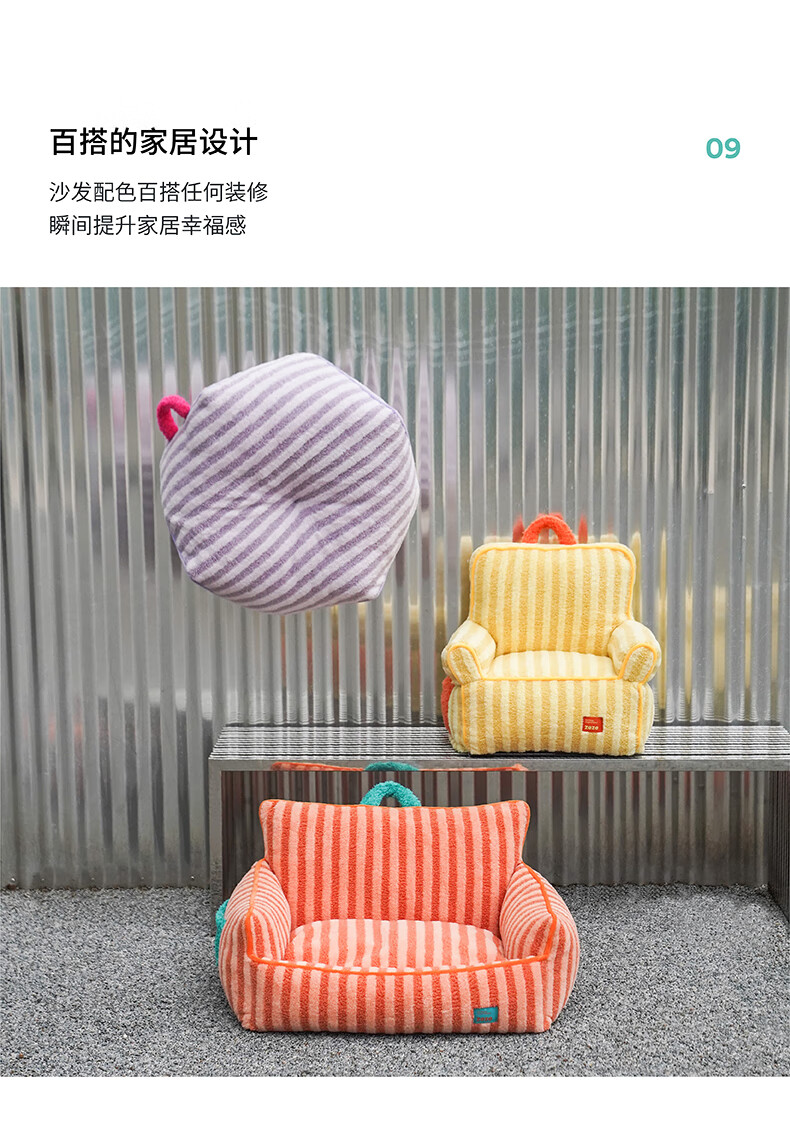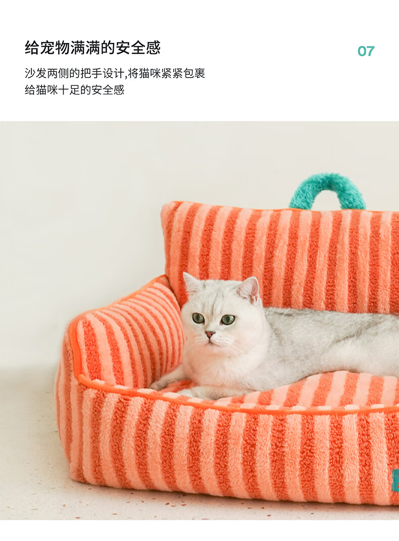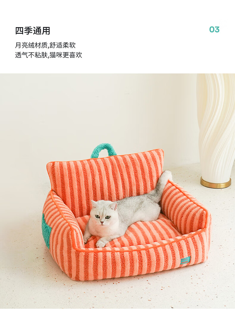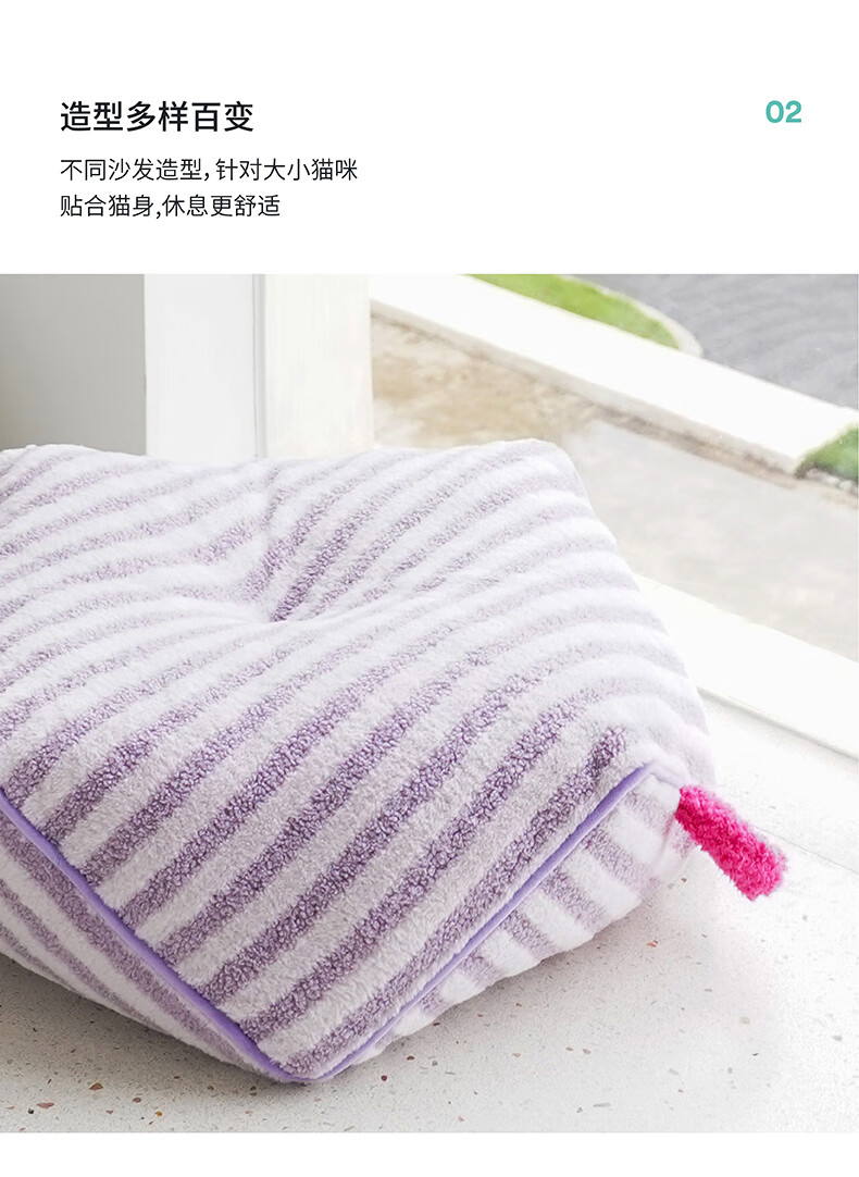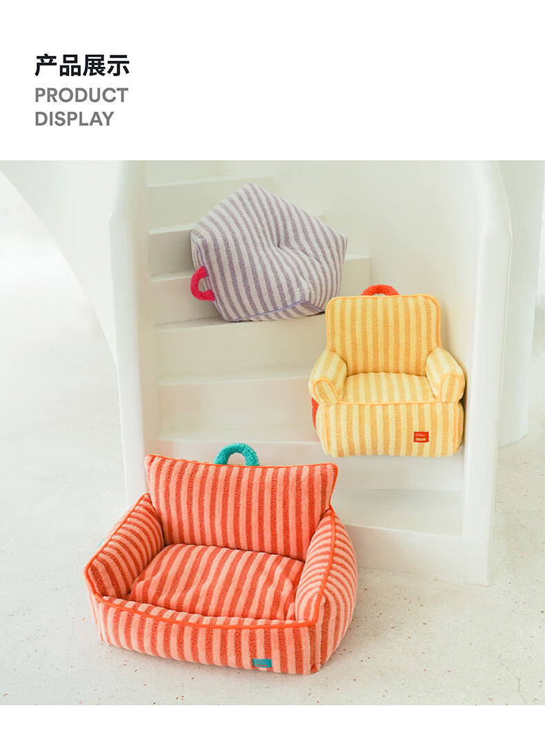 ZEZE条纹宠物床保暖猫床四季通用可拆洗可爱宠物沙发猫咪窝软绒垫