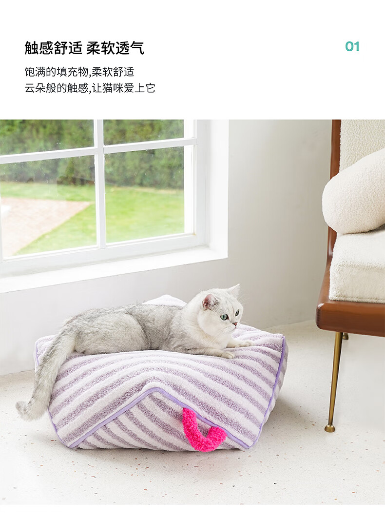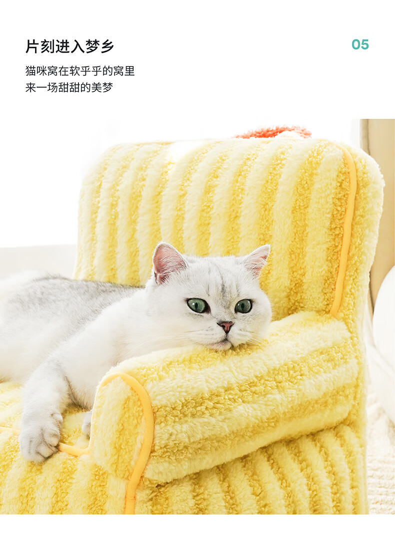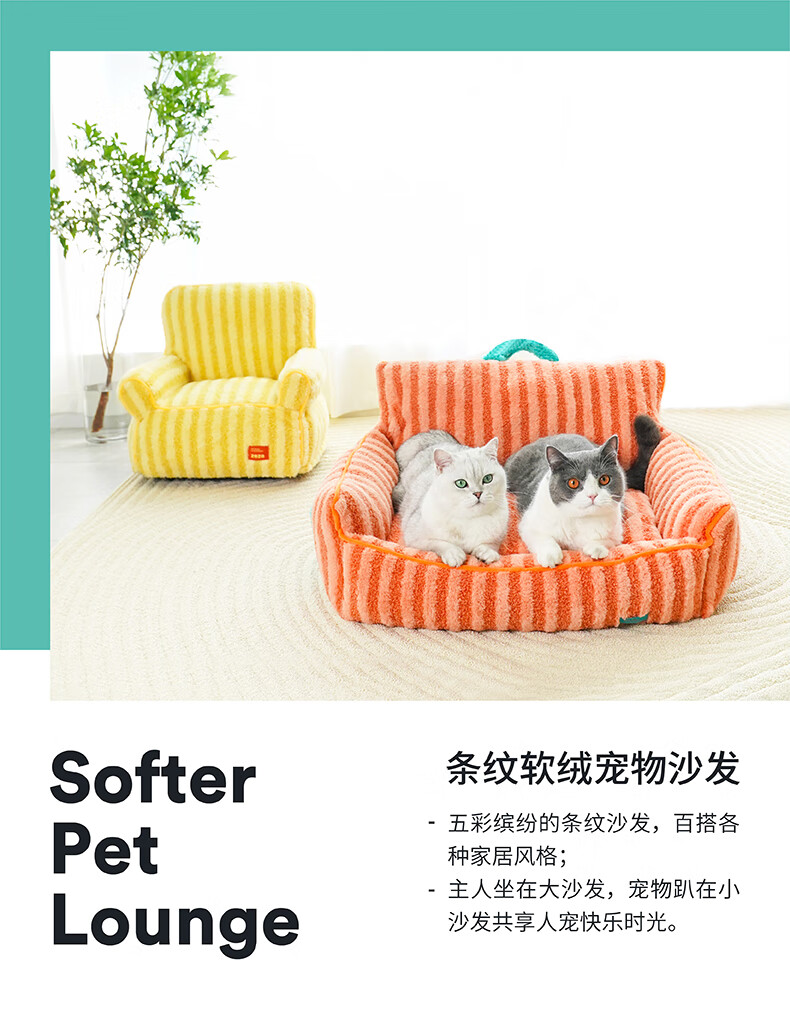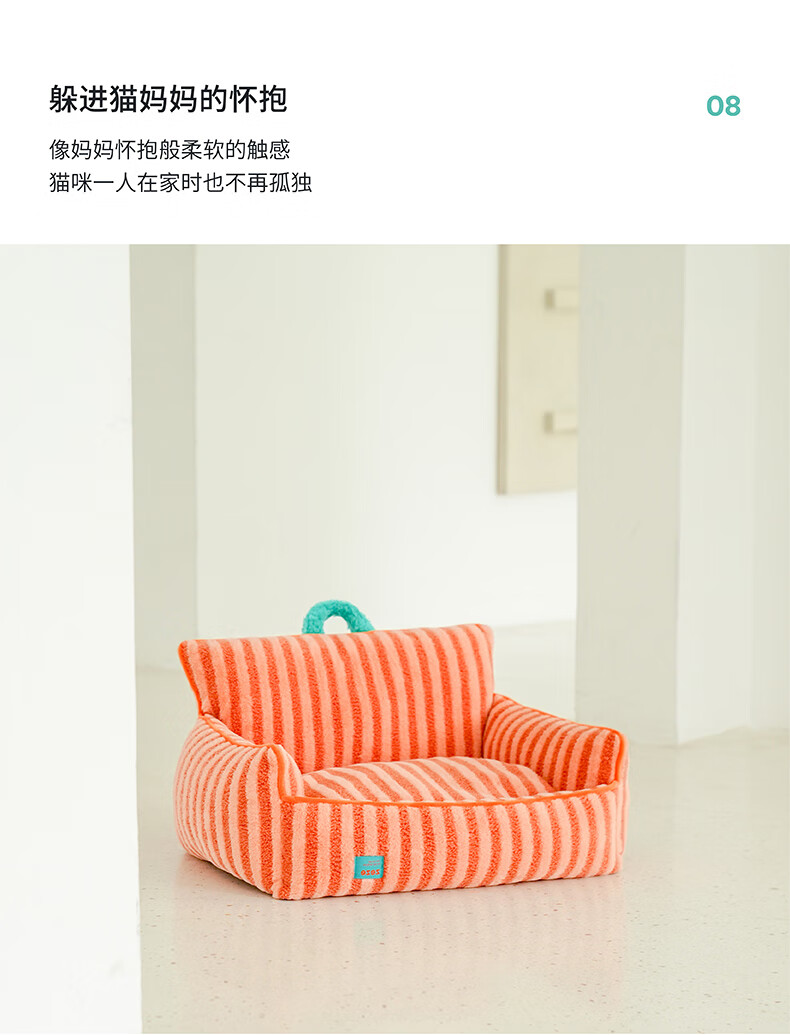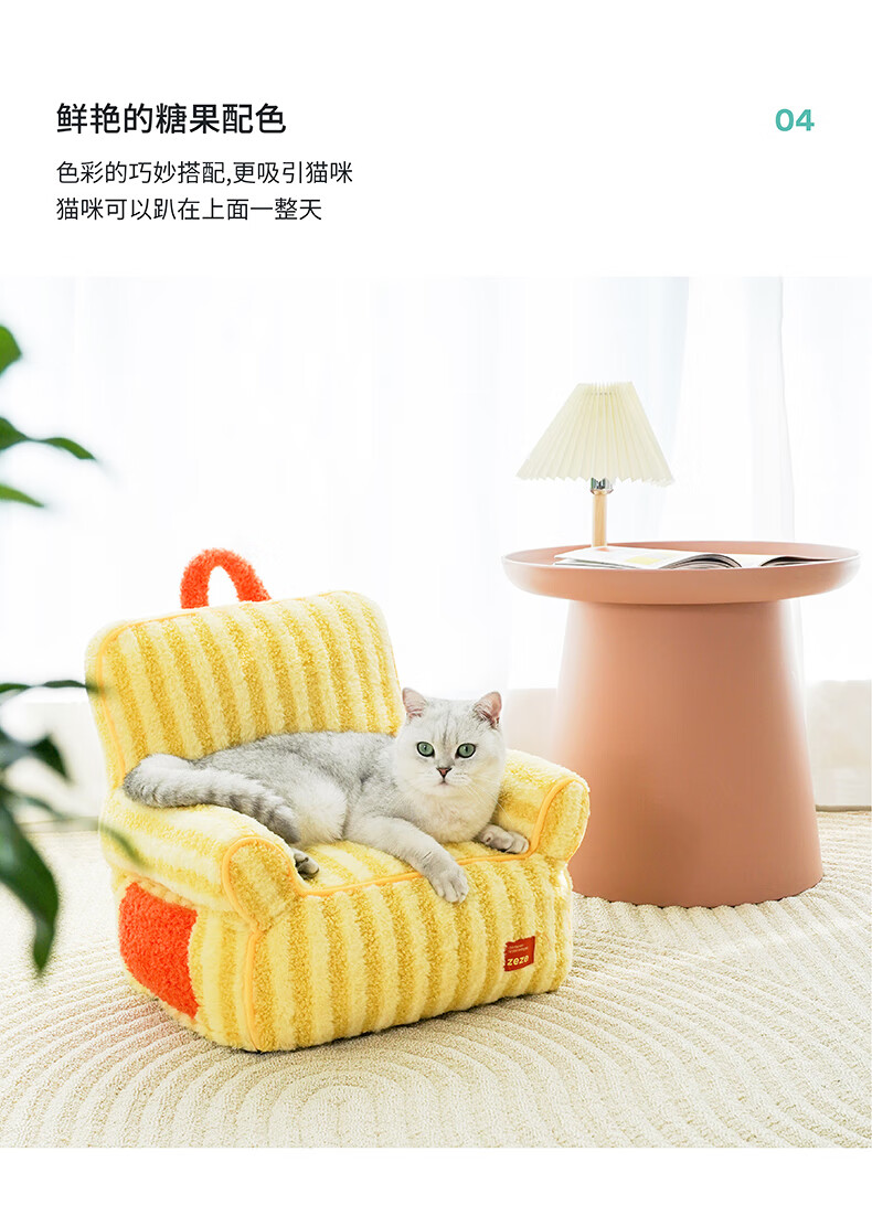 ZEZE条纹宠物床保暖猫床四季通用可拆洗可爱宠物沙发猫咪窝软绒垫
