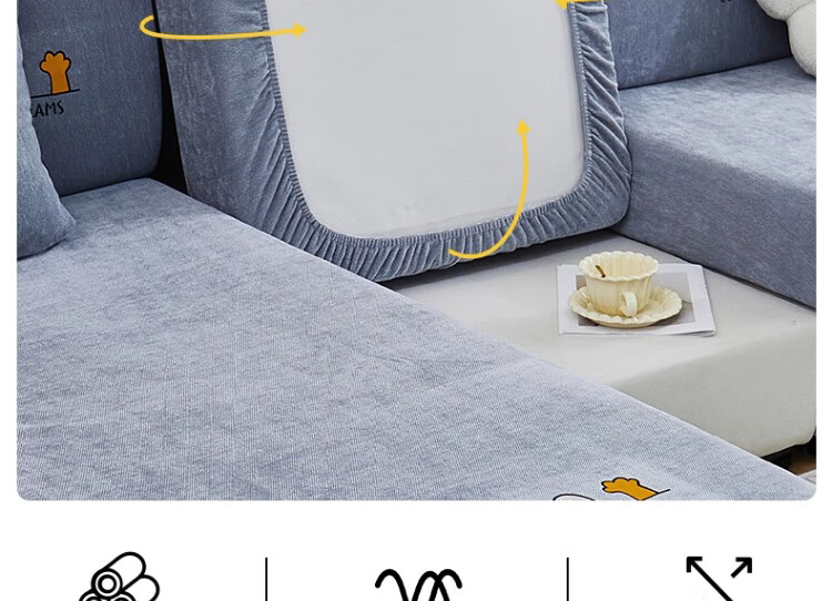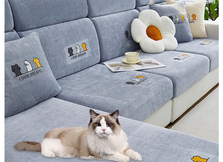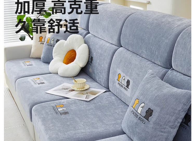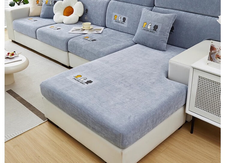 无印良品沙发套罩四季通用全包防滑沙发笠简约防猫抓保护套万能沙发套通用 四季雪尼尔-萌动-灰色【全包防尘防滑 高弹不变形】 加大L码【宽65-85cm*长135-165cm*高5-20cm】