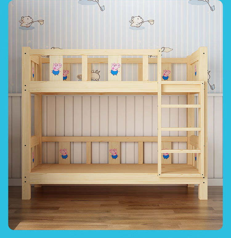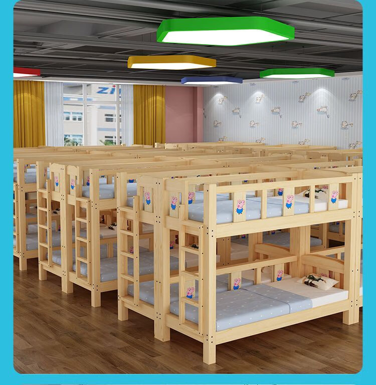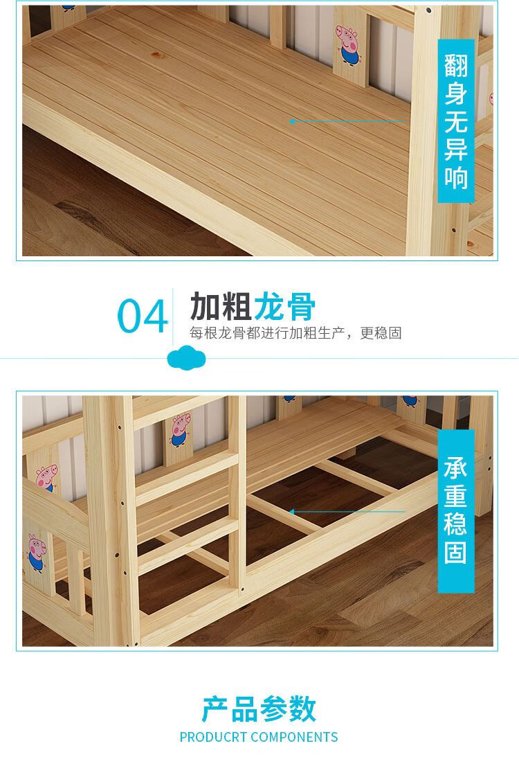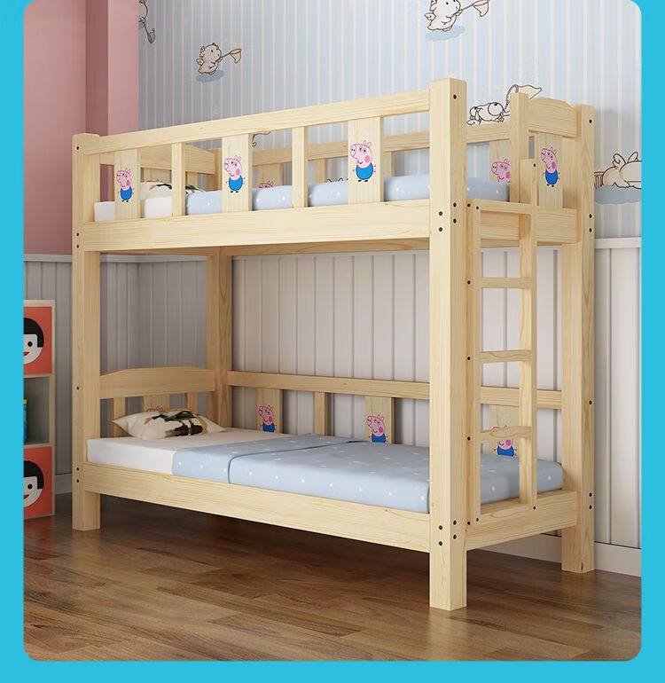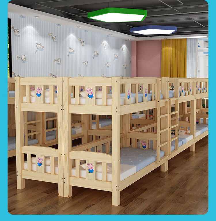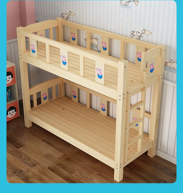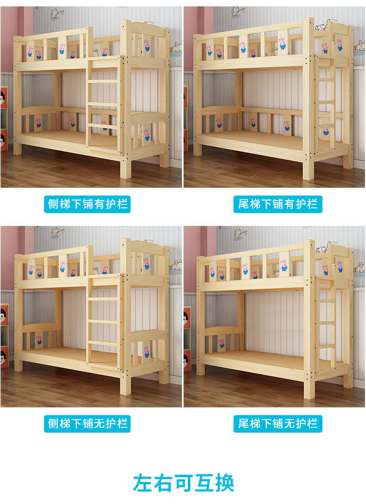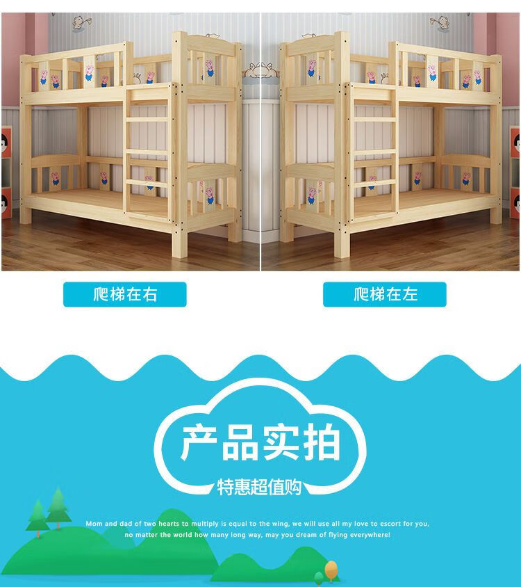 海诗圣堡幼儿园专用床上下床儿童床小学生托管班高低床小孩上下铺床二层床 原木侧梯下铺无护栏 长135 宽65 高125
