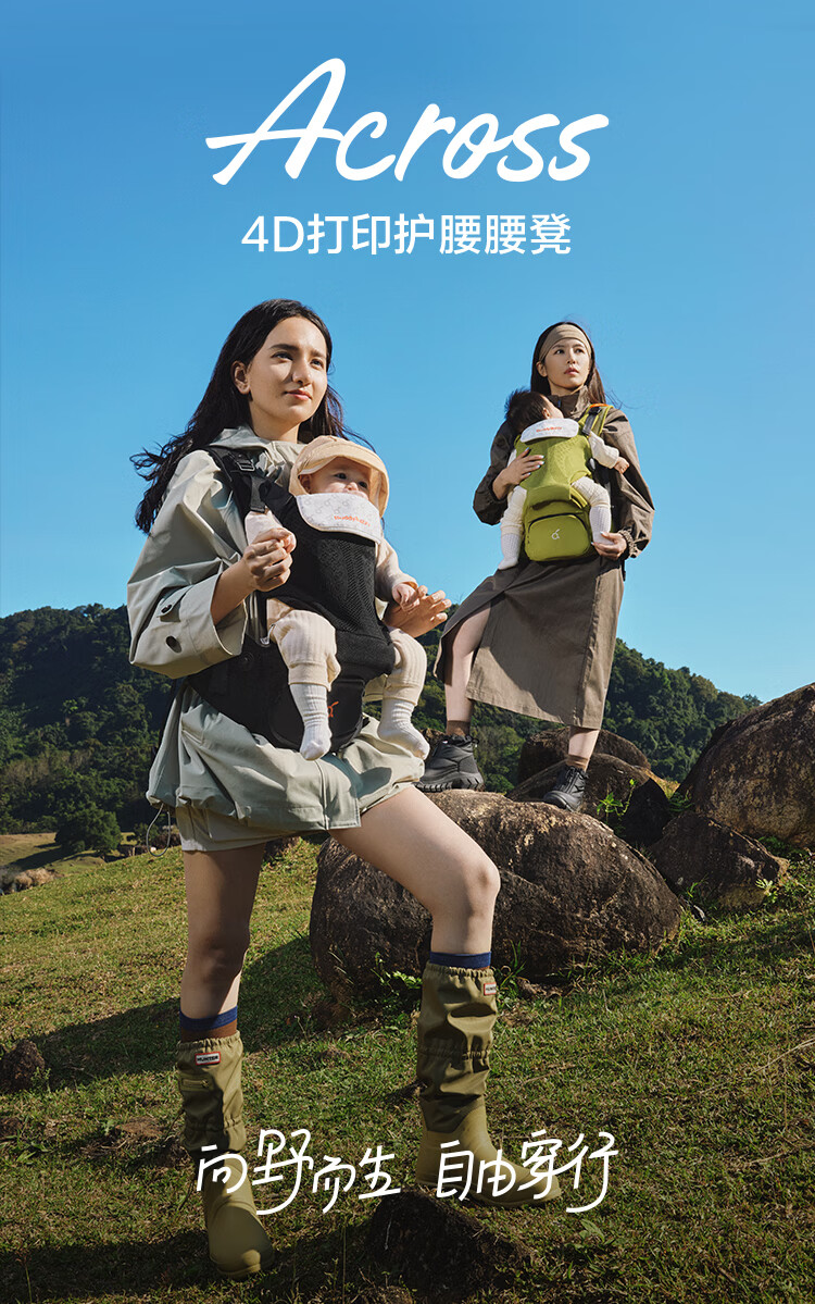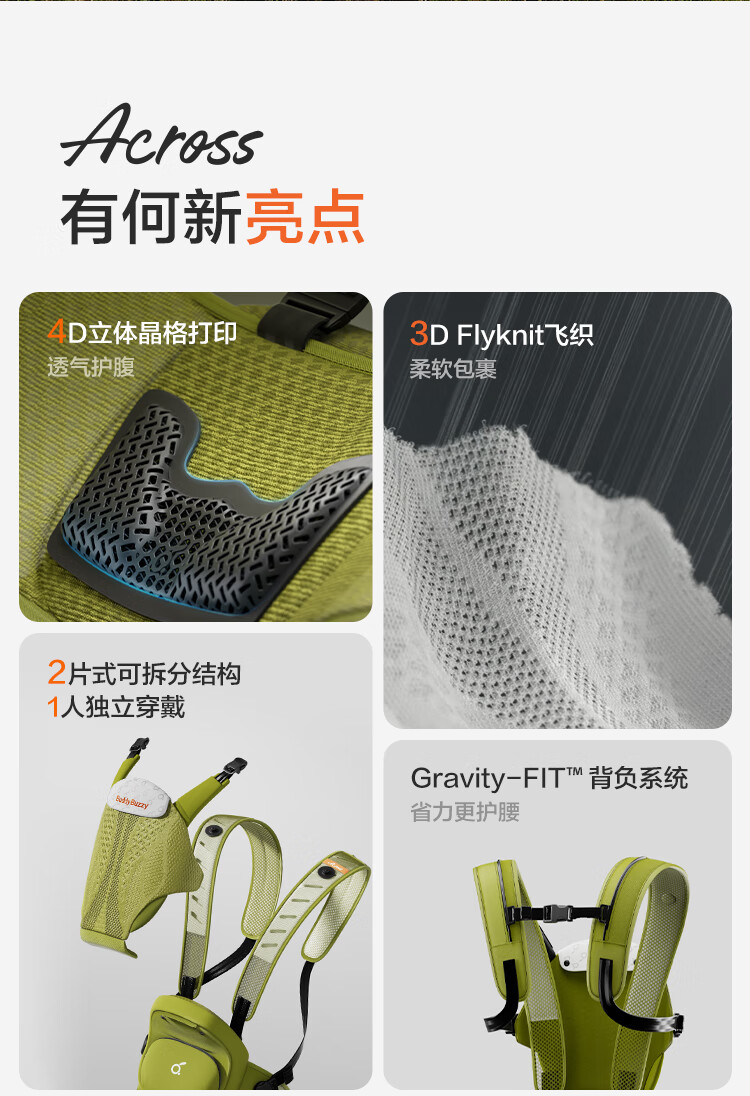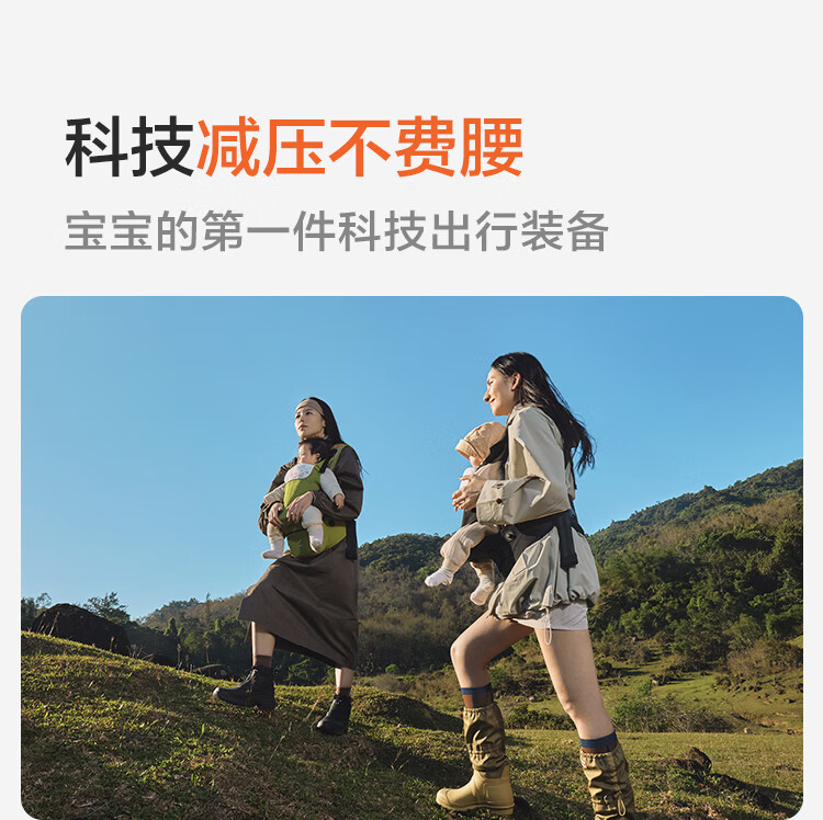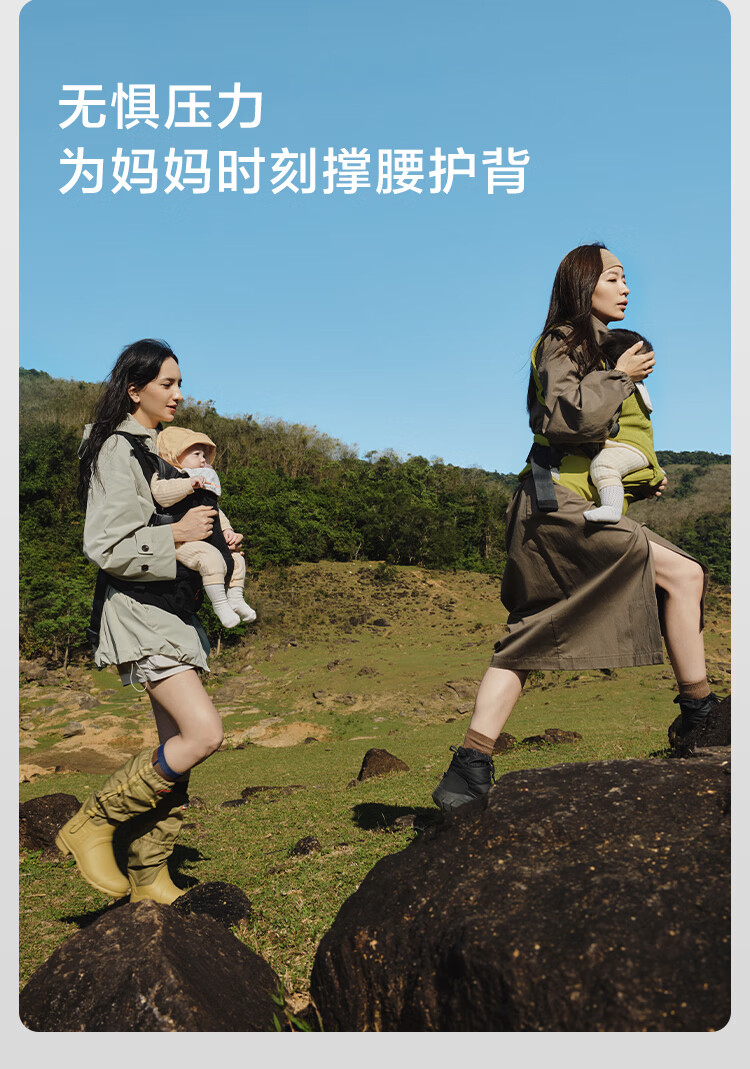 两只兔子腰凳婴儿背带Across洞感4D科技减压护腰单人穿脱抱娃神器 苔藓绿