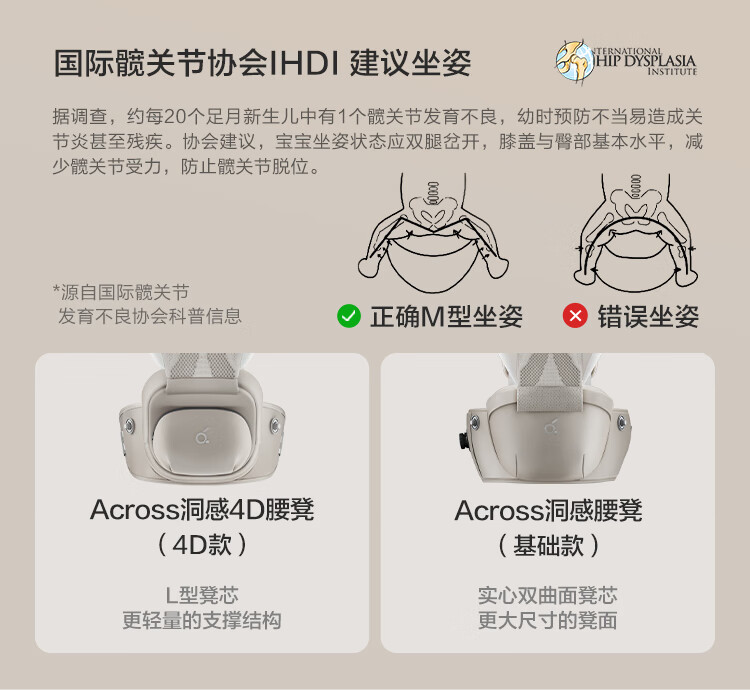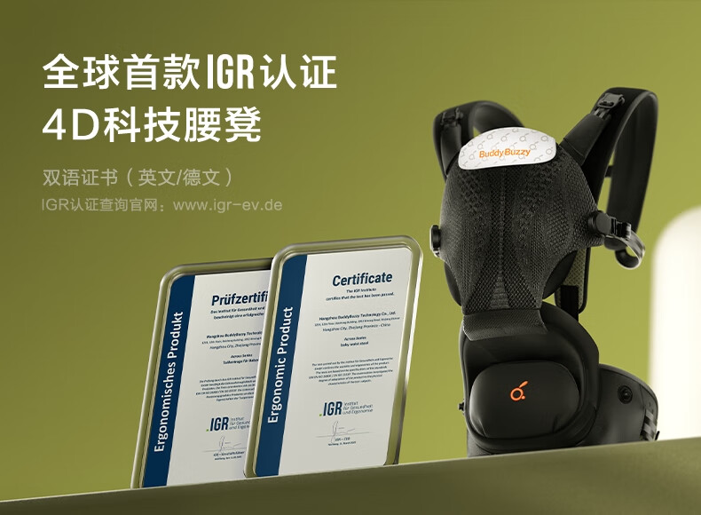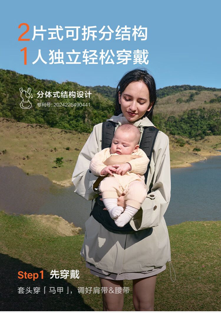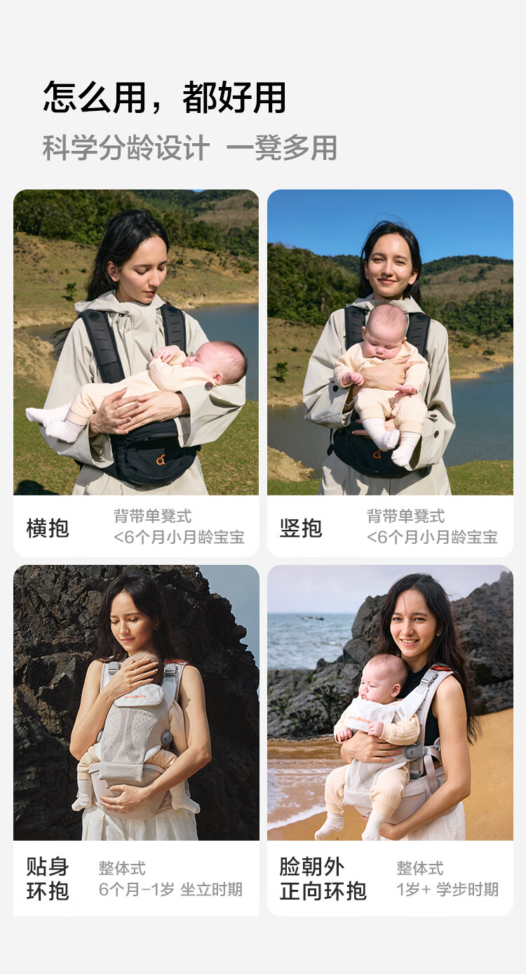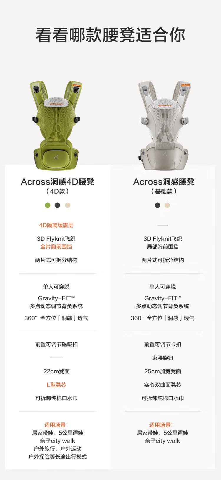 两只兔子腰凳婴儿背带Across洞感4D科技减压护腰单人穿脱抱娃神器 苔藓绿