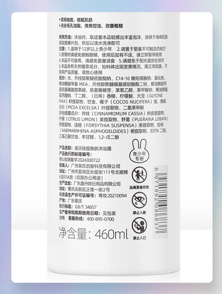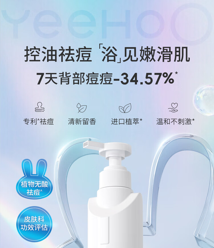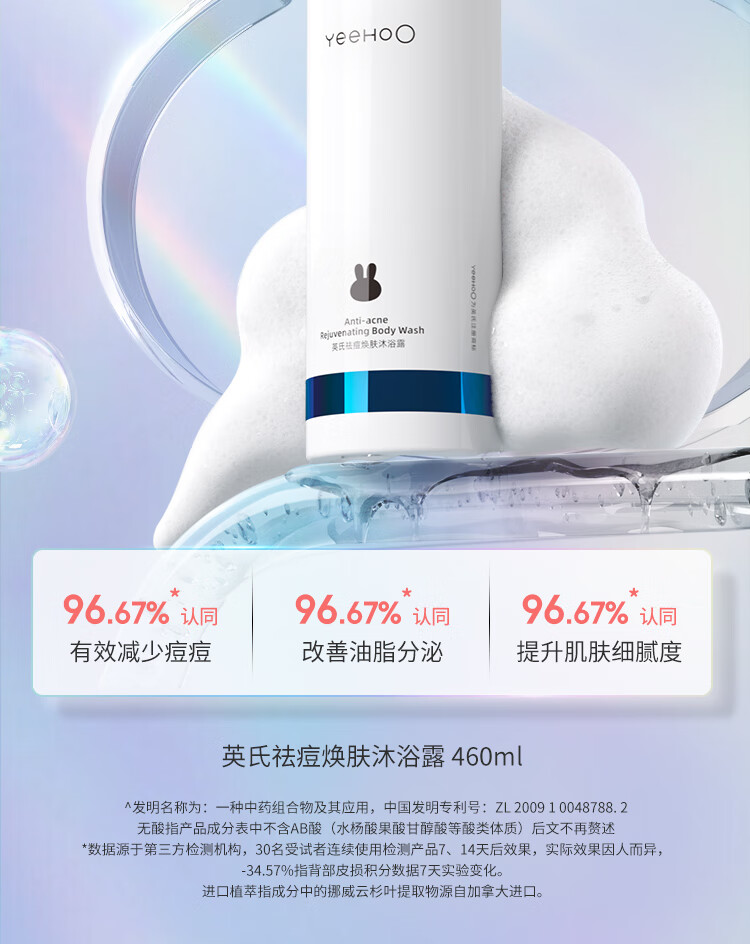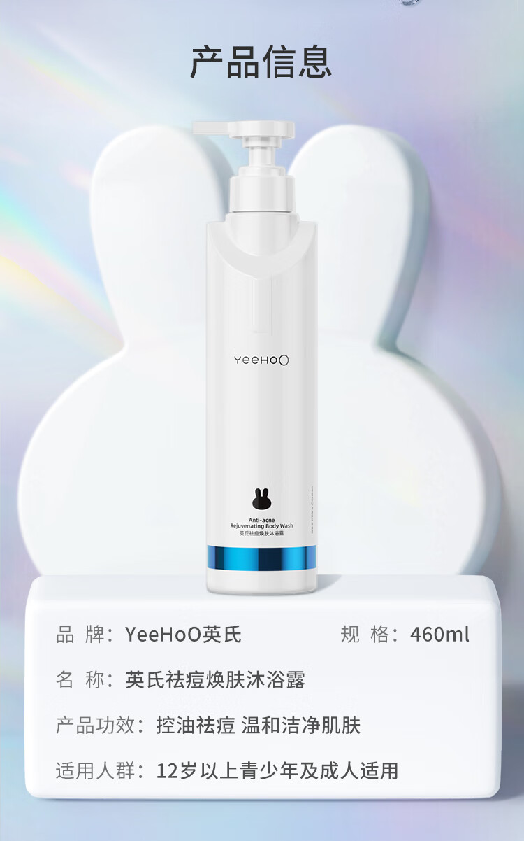 英氏(YEEHOO)青少年祛痘沐浴露学生清洁后背除螨祛痘保湿洗发沐浴露 【拍2件更划算】祛痘沐浴露460ml