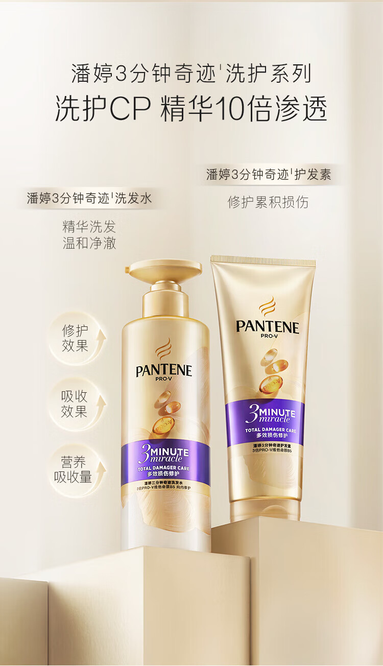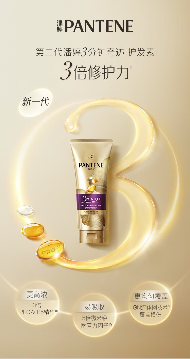 潘婷(PANTENE)3分钟奇迹护发素氨基酸养发柔顺修护滋养防断发发膜级润发乳 多效损伤修护护发素 70ml 1瓶