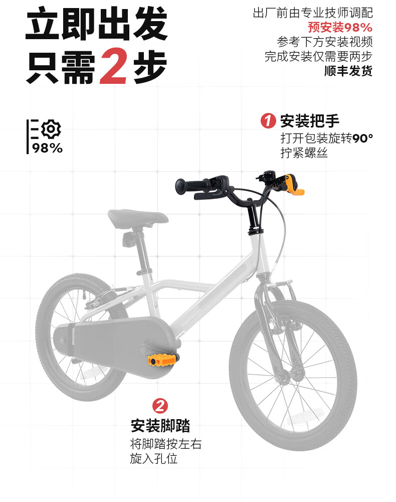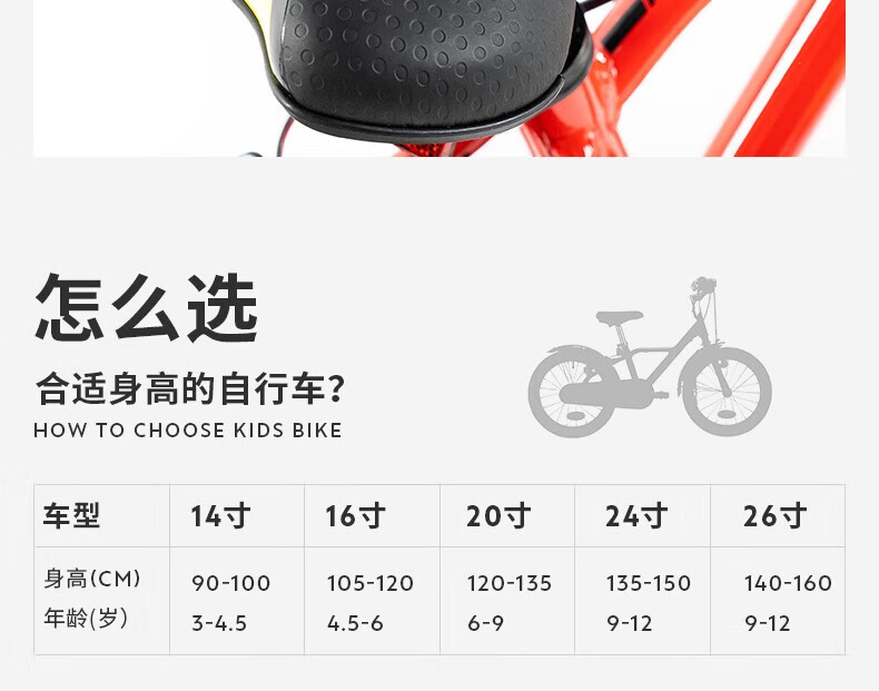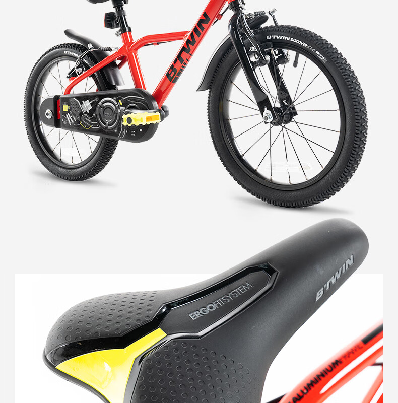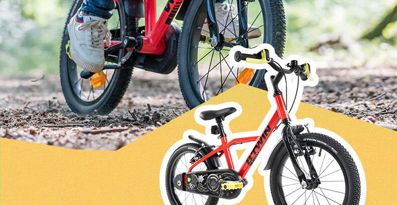 迪卡侬(DECATHLON)儿童自行车单车脚踏车男孩女孩宝宝童车 16寸儿童自行车红色 【钢架】