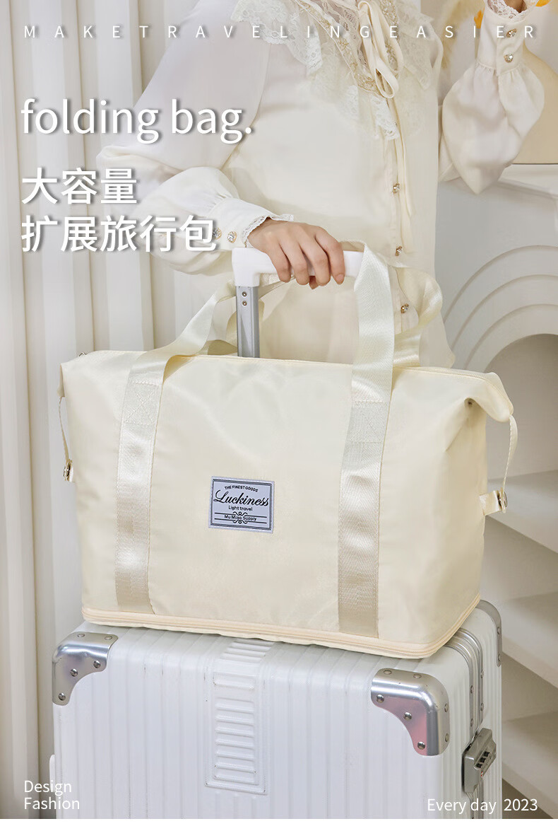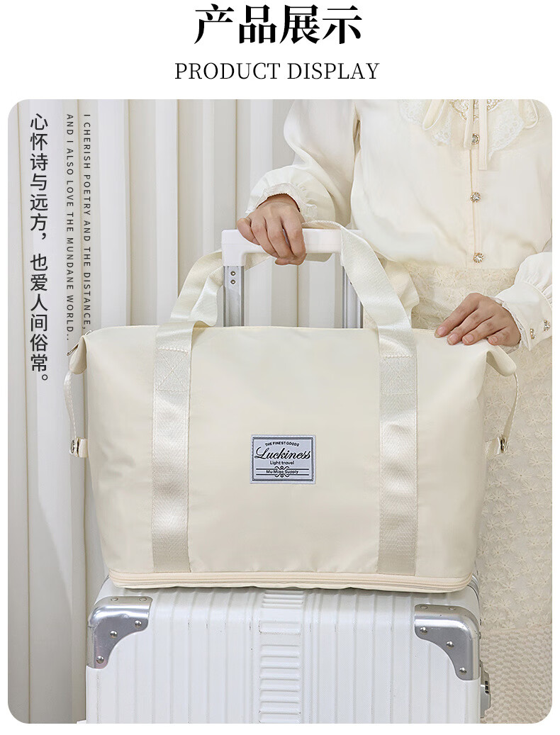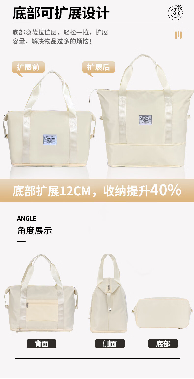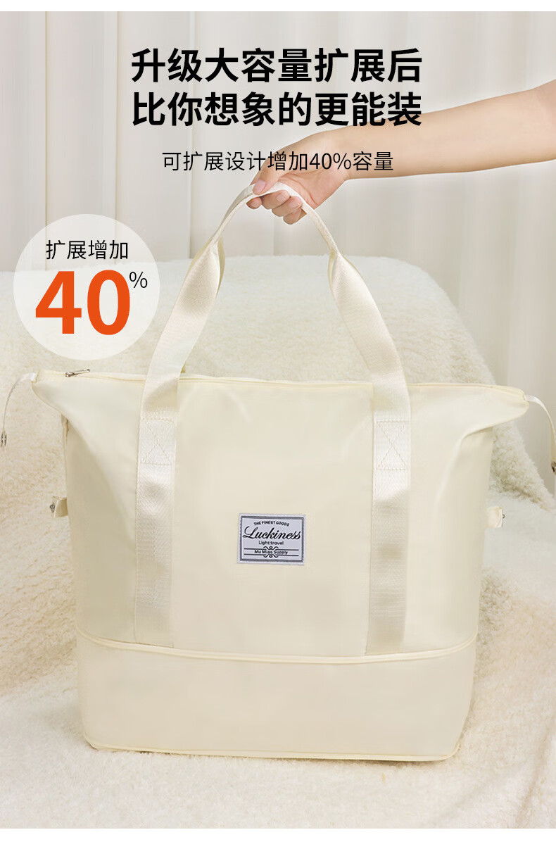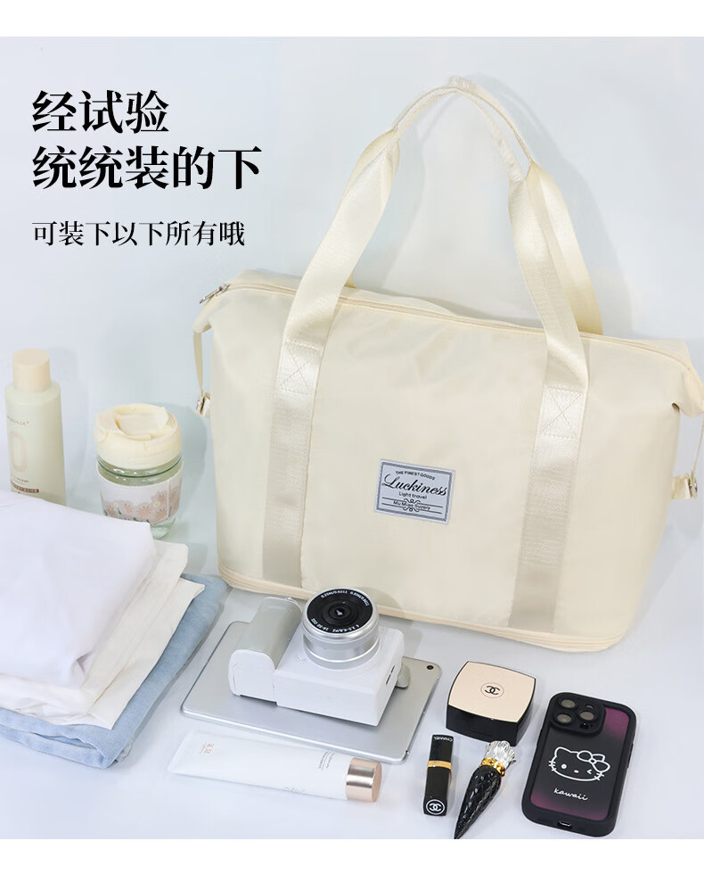 安尼咔咔(anniekk)出差收纳旅行包男女短途行李包手提大容量收纳包折叠轻便旅游包袋 黑色不可扩展-中号