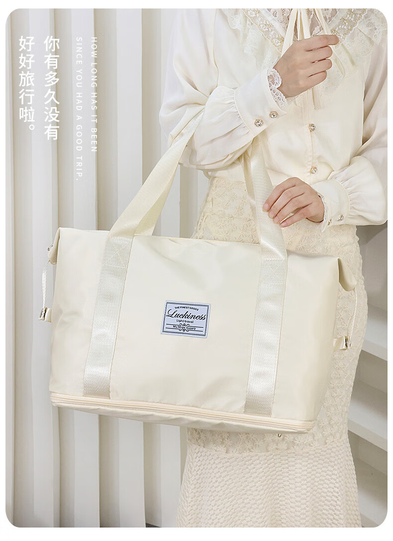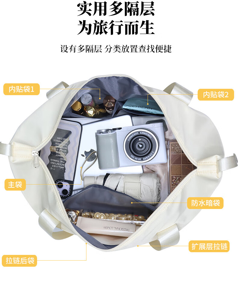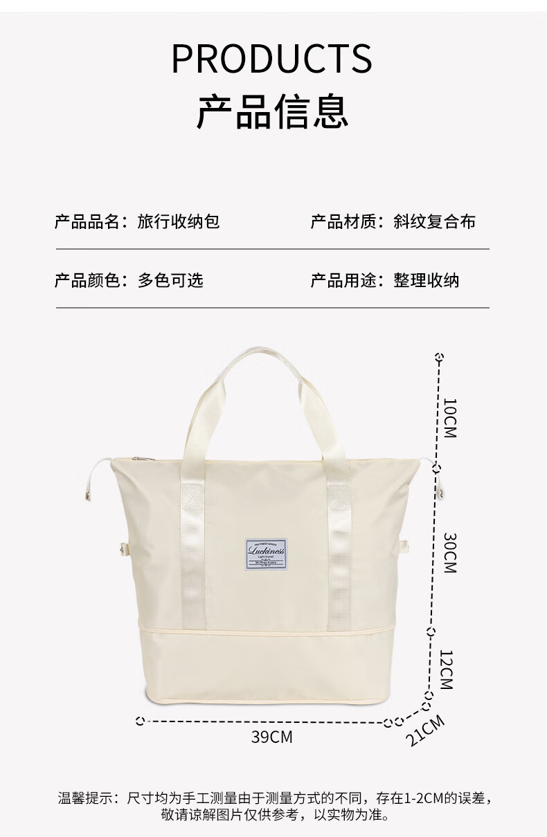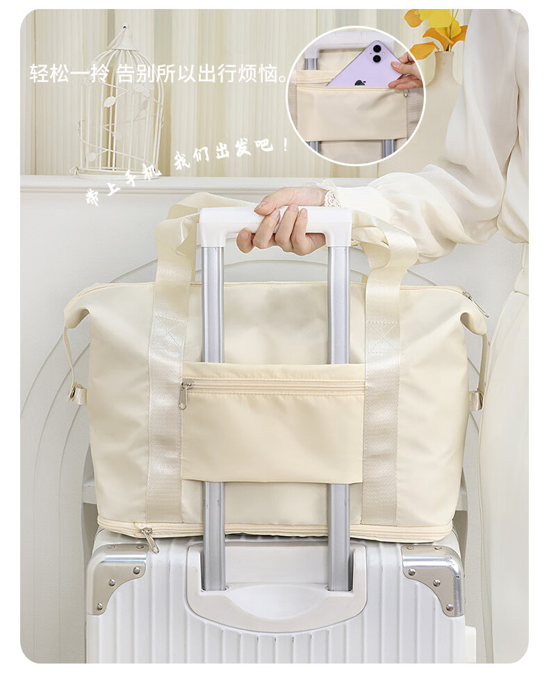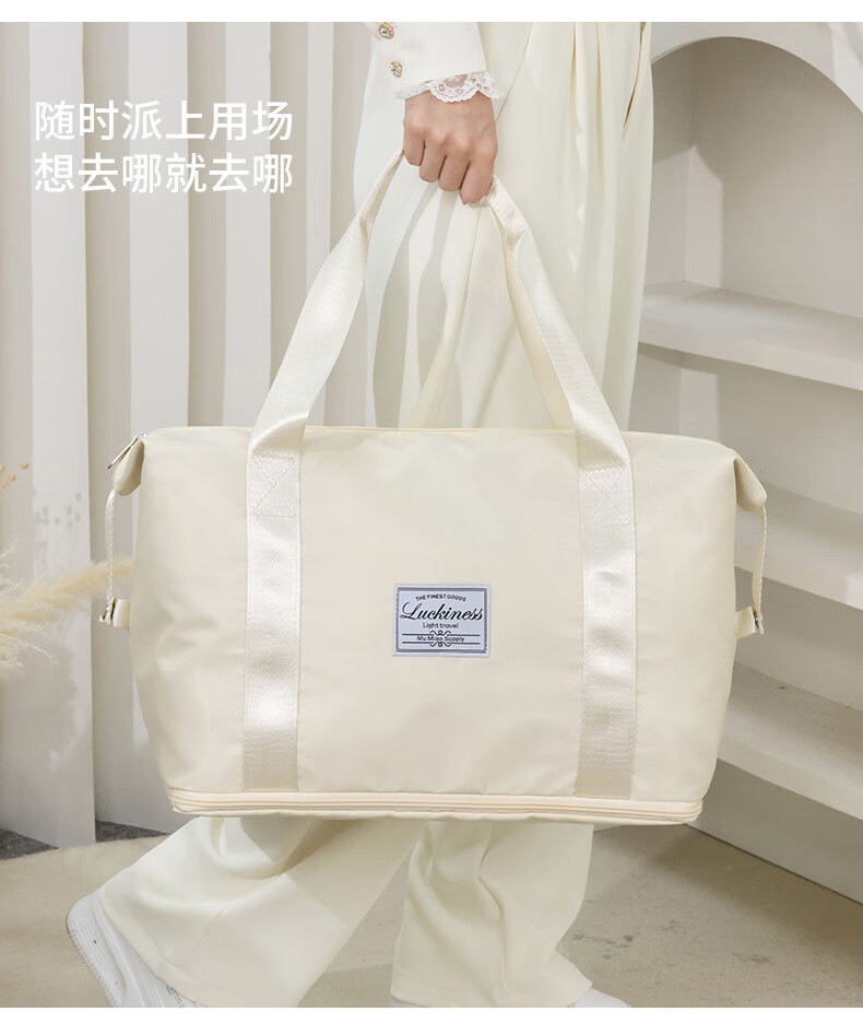 安尼咔咔(anniekk)出差收纳旅行包男女短途行李包手提大容量收纳包折叠轻便旅游包袋 黑色不可扩展-中号