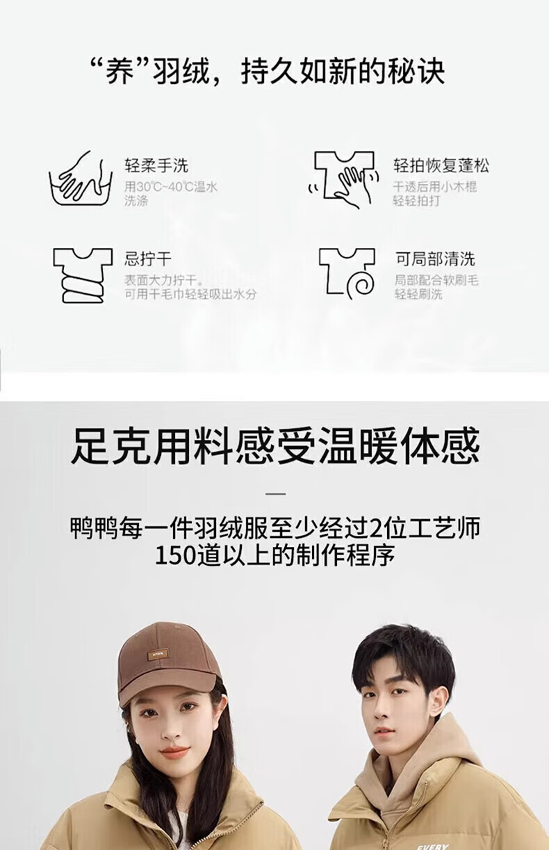鸭鸭(YAYA)【王一博同款】情侣羽绒服2025冬季新款美拉德百搭保暖显瘦面包服 基础黑色 XL