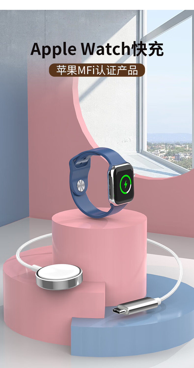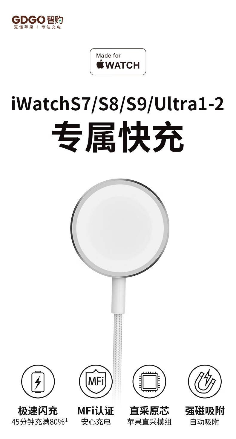 GDGO【苹果MFi认证】苹果手表充电器S11/10/Ultra3快充mfw无线充电器适用applewatch尼龙编织线iwatch