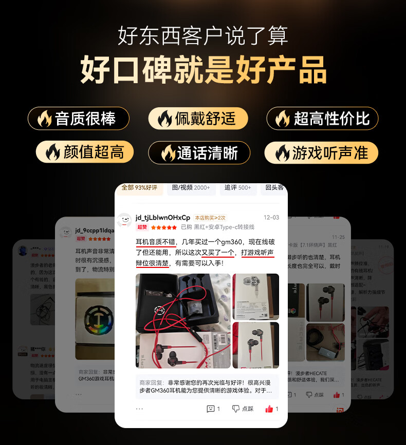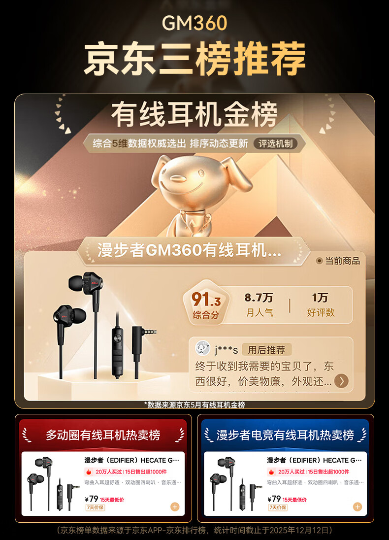 漫步者(EDIFIER)HECATE GM360有线游戏耳机入耳式降噪双动圈电脑手机吃鸡音乐电竞耳塞 3.5mm接口 黑色【四喇叭发声】