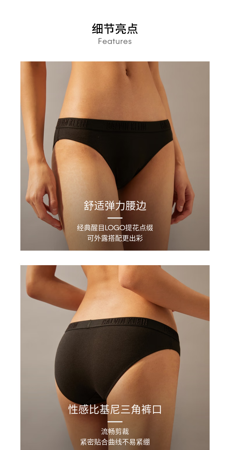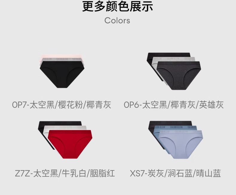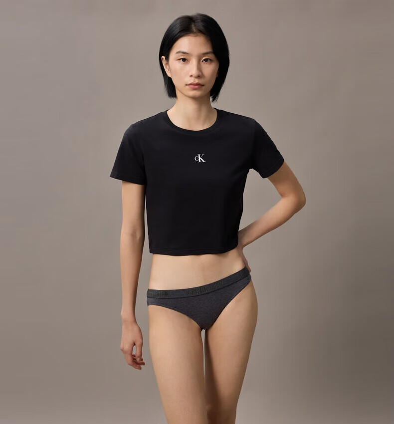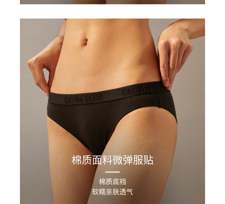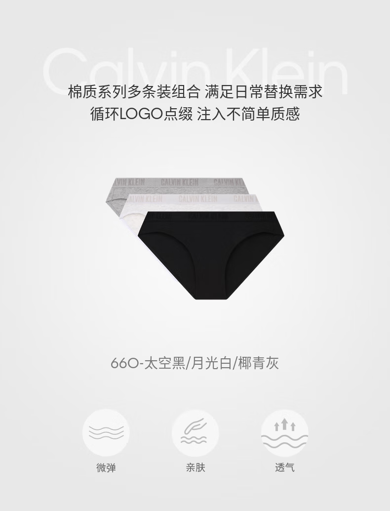 Calvin Klein内衣【圣诞礼物】女士本命年新年红三条装提花ck棉质比基尼内裤女 0P6-太空黑/椰青灰/英雄灰 3条 S