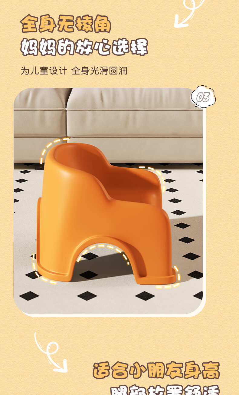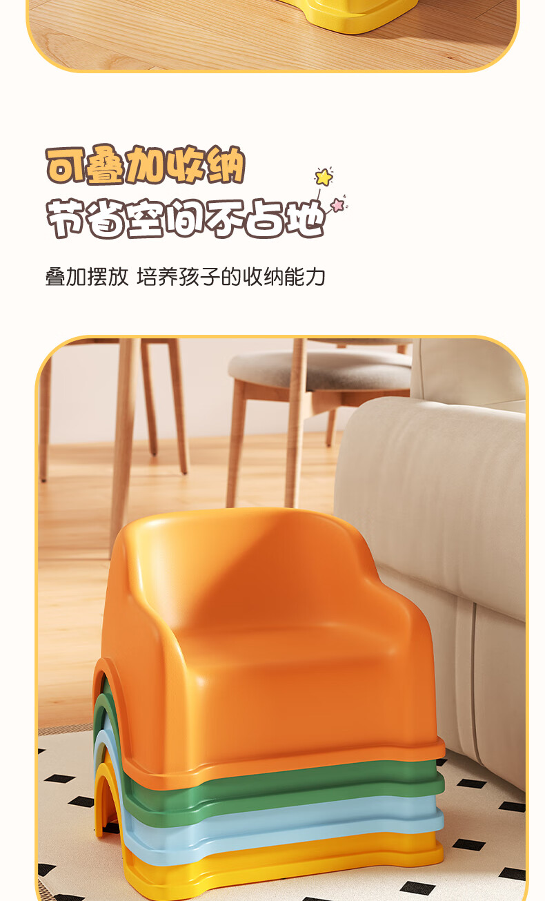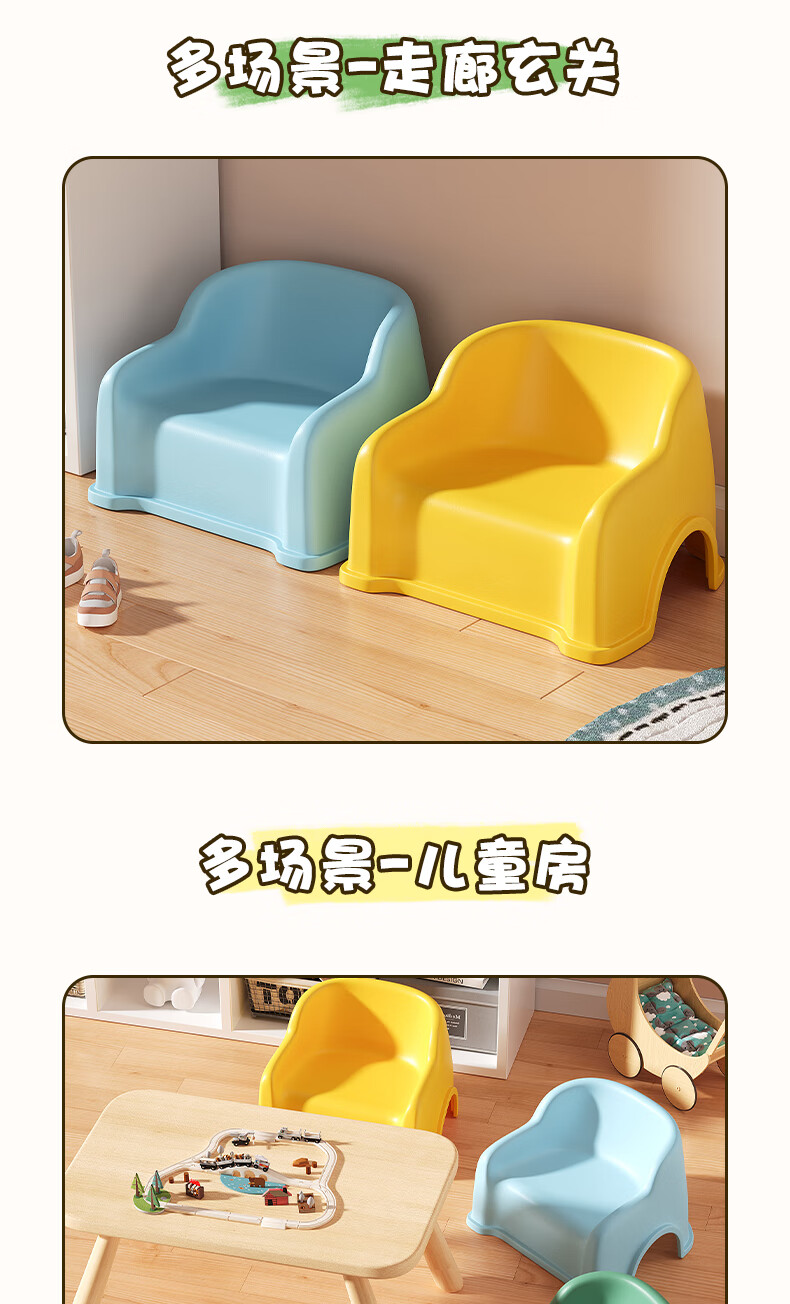接运猫儿童塑料小凳子家用小板凳幼儿园靠背椅宝宝椅子矮凳换鞋凳洗澡凳 加厚pp材质-夏日橘两把装