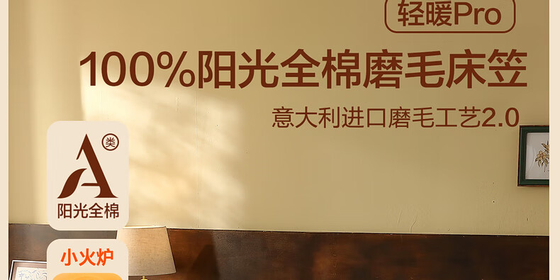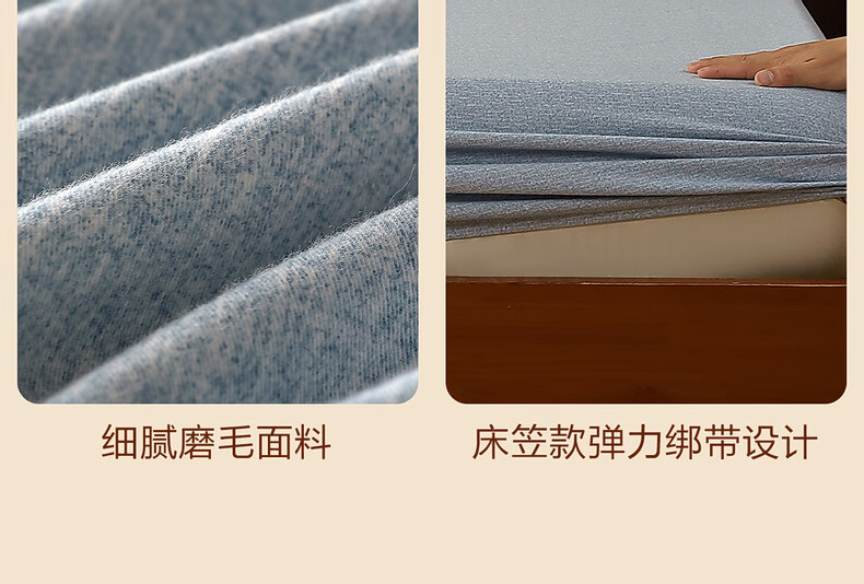 水星家纺床笠纯棉100%全棉磨毛柔感床笠抑菌A类隔脏床罩双人1.8x2米