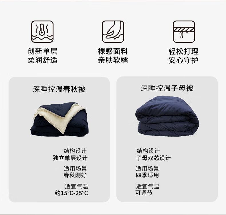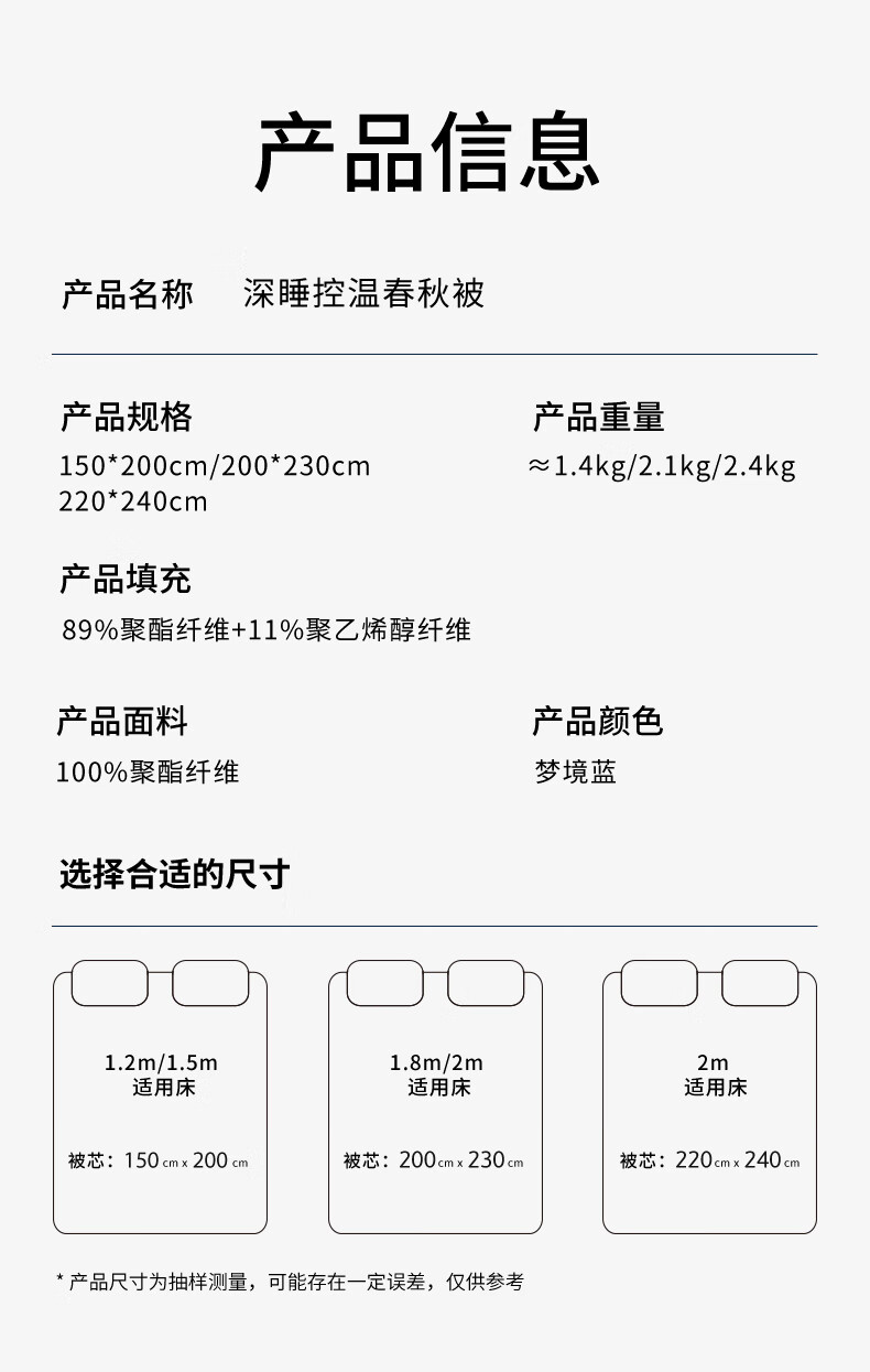 一默被子四季可用被芯床上用品居家宿舍单双人深睡控温春秋被褥冬眠被 梦境蓝 丨春秋被 150cm*200cm