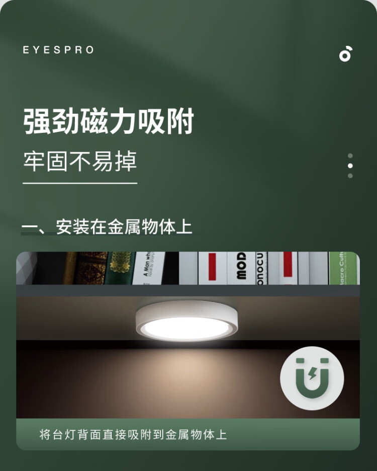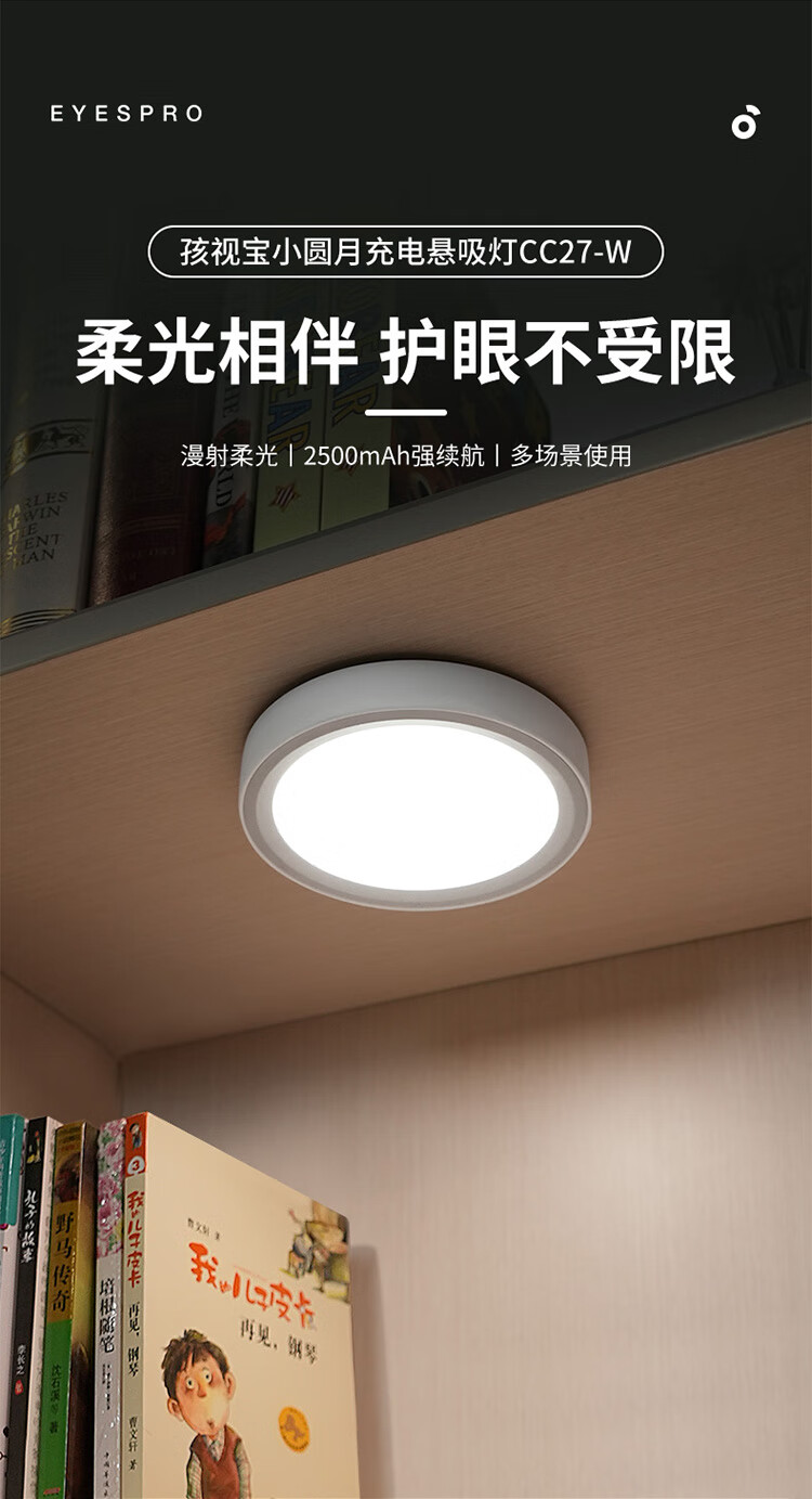 孩视宝便携磁吸护眼灯 上下铺学习专用悬吸酷毙灯学生宿舍床头阅读灯 CC27-W(充电款)