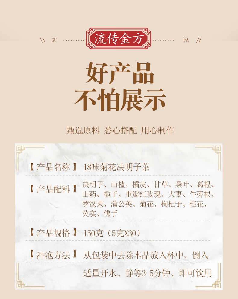谯韵堂菊花决明子茶 金银花牛蒡根枸杞子茶包 独立包装 流传金方18味菊花决明子茶(盒装袋泡茶150克)