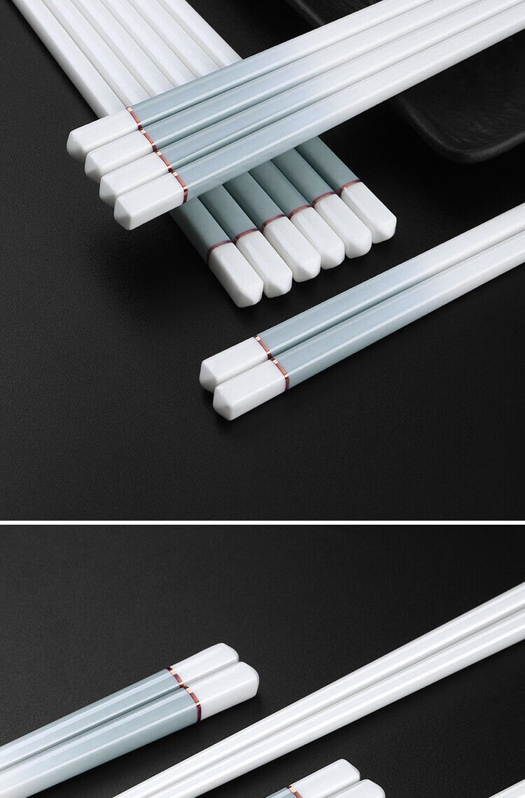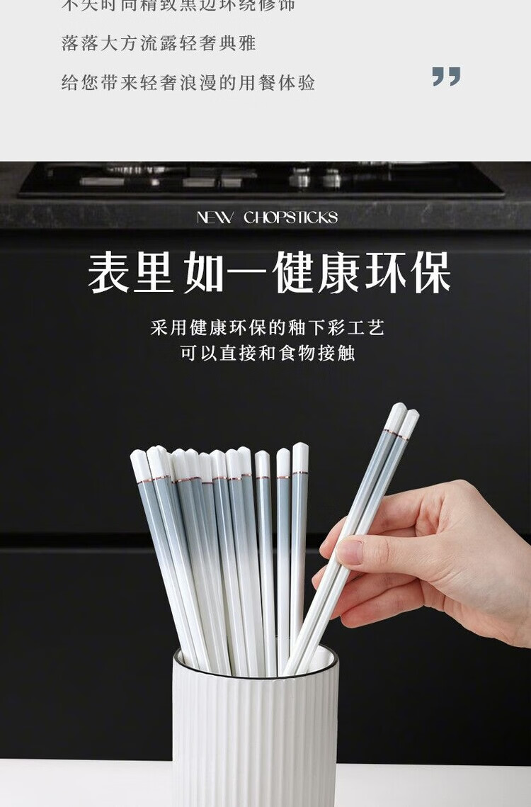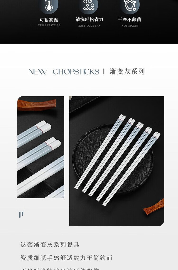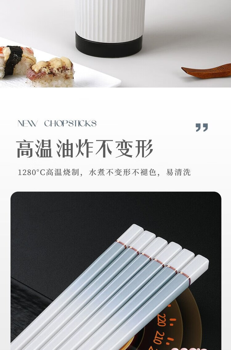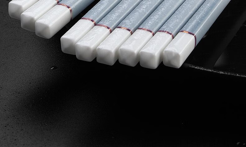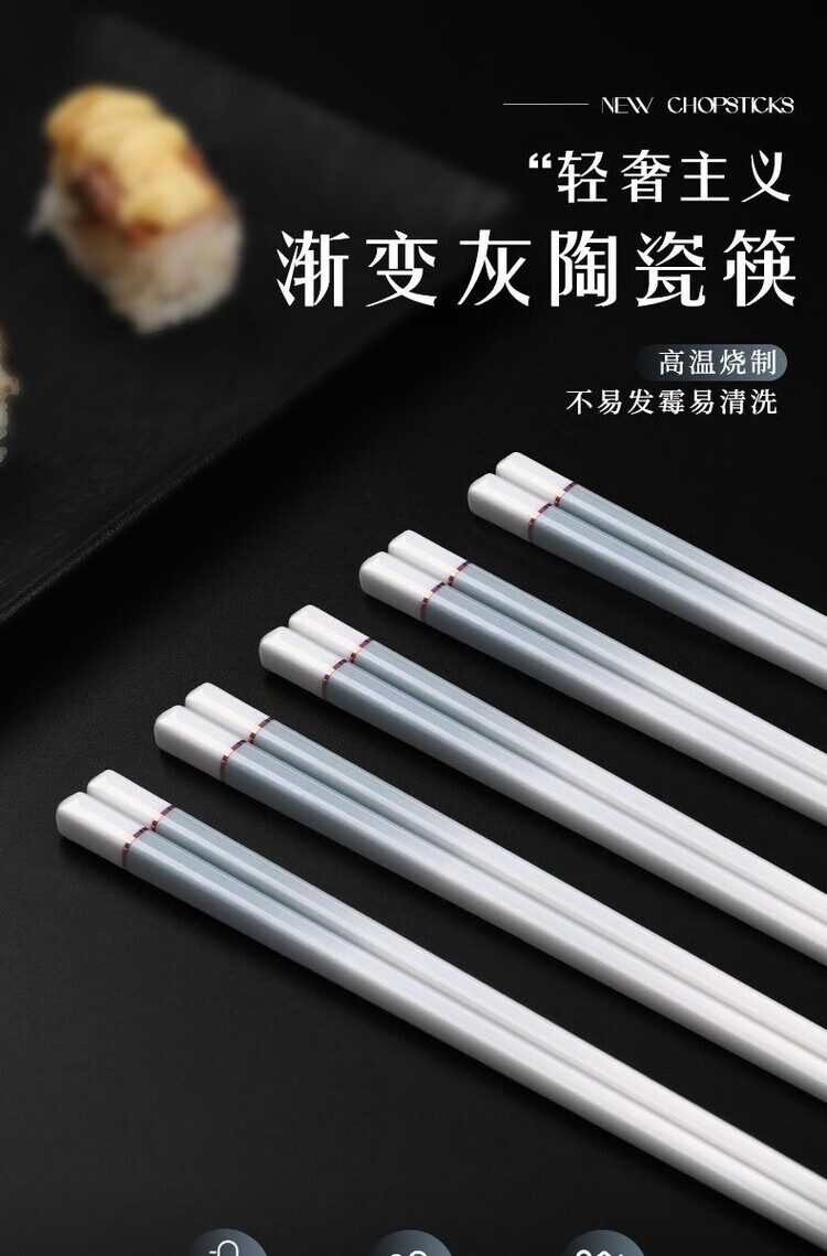 简漾景德镇陶瓷筷子家用高档防霉易清洗耐高温家庭餐具防滑新款食品级 简约灰陶瓷筷-5双